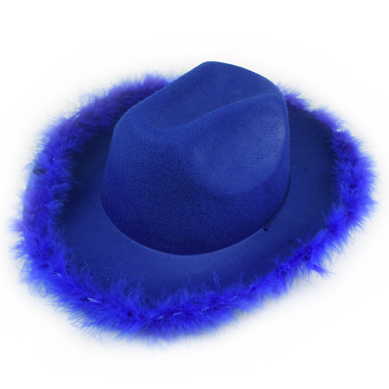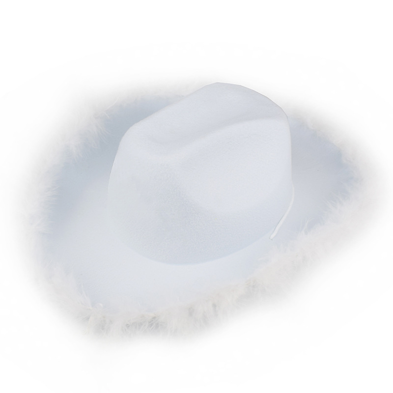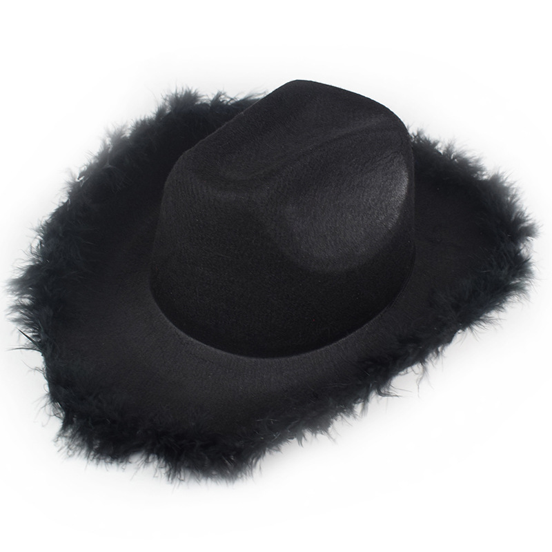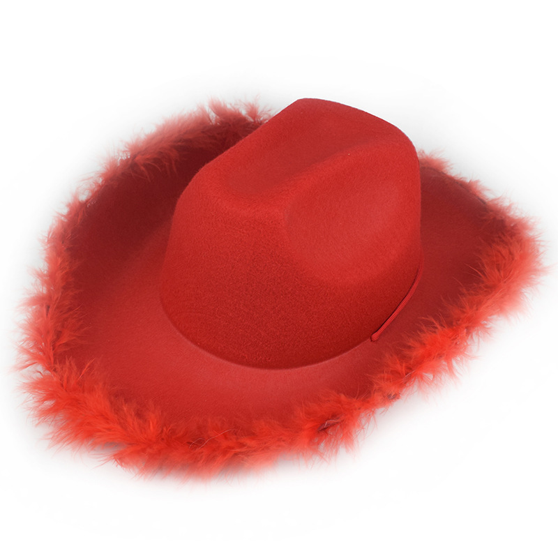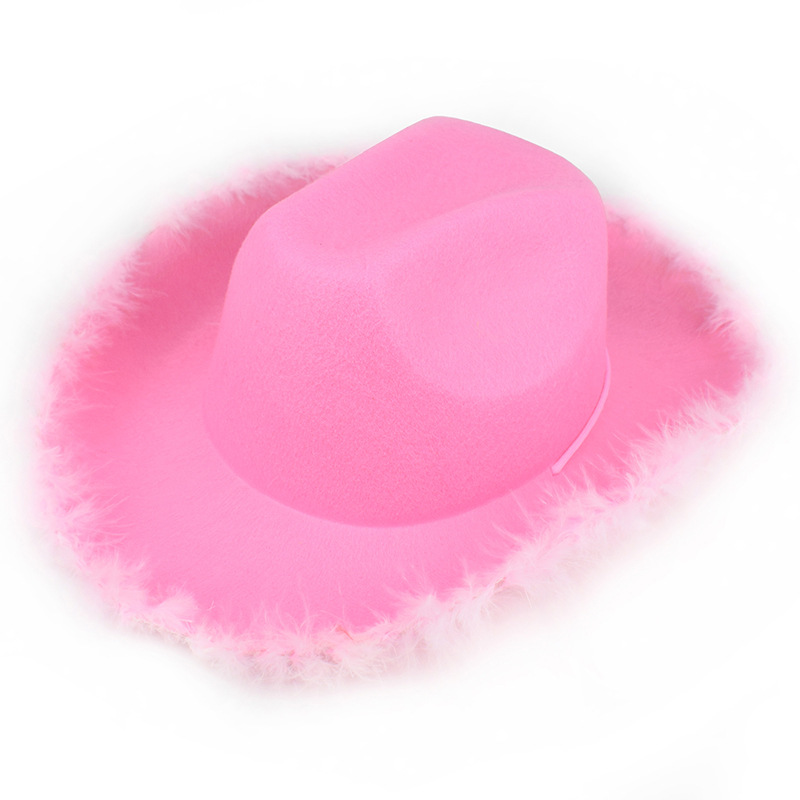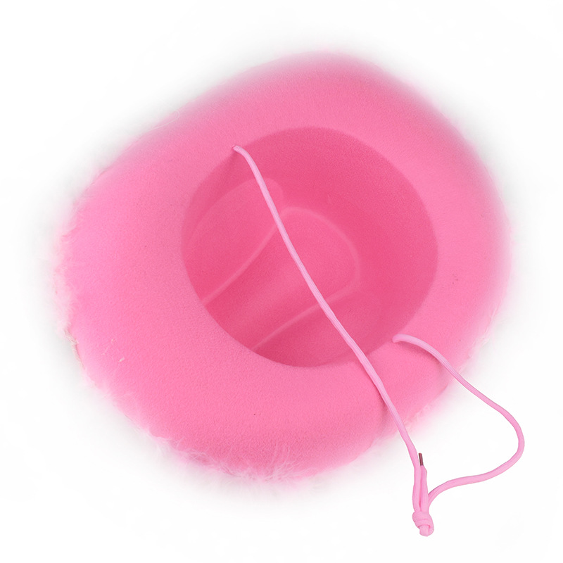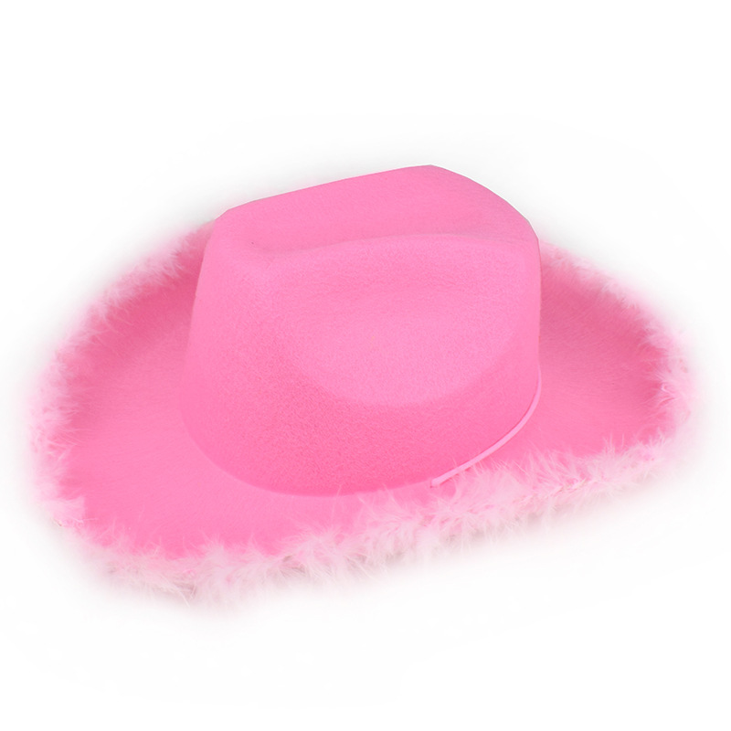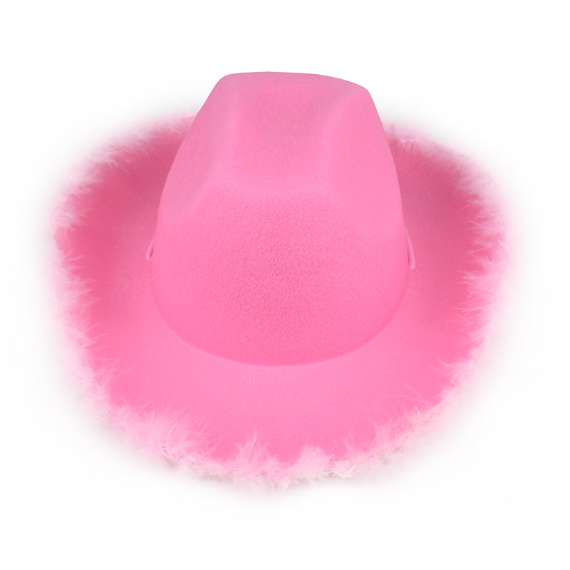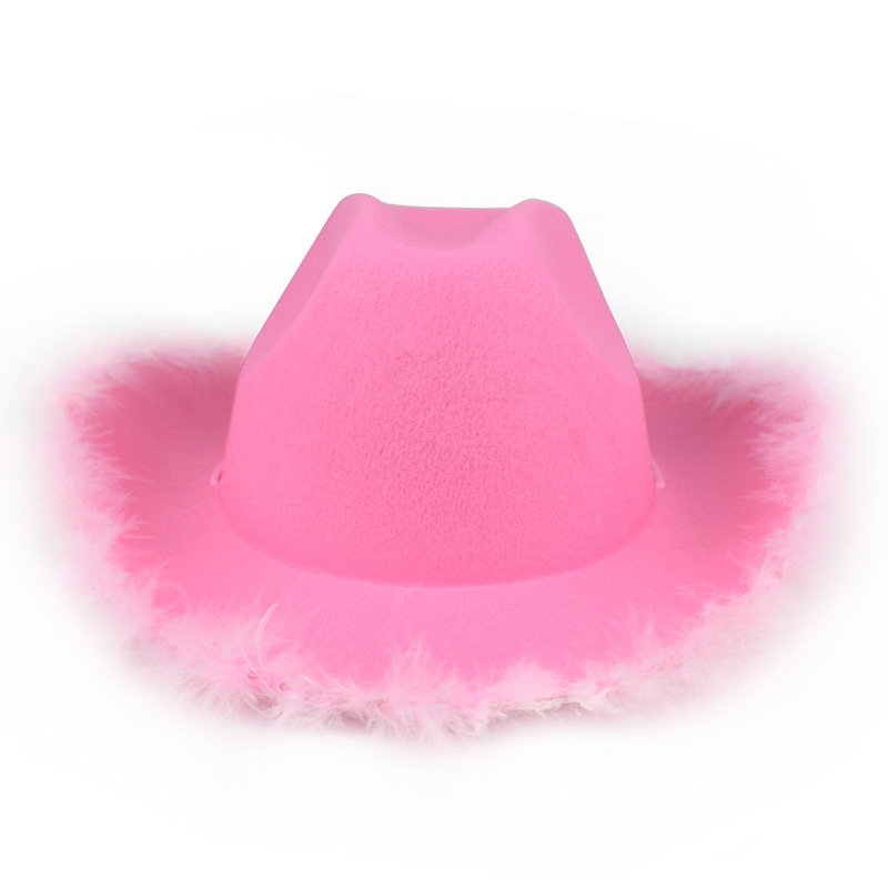 亚马逊粉色西部牛仔帽西部羽毛边粉色定型帽单身派对无纺布牛仔帽
