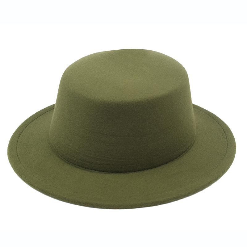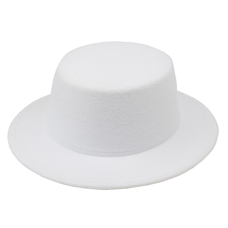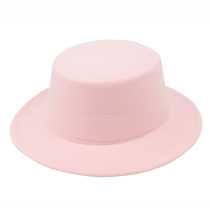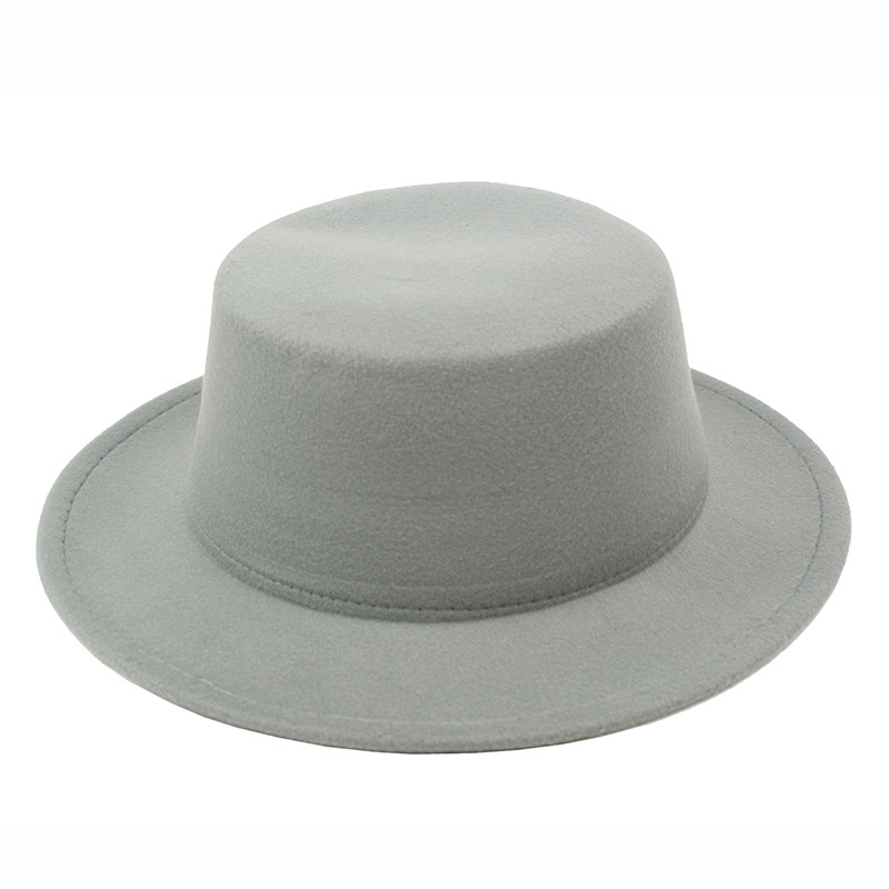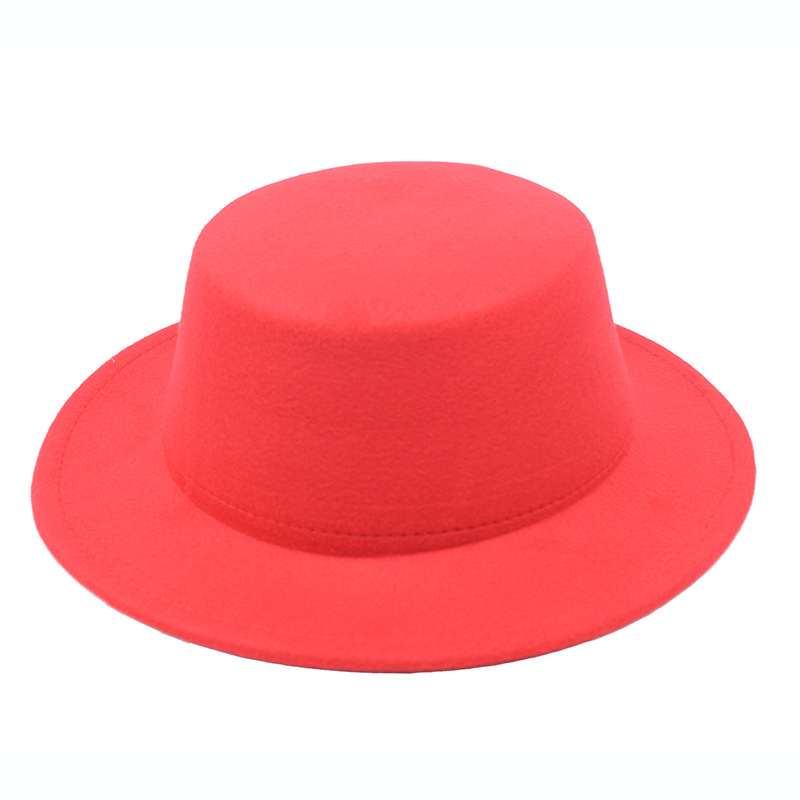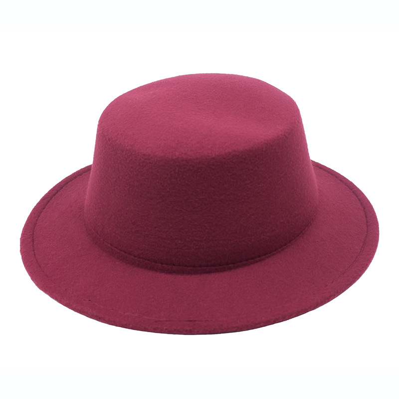 欧美平顶毛毡帽跨境复古礼帽男女英伦纯色平沿毛呢帽春秋舞蹈演出