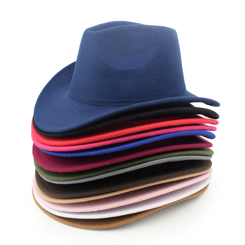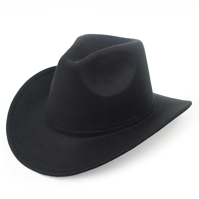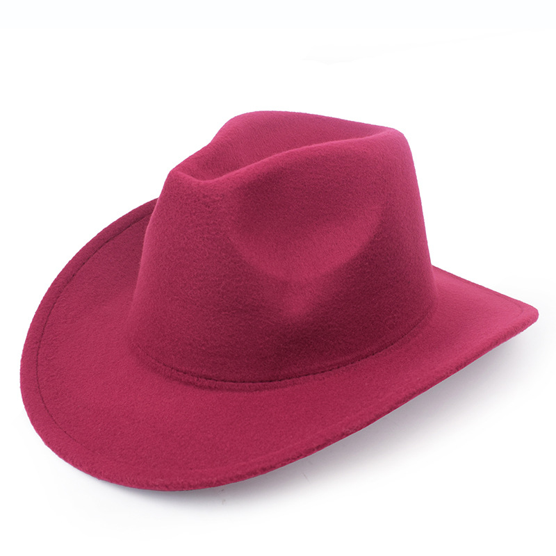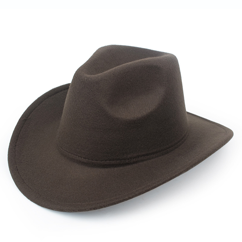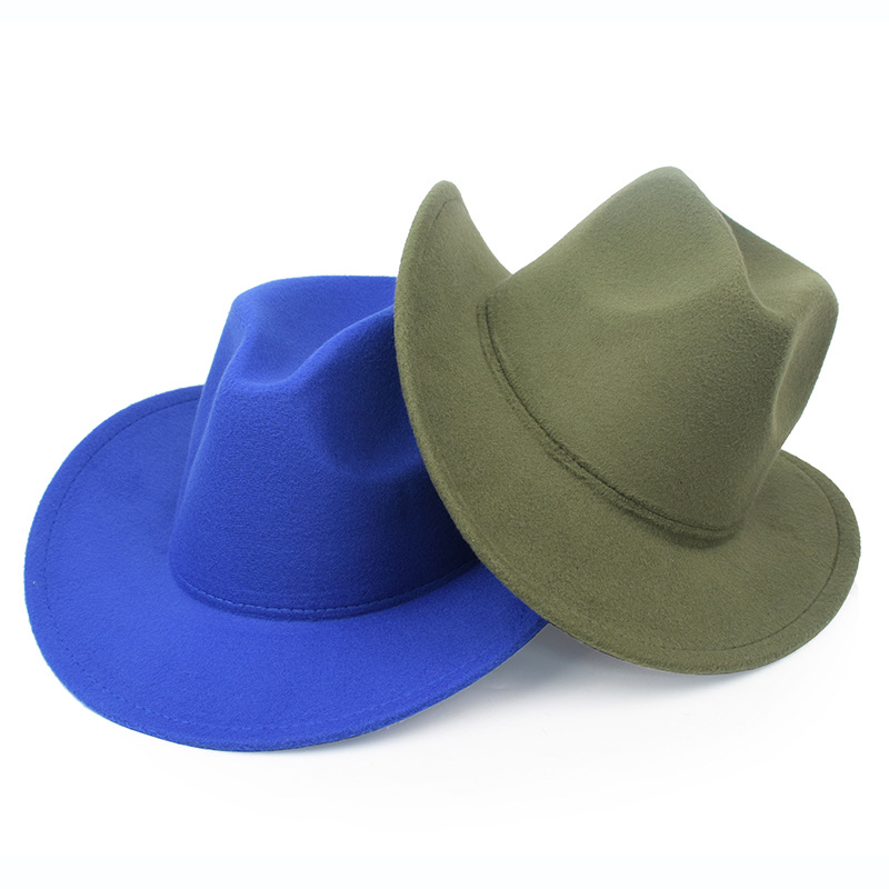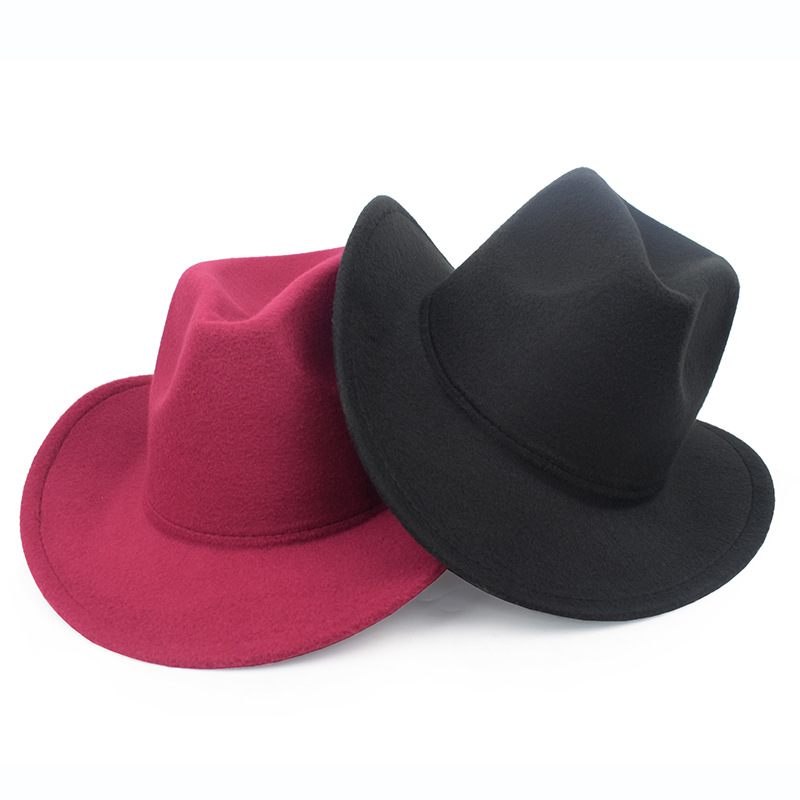 秋冬纯色毛毡帽礼帽西部牛仔帽欧美毛呢英伦爵士帽男女弯檐绅士帽