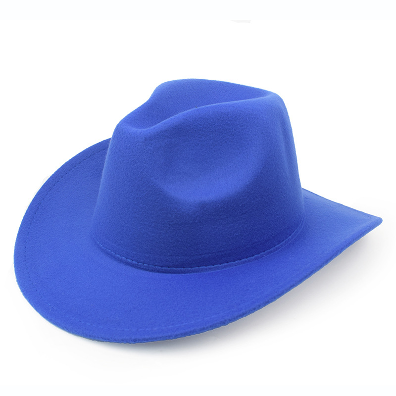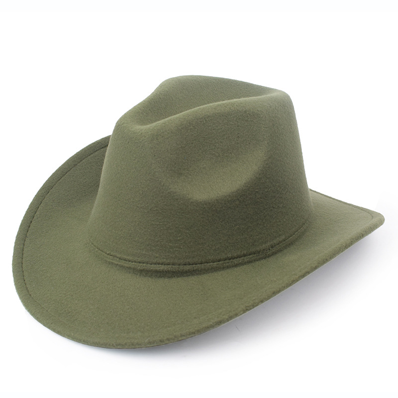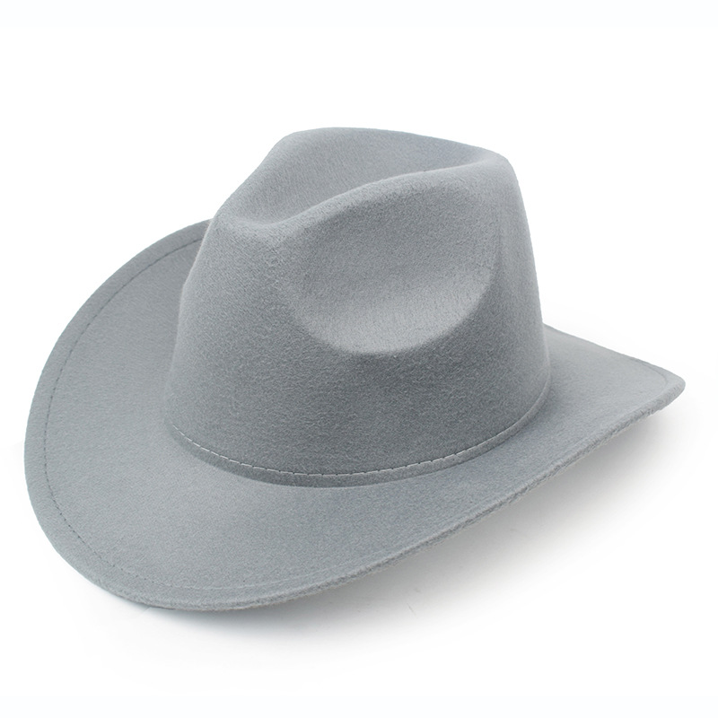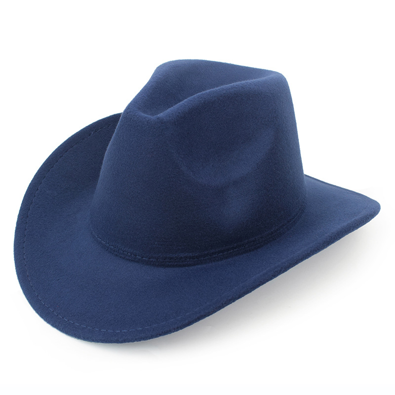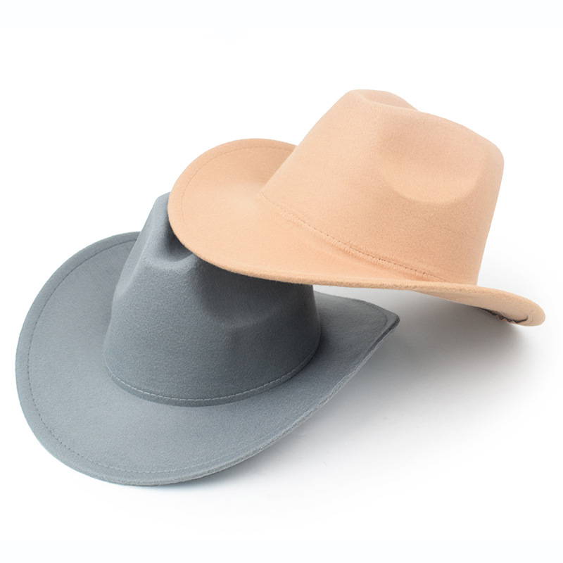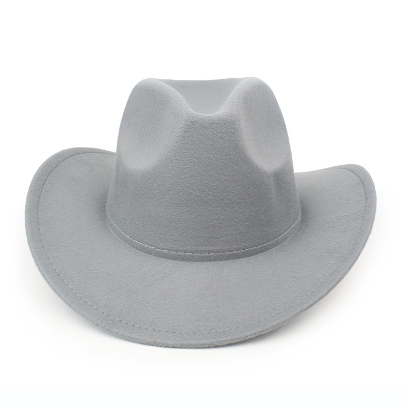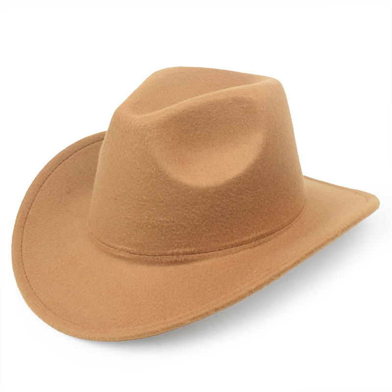 秋冬纯色毛毡帽礼帽西部牛仔帽欧美毛呢英伦爵士帽男女弯檐绅士帽
