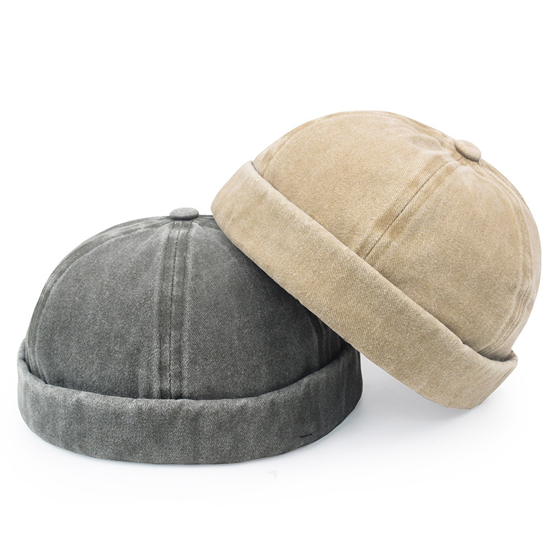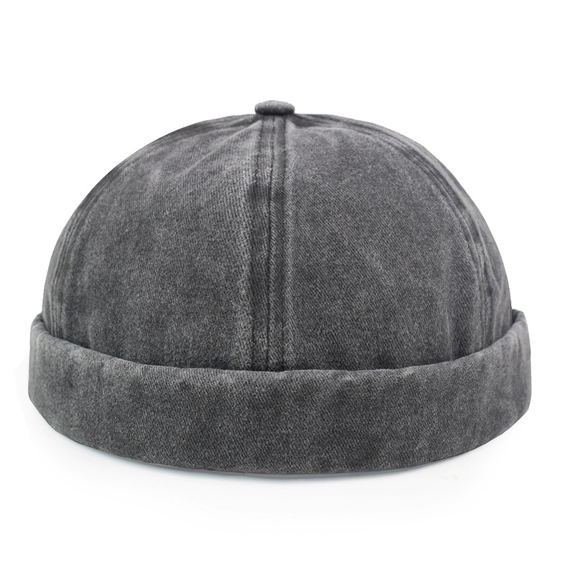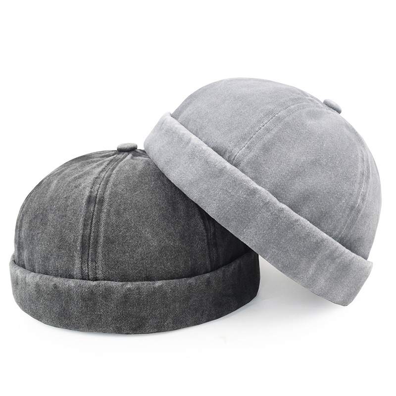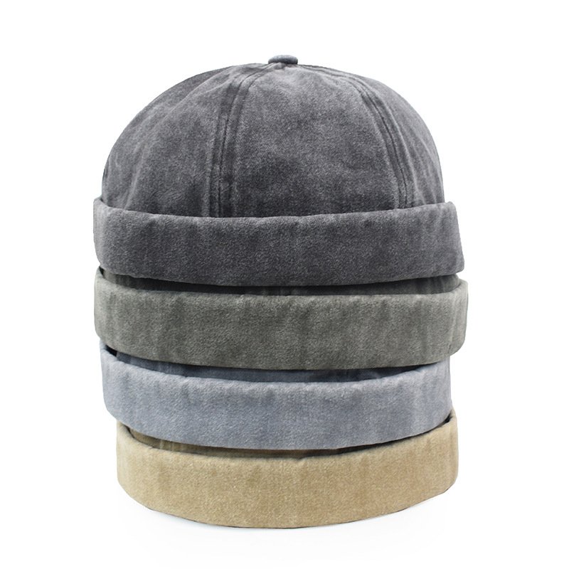 地主帽水洗新款牛仔布瓜皮帽男街头潮流百搭无檐水洗做旧帽子跨境