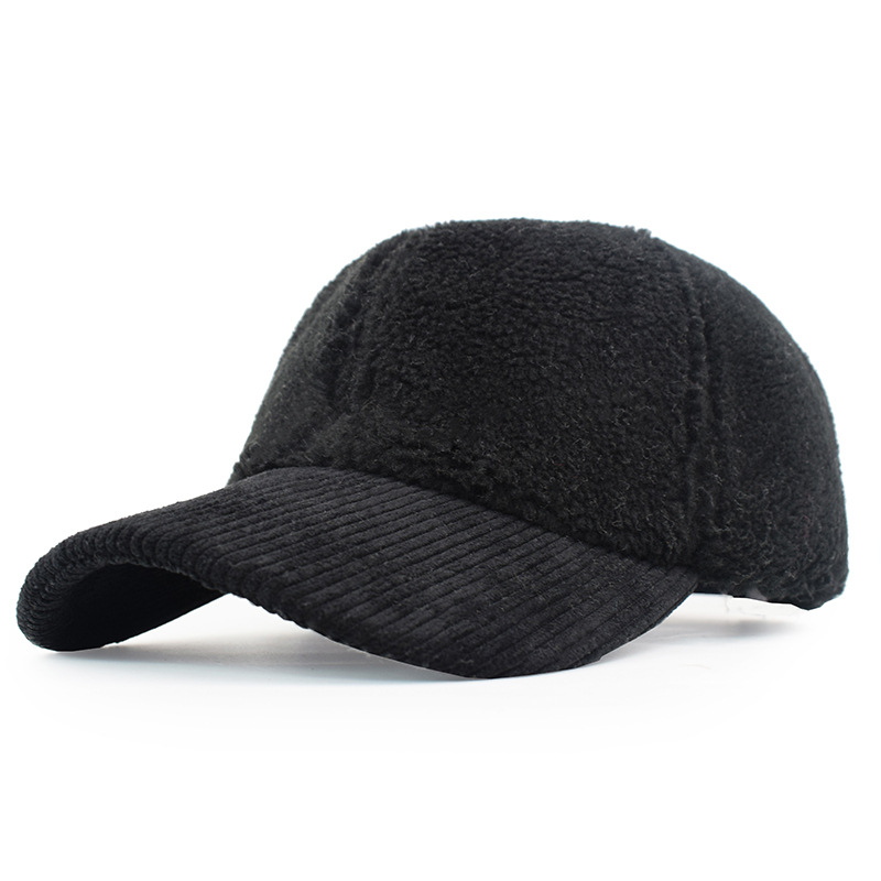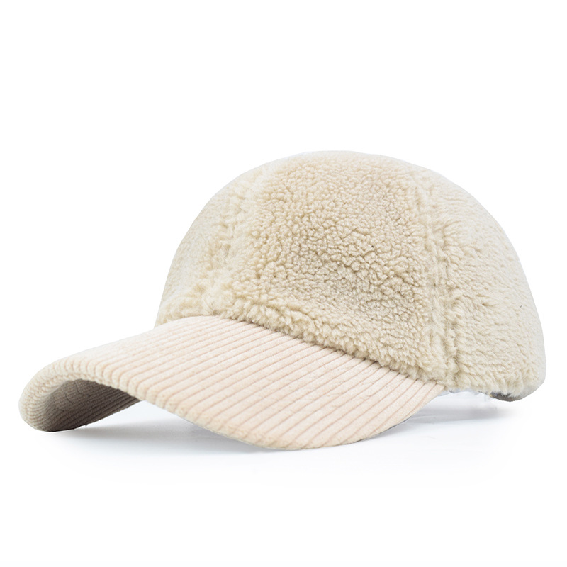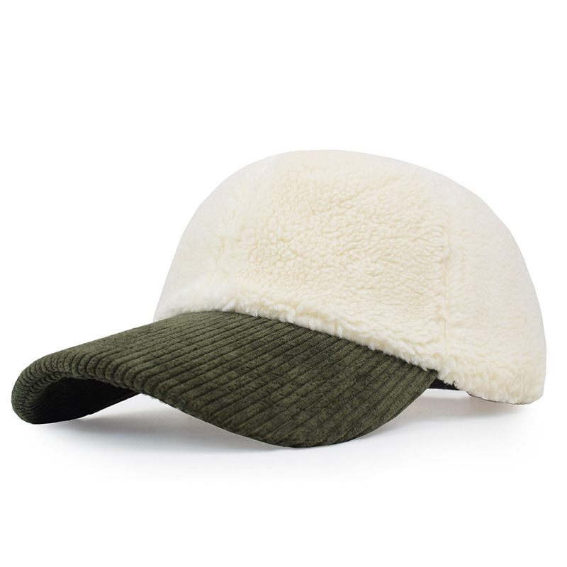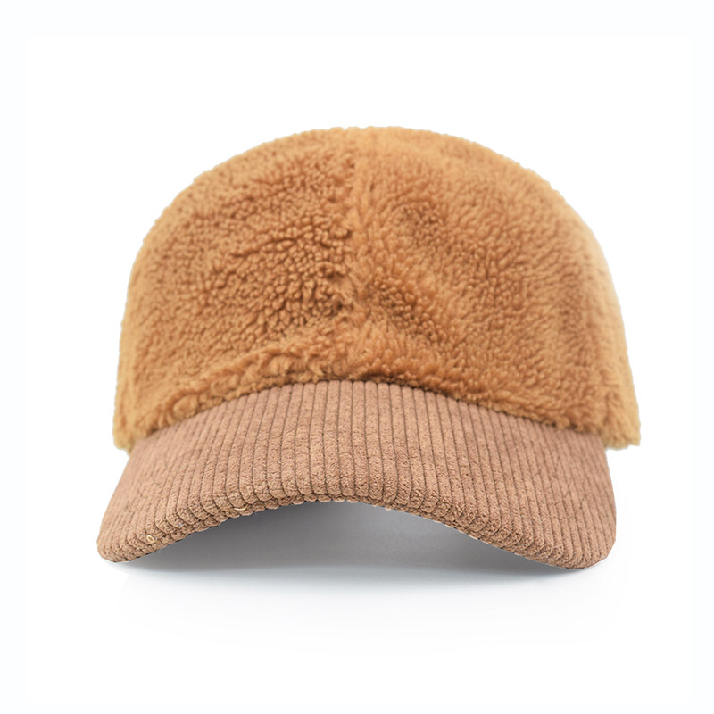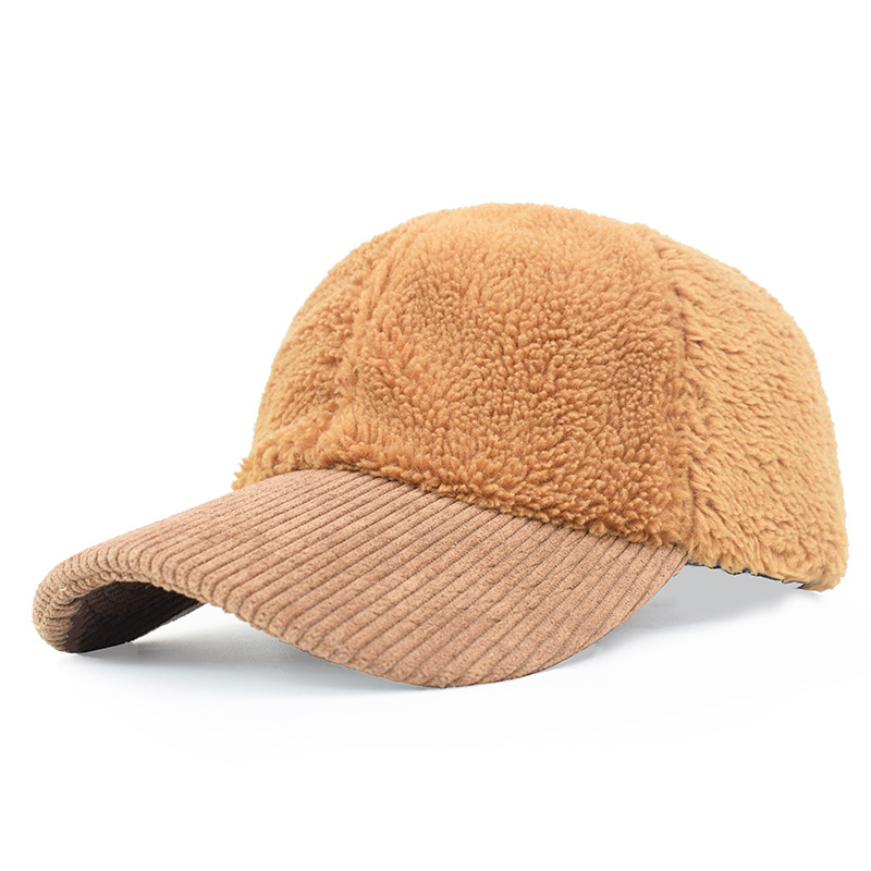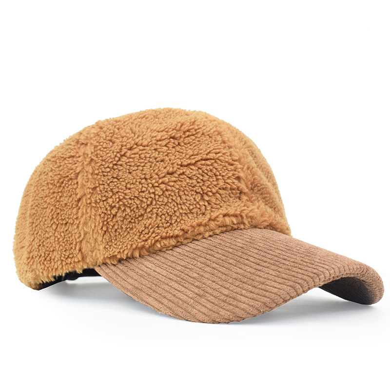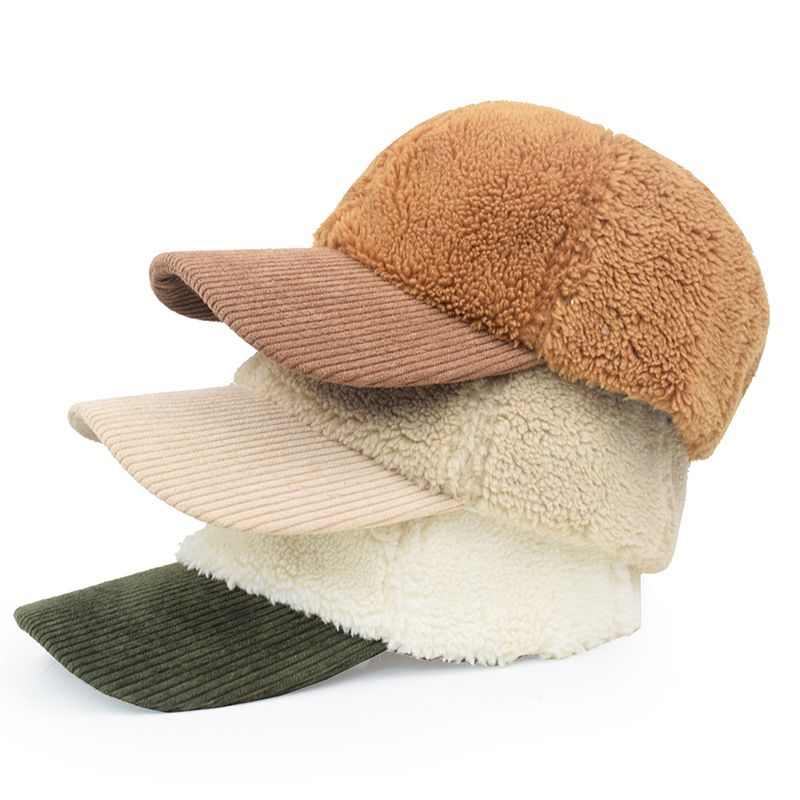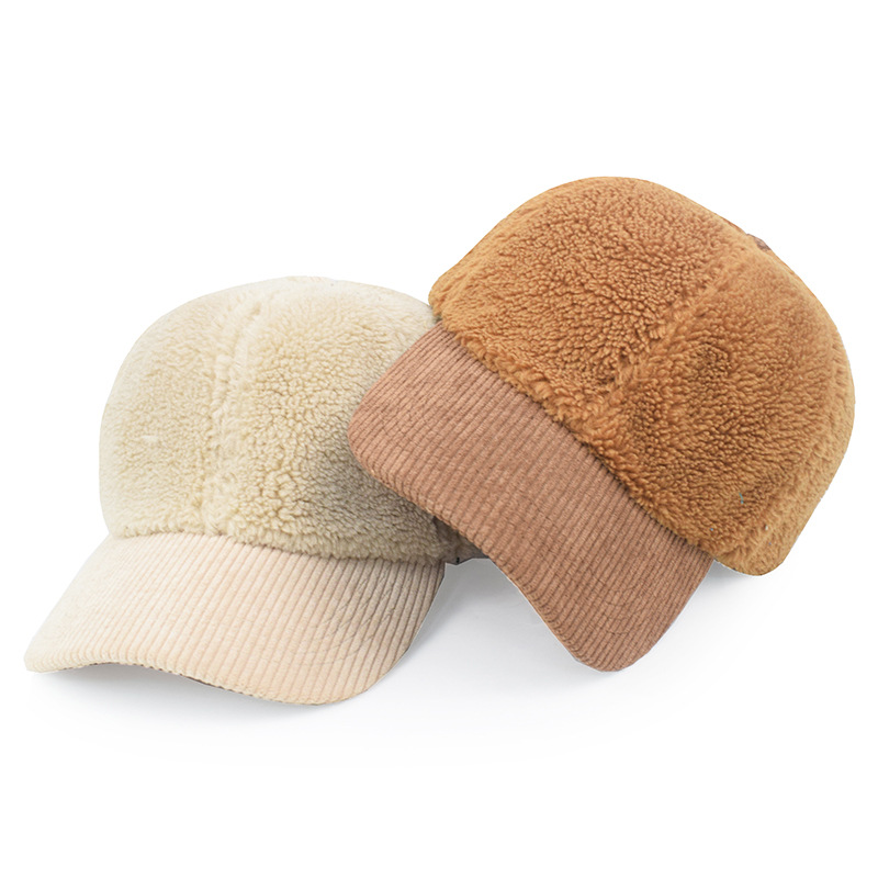 日系纯色羊羔绒灯芯绒拼接鸭舌帽女韩国秋冬休闲百搭保暖棒球帽男
