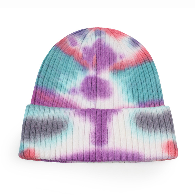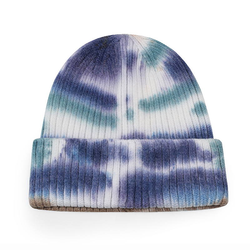 秋冬季嘻哈潮流针织帽跨境欧美扎染帽子女日系保暖帽时尚毛线帽男