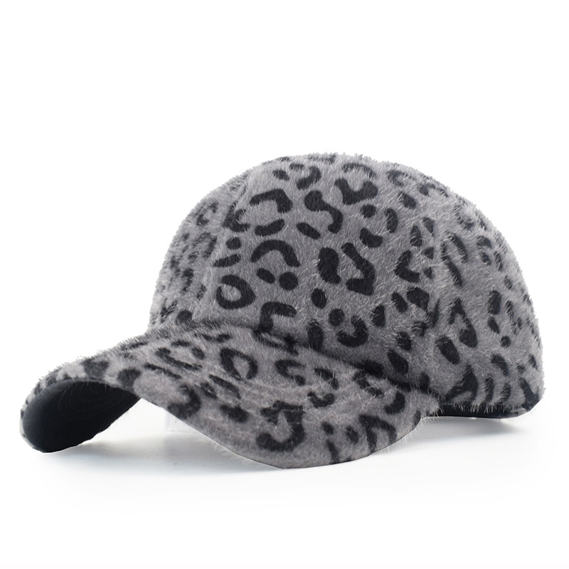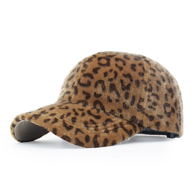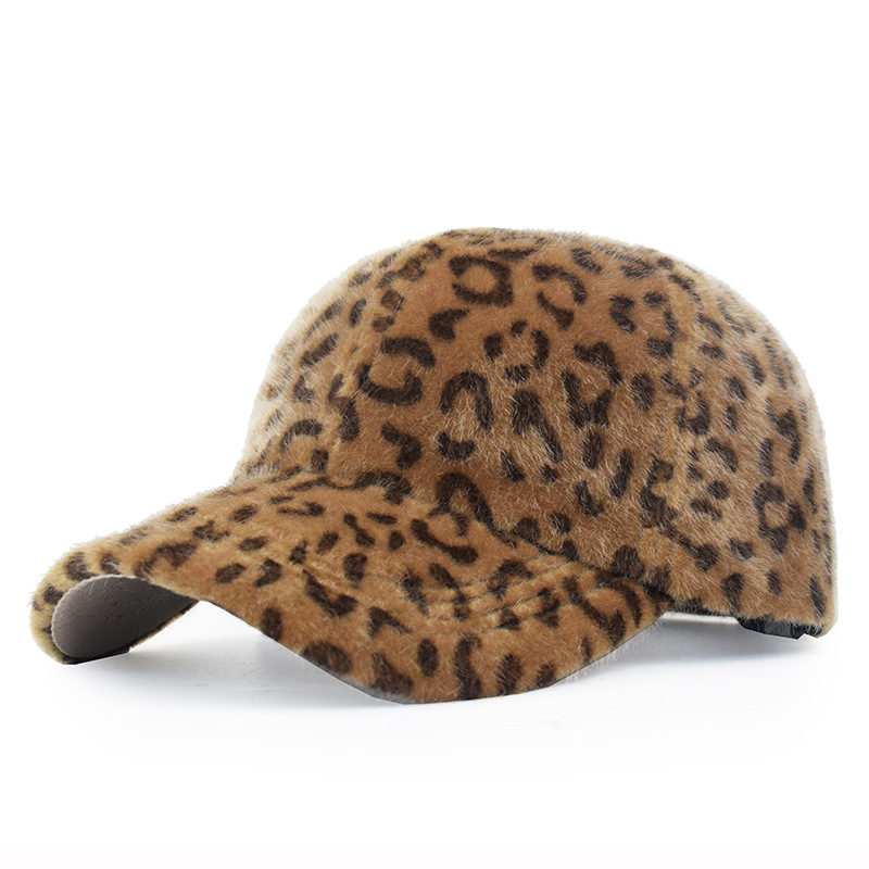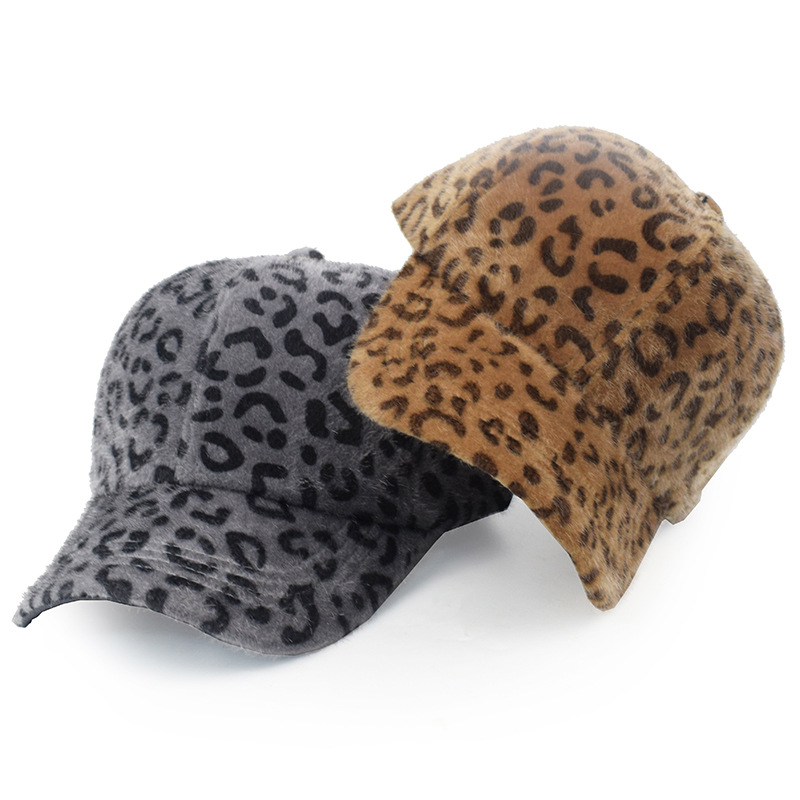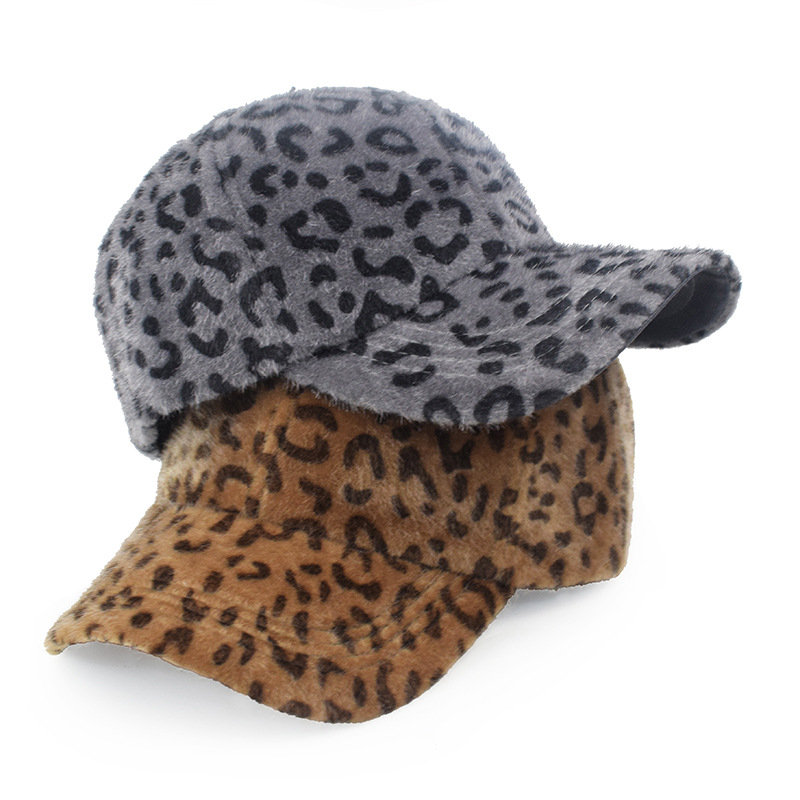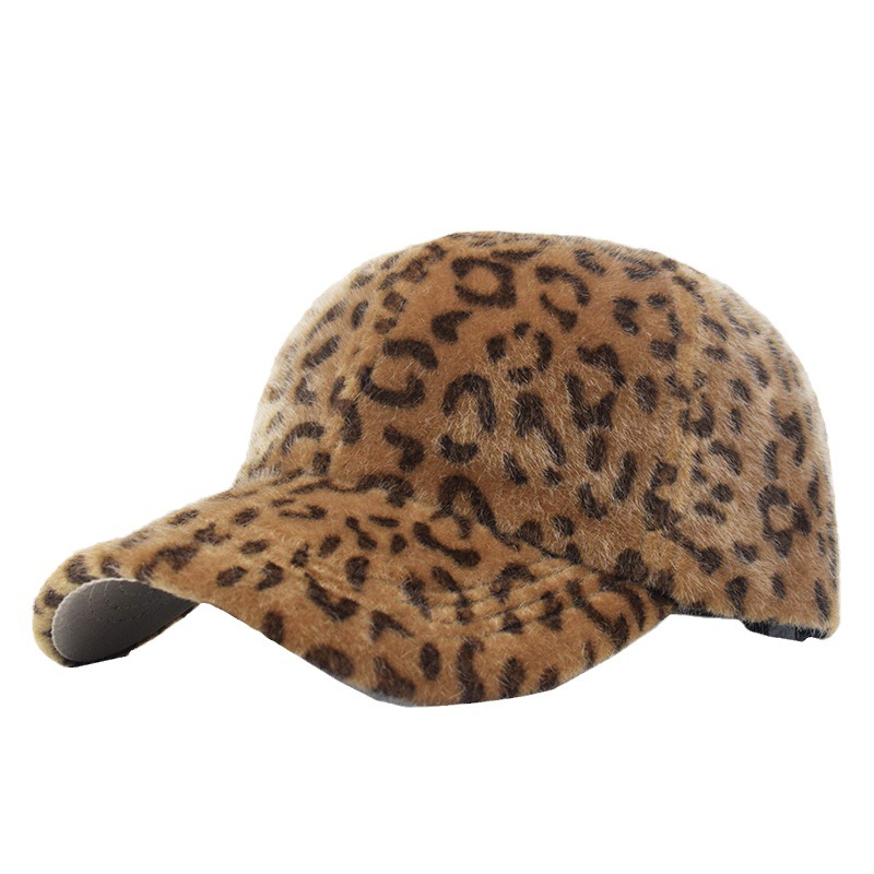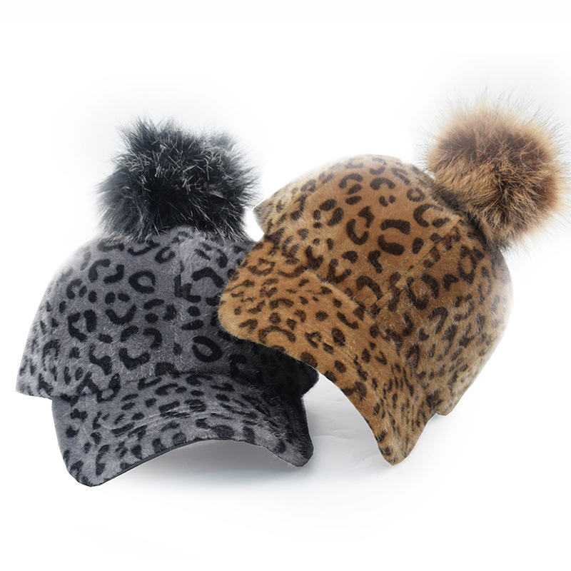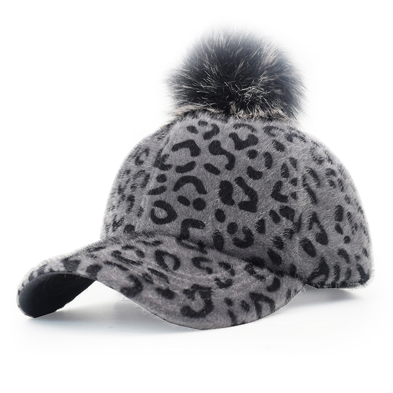 欧美豹纹棒球帽女毛球鸭舌帽秋冬天青年百搭加厚毛绒保暖帽亚马逊