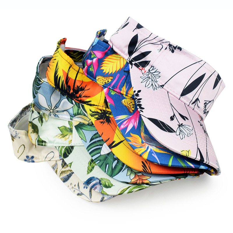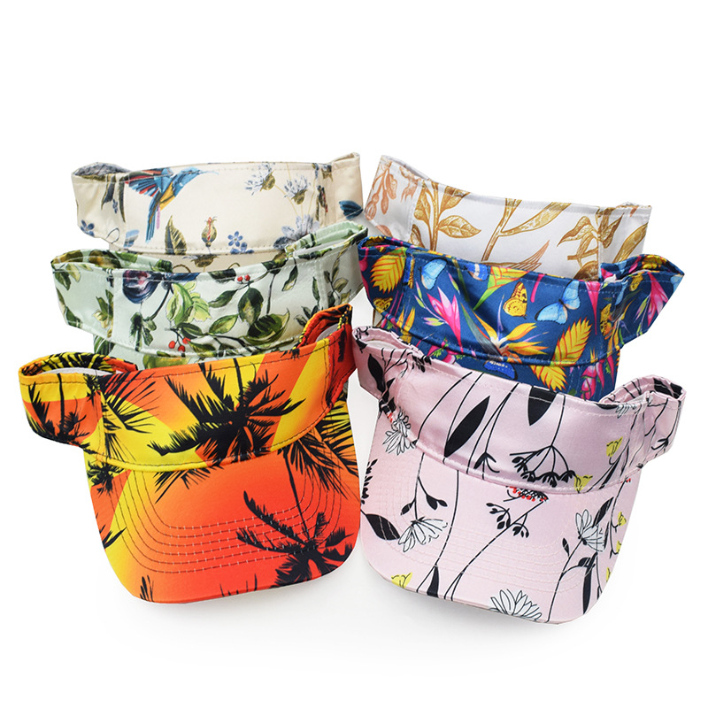 欧美仿真丝空顶帽无顶透气太阳帽东南亚印花棒球帽度假帽跨境外贸