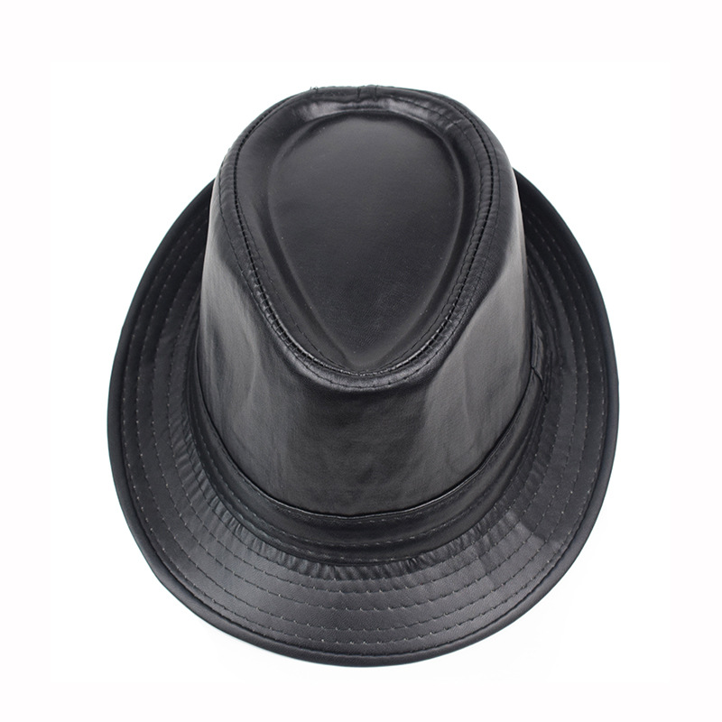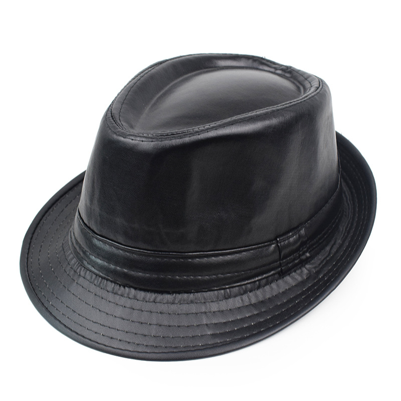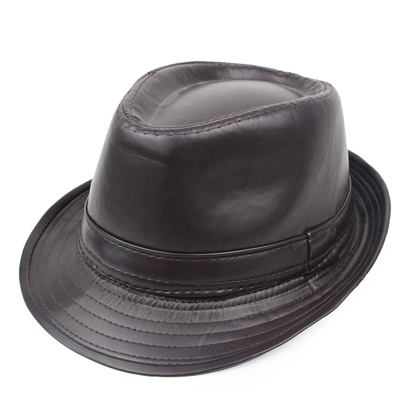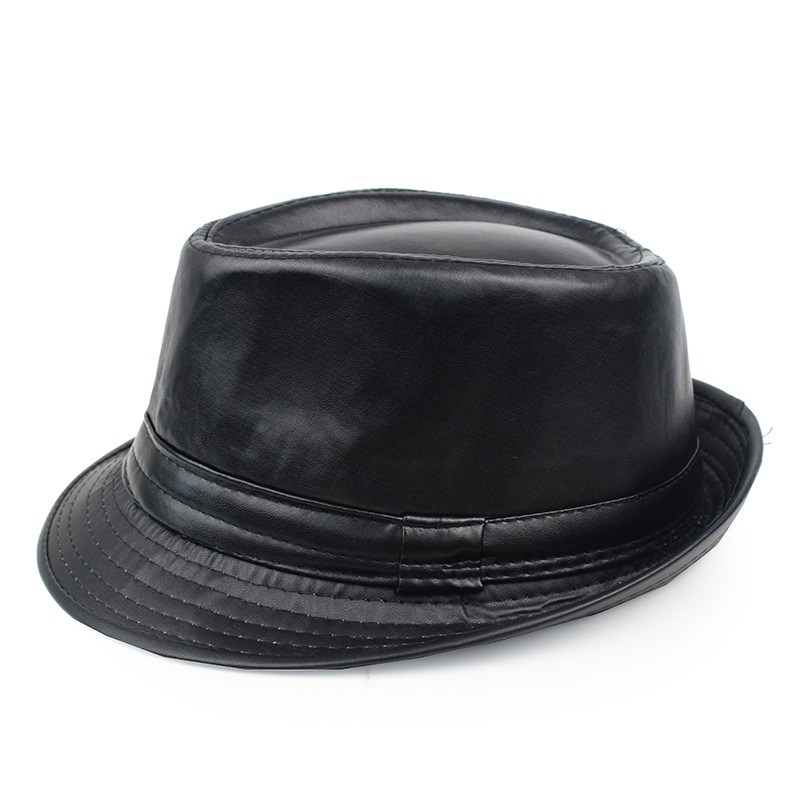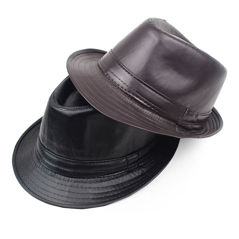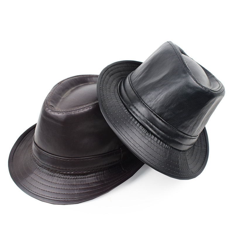 英伦时尚爵士帽男士复古礼帽秋冬中老年爸爸PU皮质帽子绅士表演帽