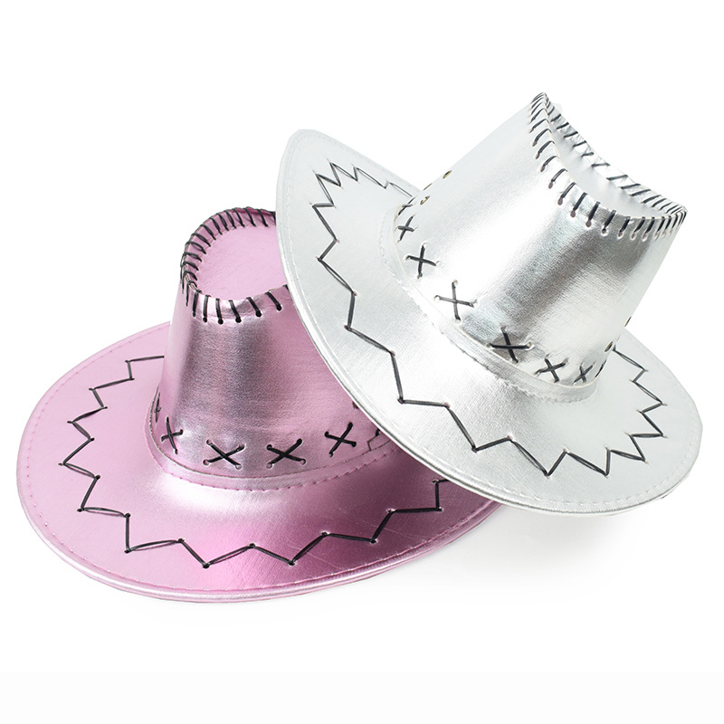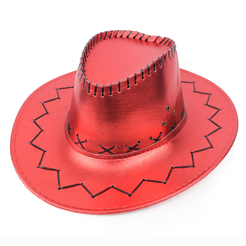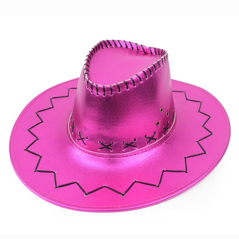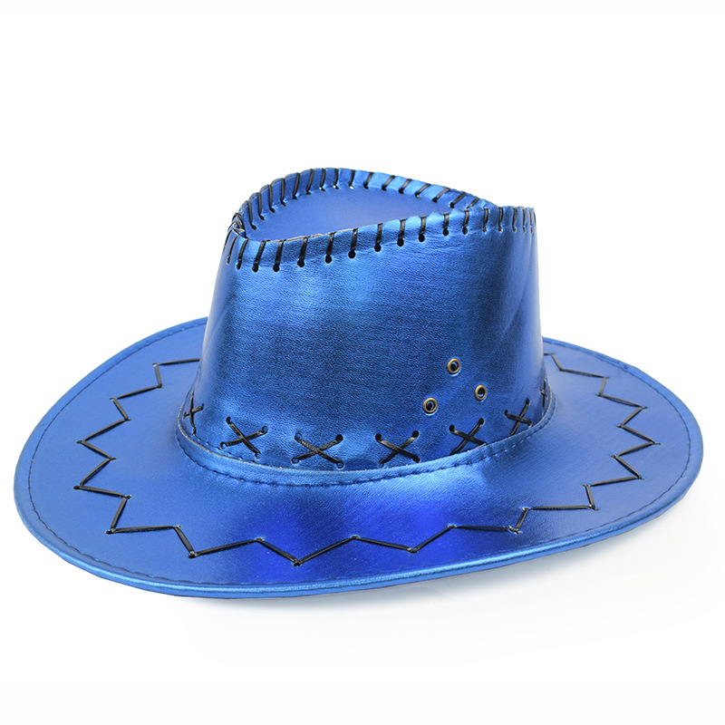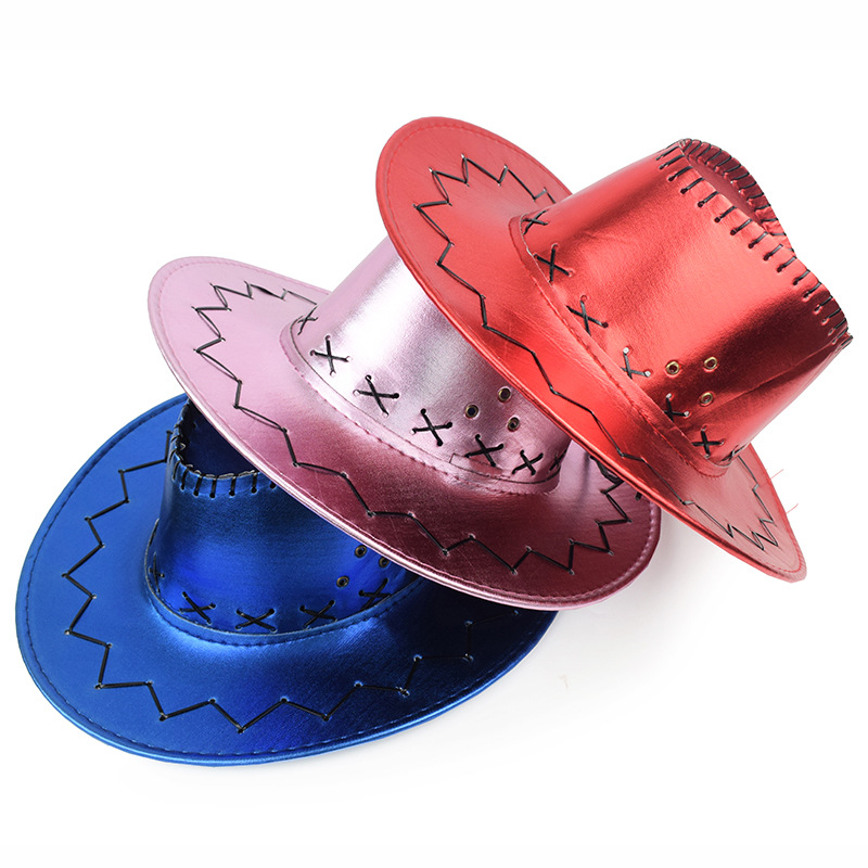 跨境西部牛仔帽亮光面旅游男士遮阳帽辣妹拍照风女网红表演骑士帽