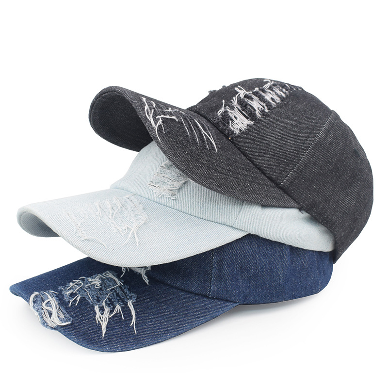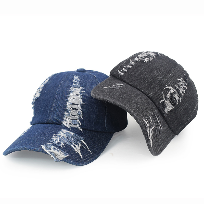 水洗破洞牛仔鸭舌帽女欧美做旧棒球帽男春秋季时尚情侣遮阳帽跨境