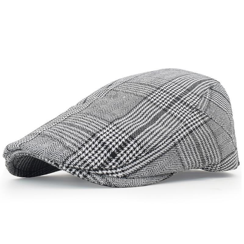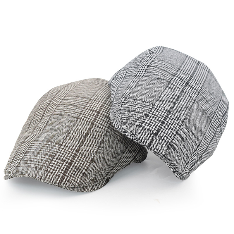 贝雷帽春夏秋季男士韩版时尚格纹鸭舌帽女英伦时尚文艺复古前进帽