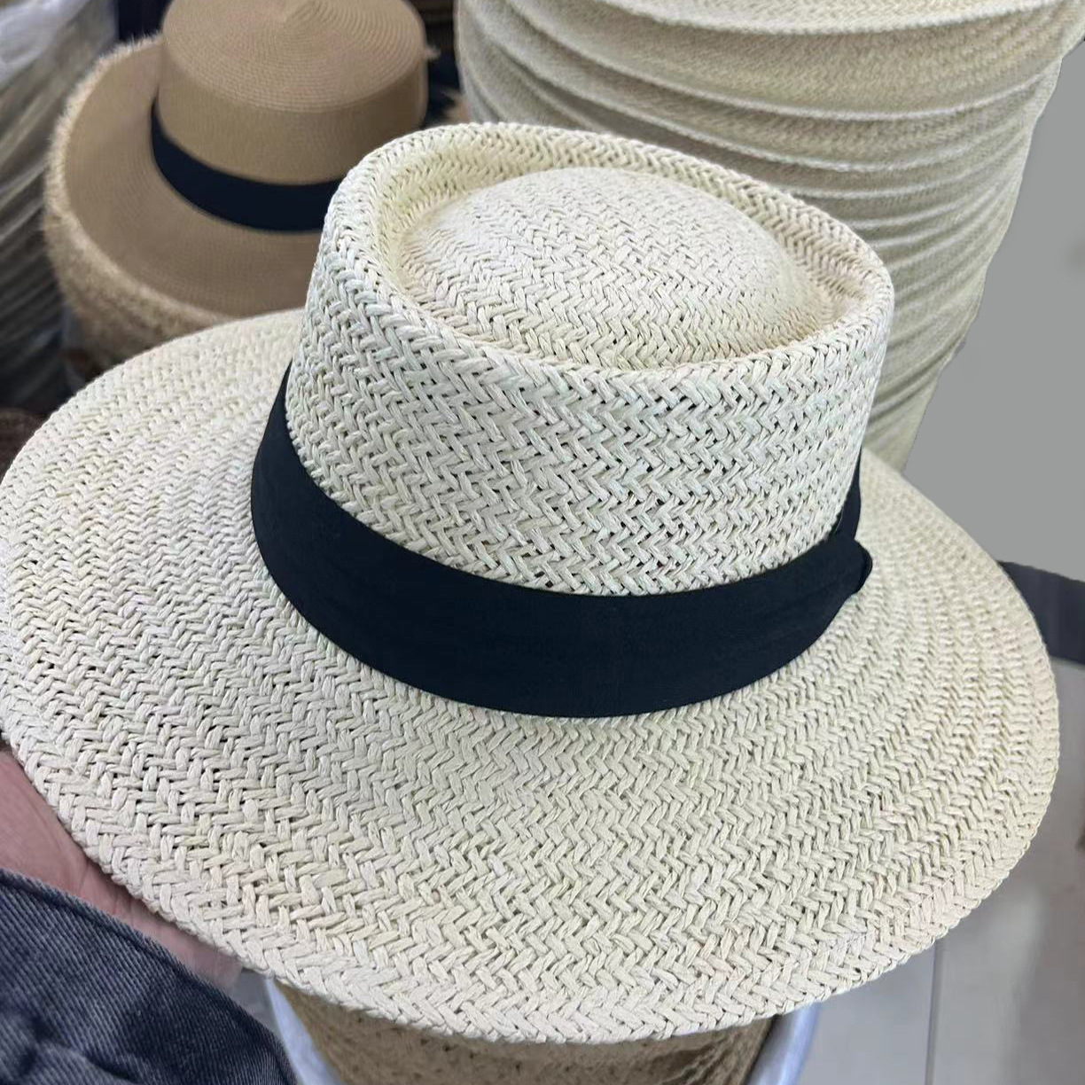 跨境复古平顶草帽女夏海边度假遮阳法式平沿沙滩防晒小清新旅游帽