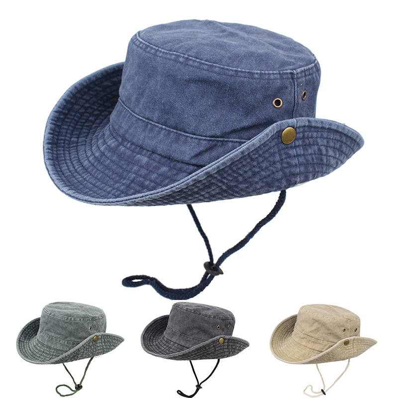 欧美复古水洗渔夫帽男女户外遮阳登山大檐帽春夏旅游沙滩牛仔帽潮