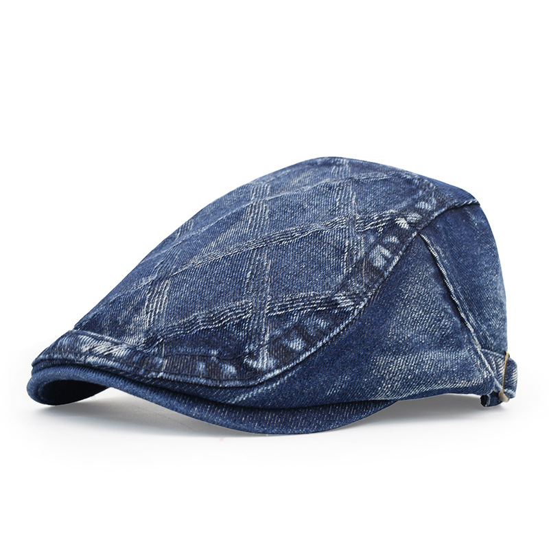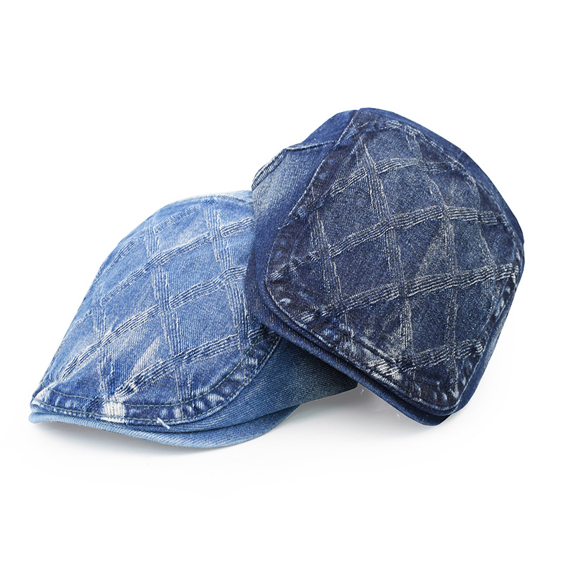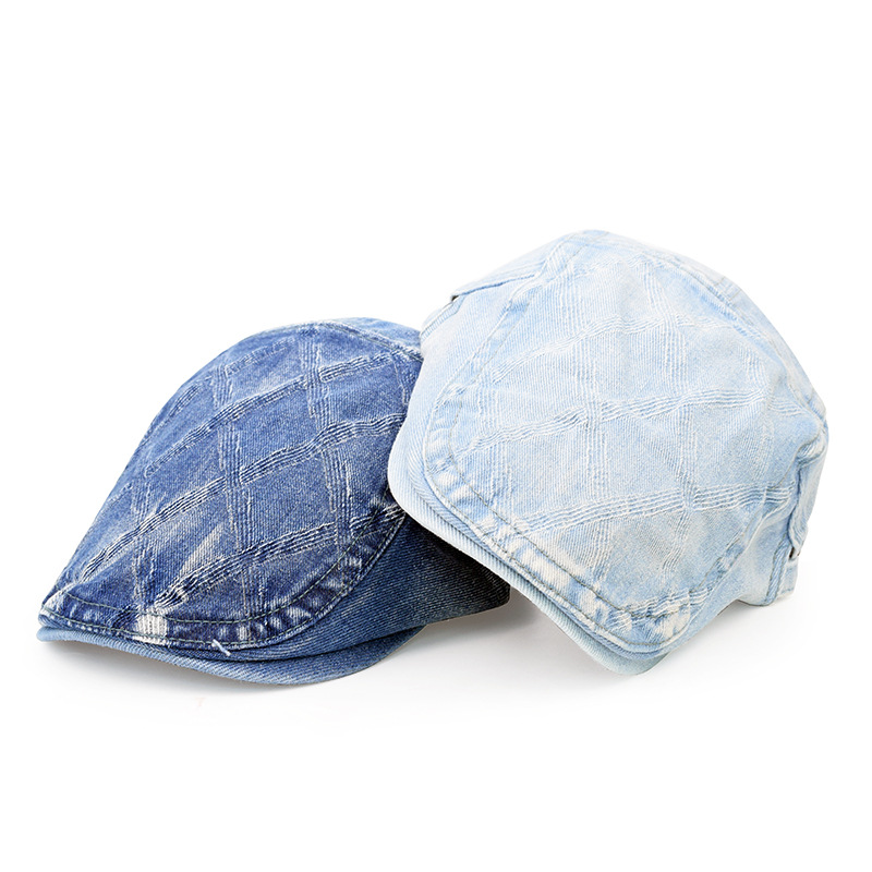 欧美牛仔布鸭舌帽做旧拉格英伦复古前进帽夏秋季男女士时尚贝雷帽
