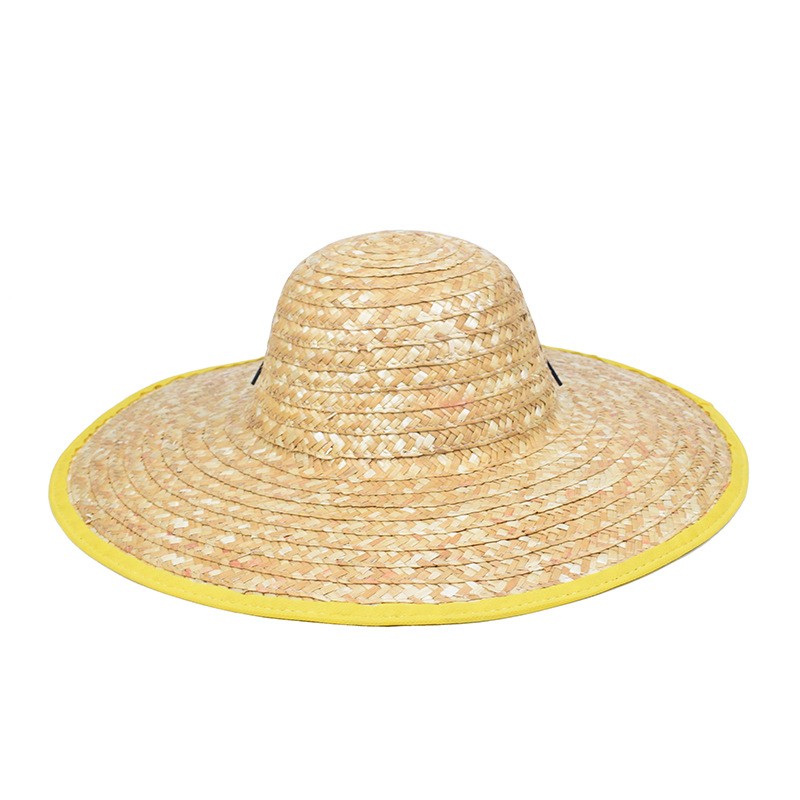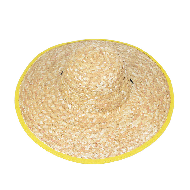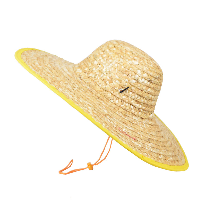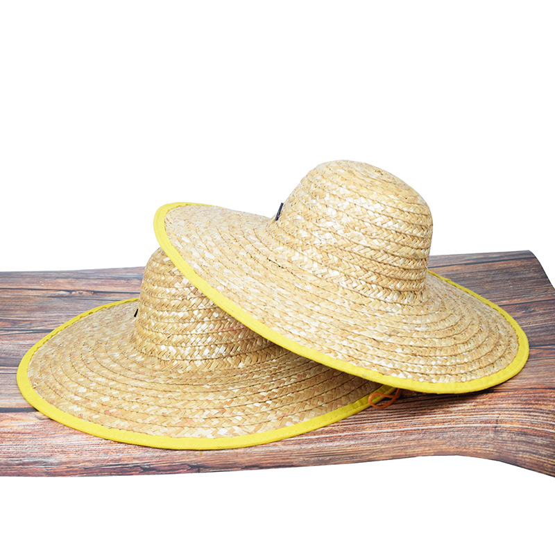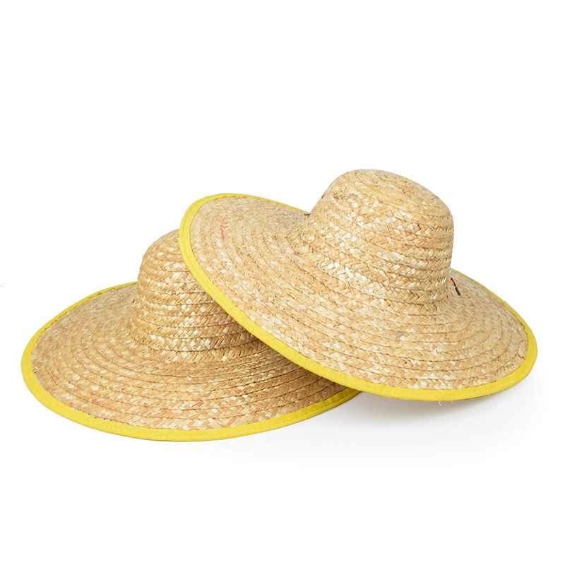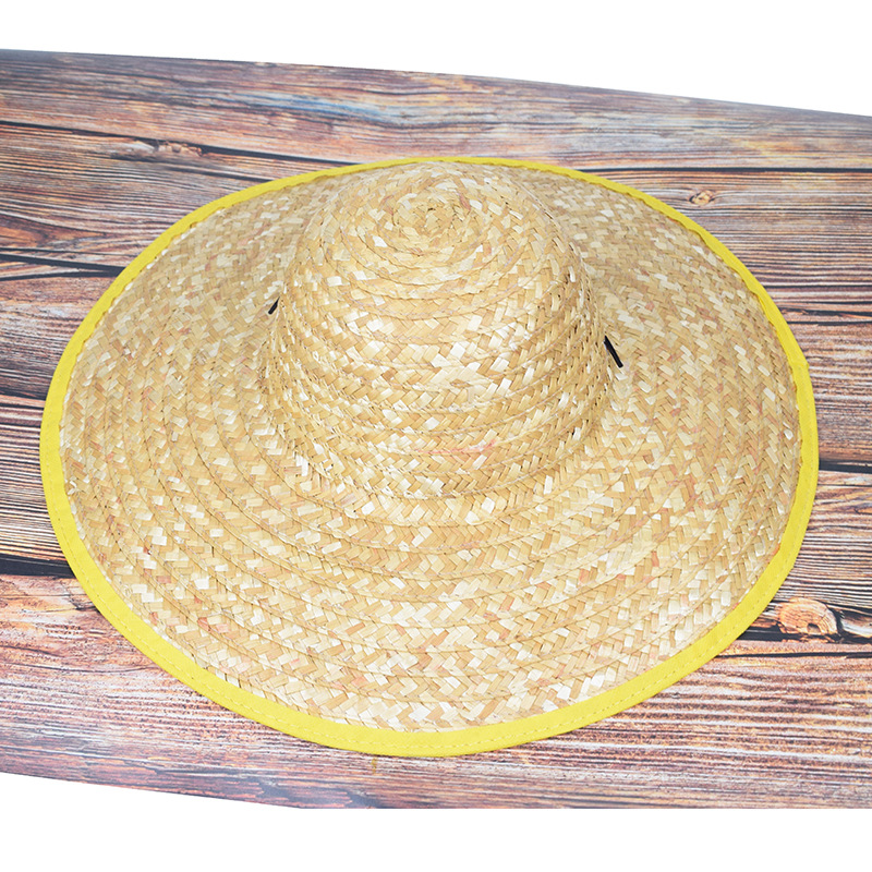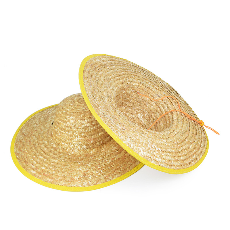 夏季户外施工手工草帽农业工人麦秸编织防风草帽劳保大帽沿遮阳帽