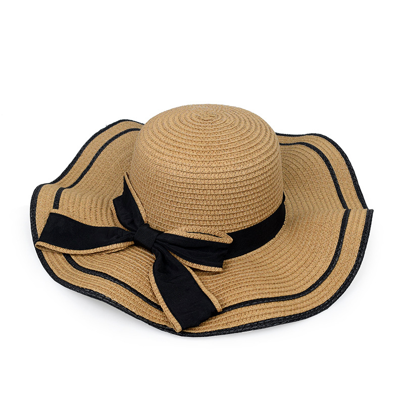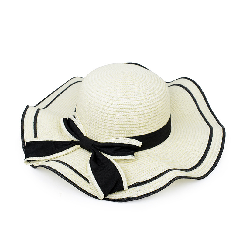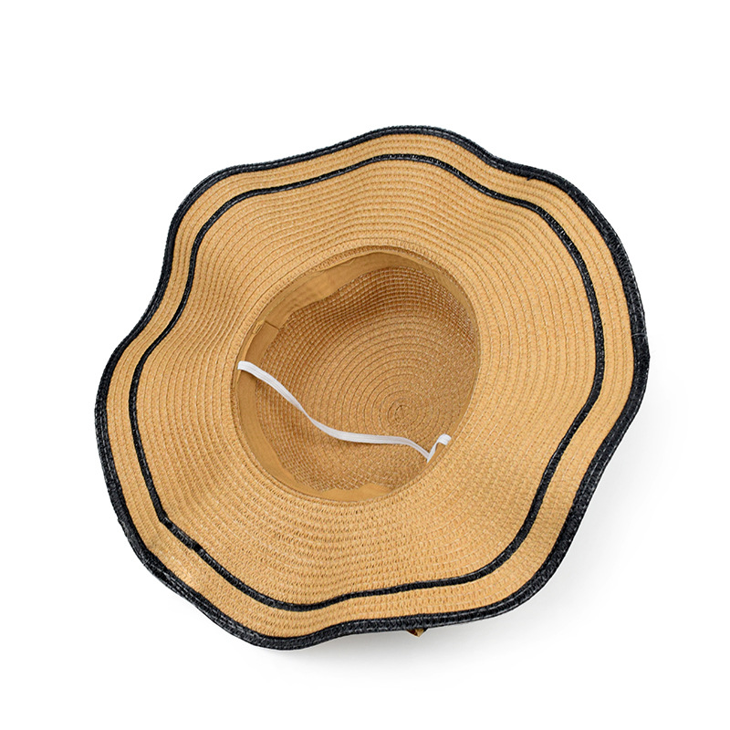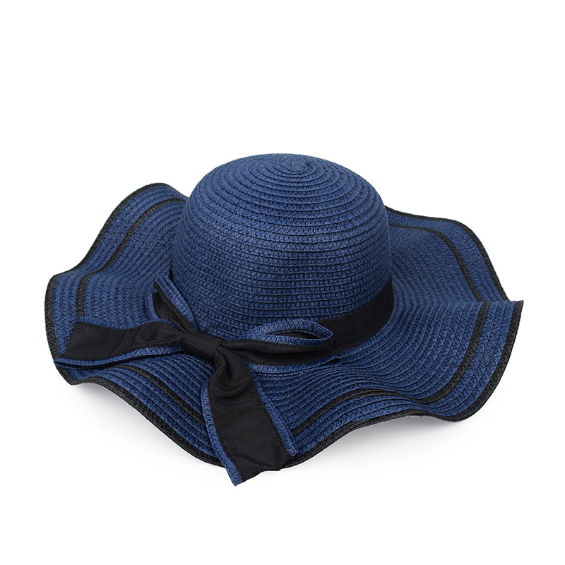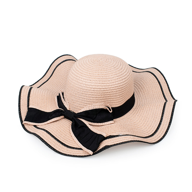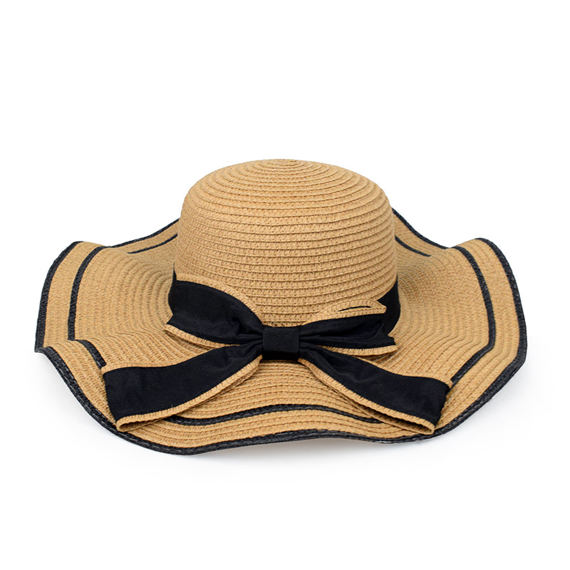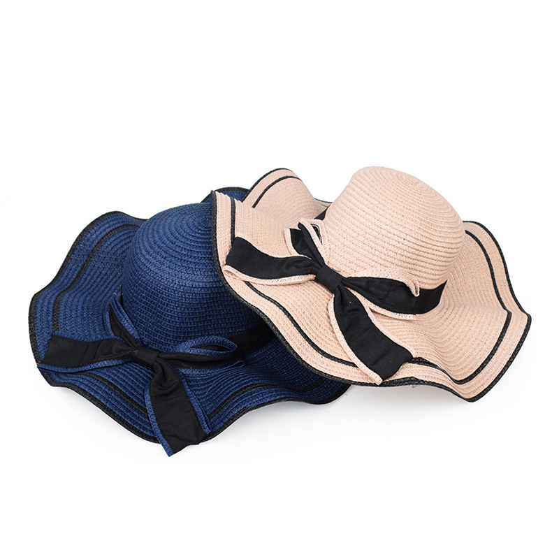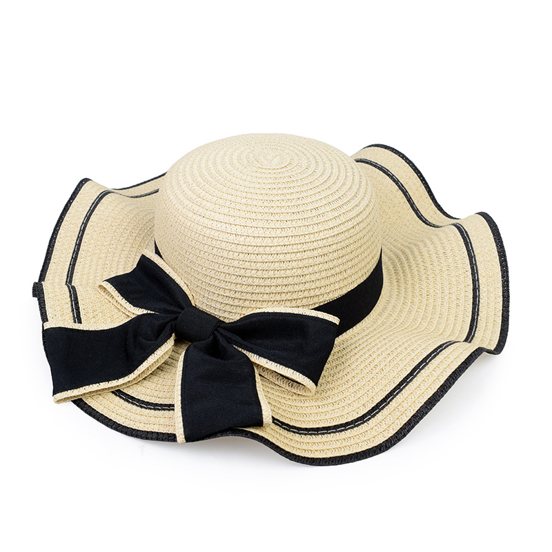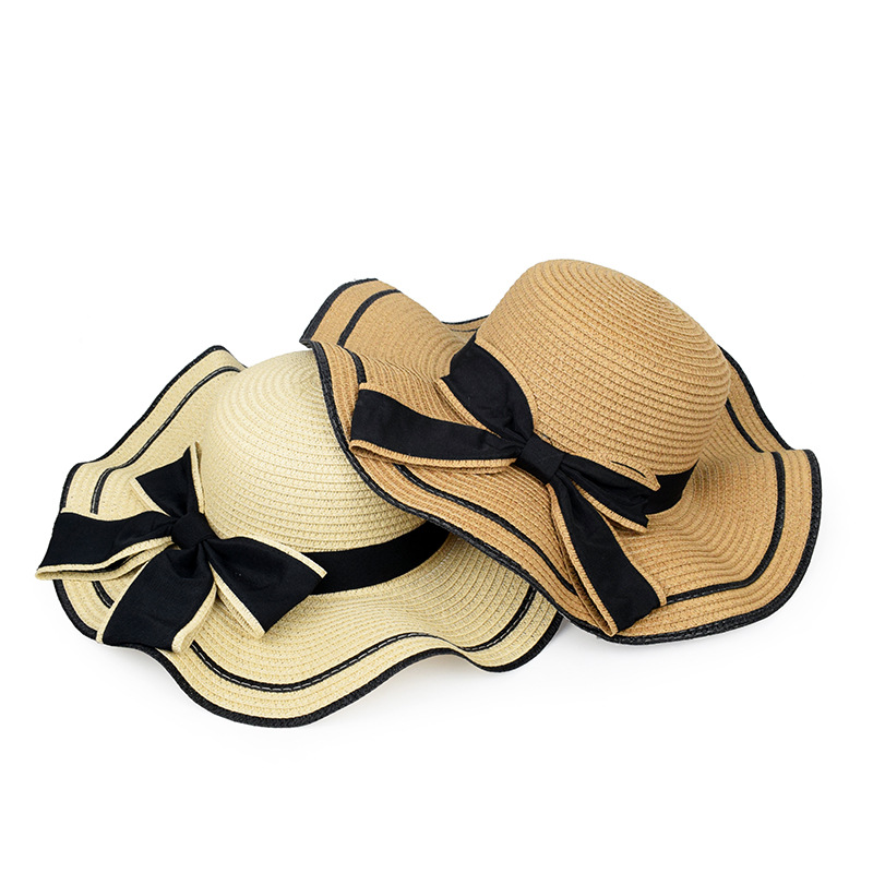 夏季帽子女大檐草帽波浪边蝴蝶遮阳帽女士户外沙滩纸草百搭大沿帽