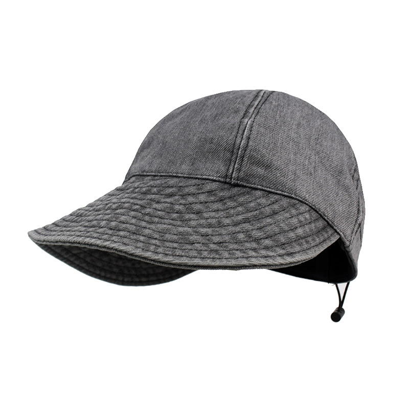 跨境抽绳牛仔渔夫帽女秋冬时尚个性小众显脸小鸭舌帽遮脸宽檐帽子