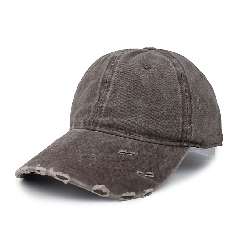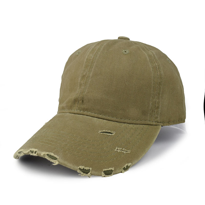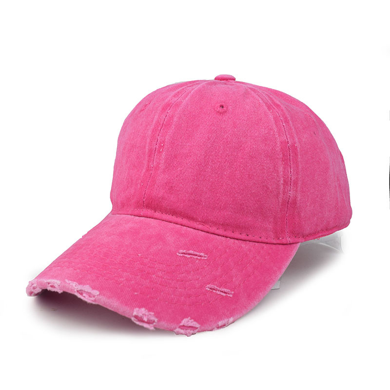 跨境破洞水洗帽子女马尾做旧纯色棒球帽弯檐欧美新款光板帽鸭舌帽