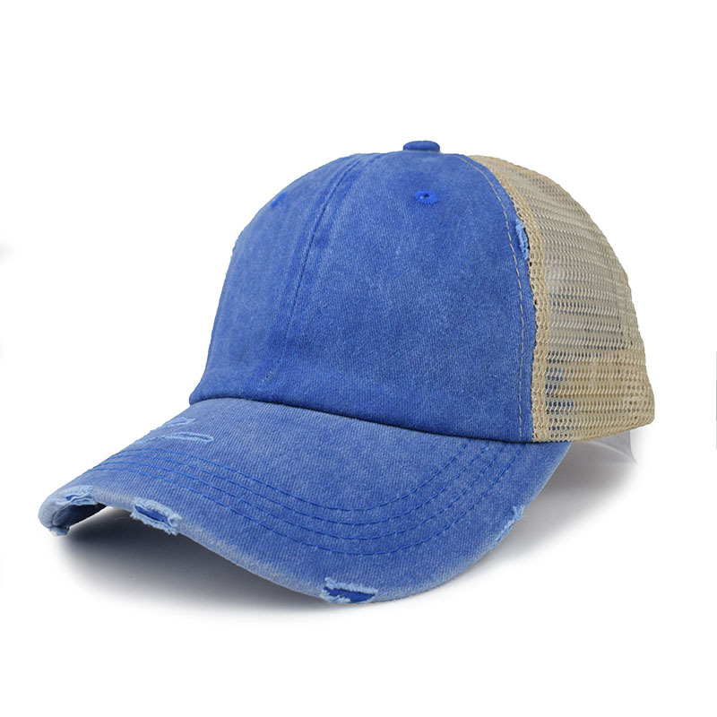 跨境热销半网水洗棉质鸭舌帽复古做旧马尾棒球帽防晒遮阳帽子夏帽