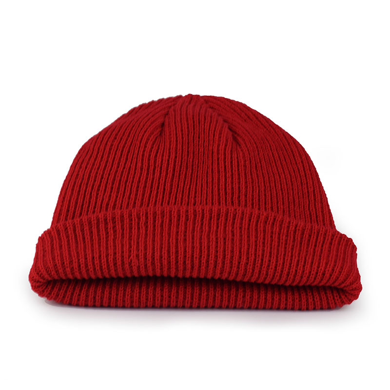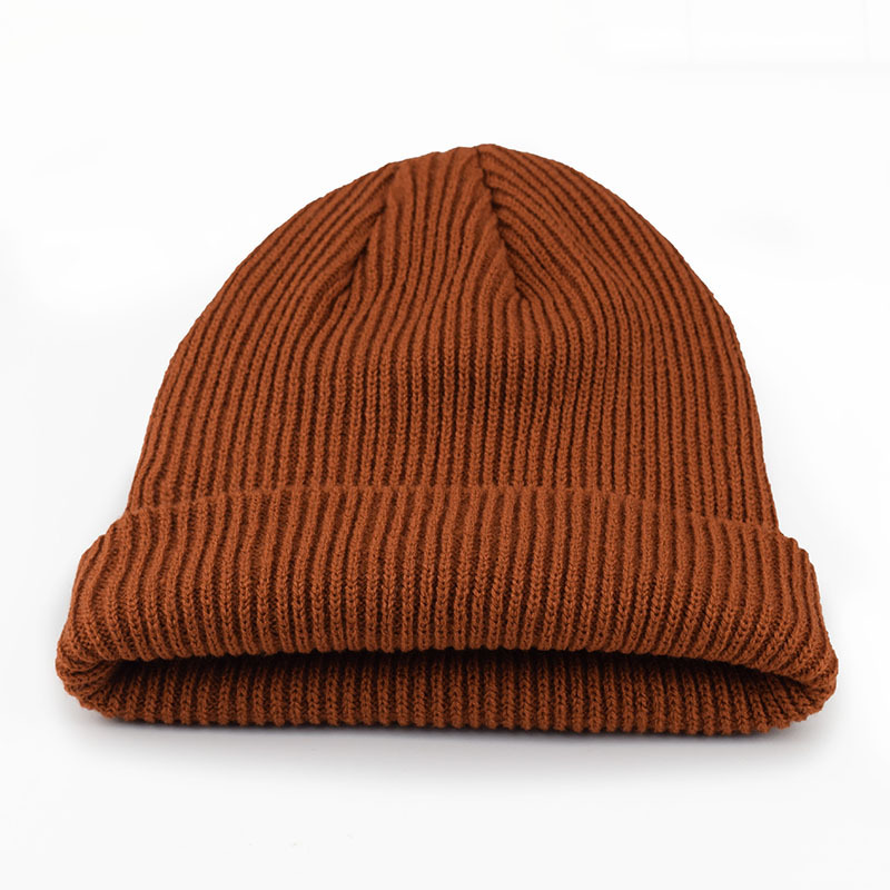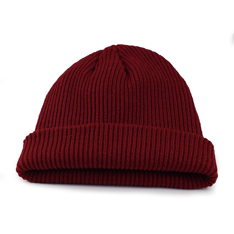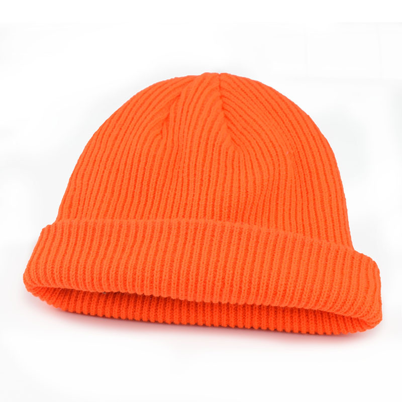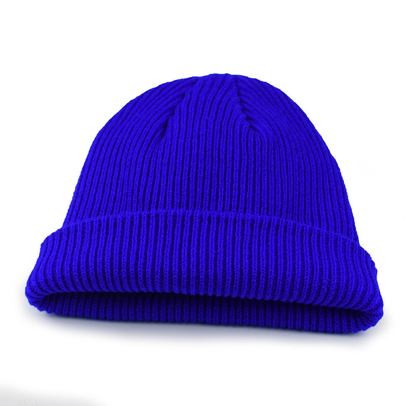 针织毛线帽秋冬韩版男女纯色翻边瓜皮帽外贸保暖包头帽户外地主帽