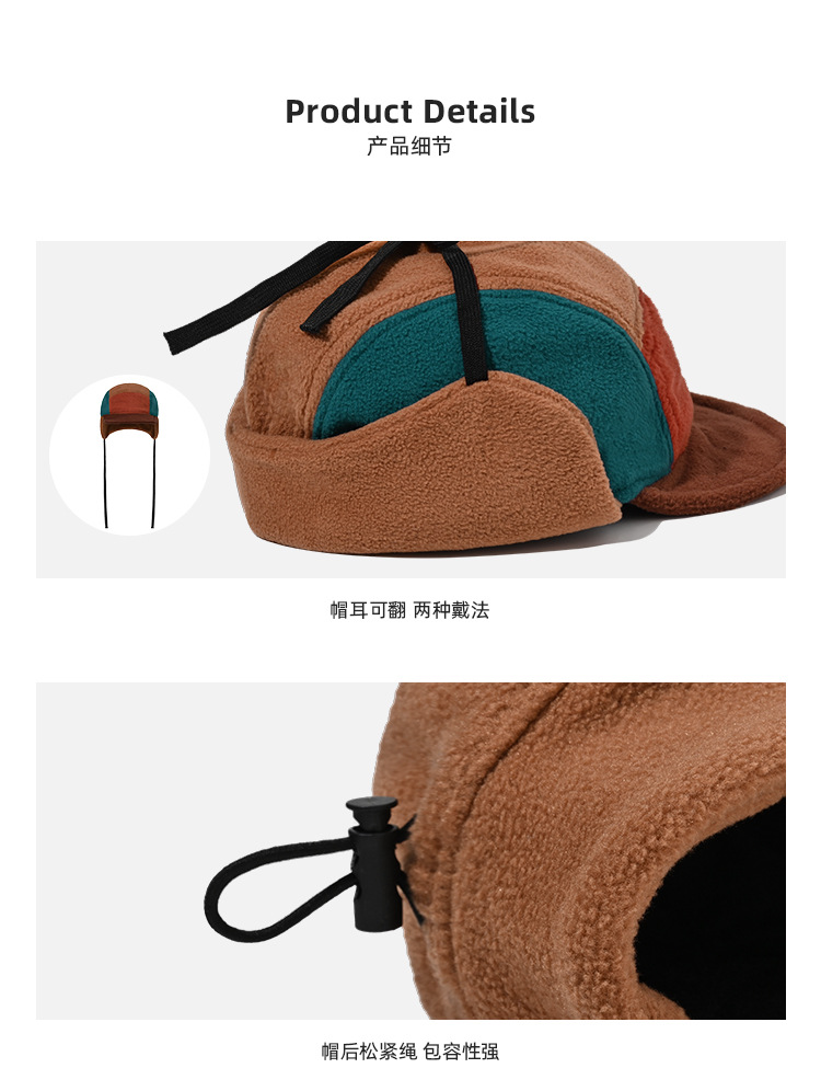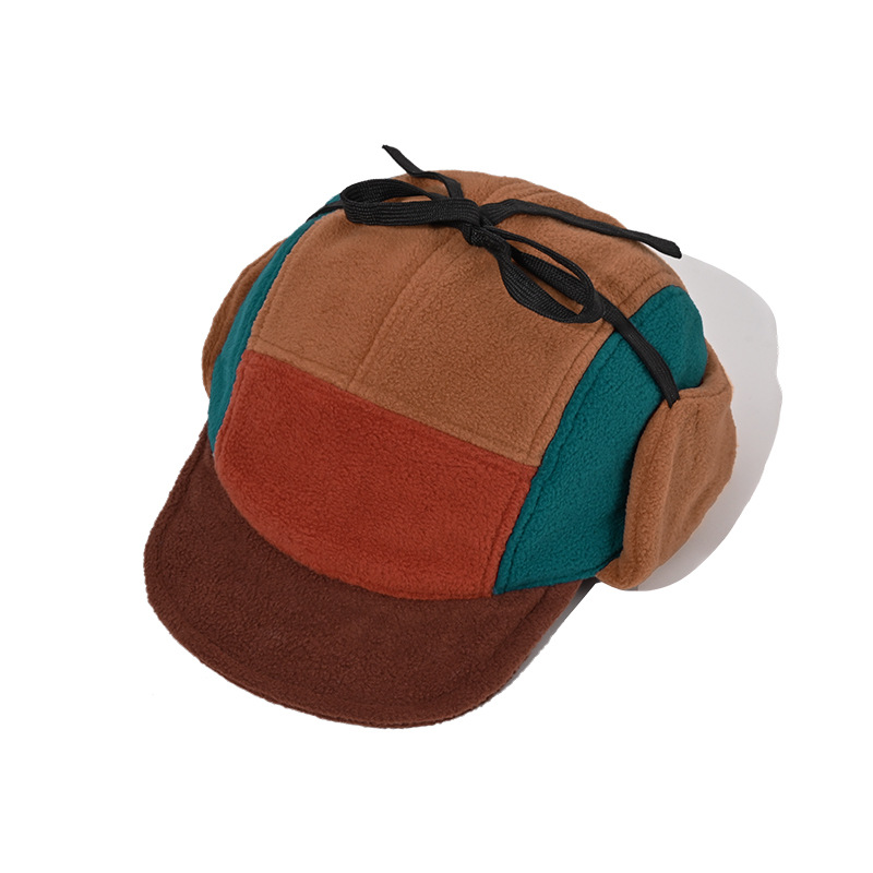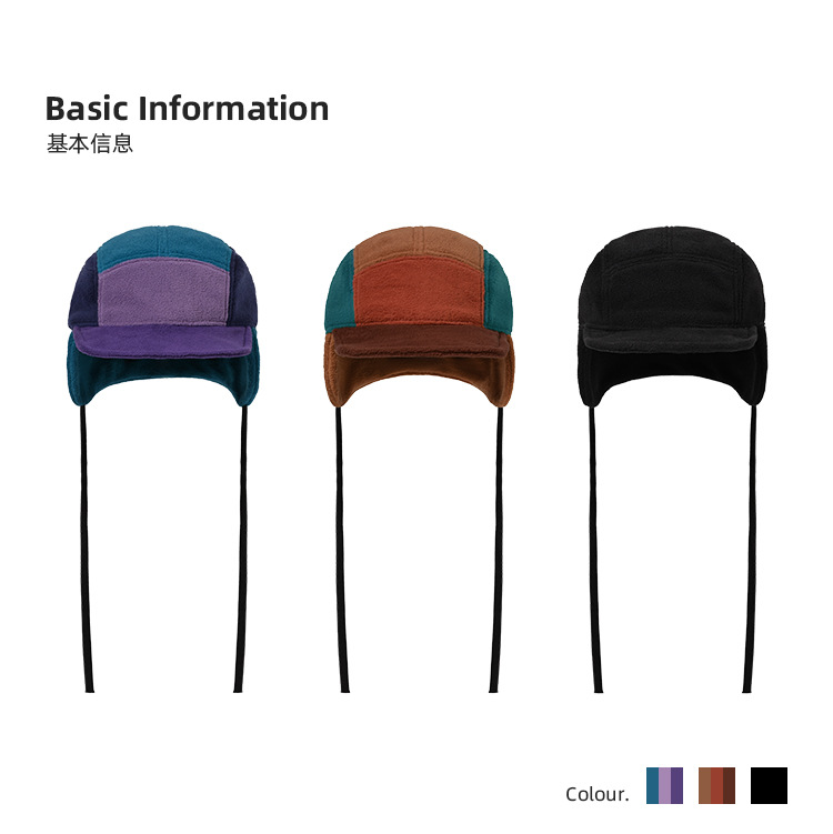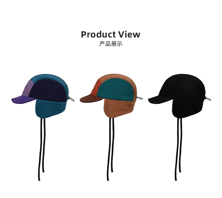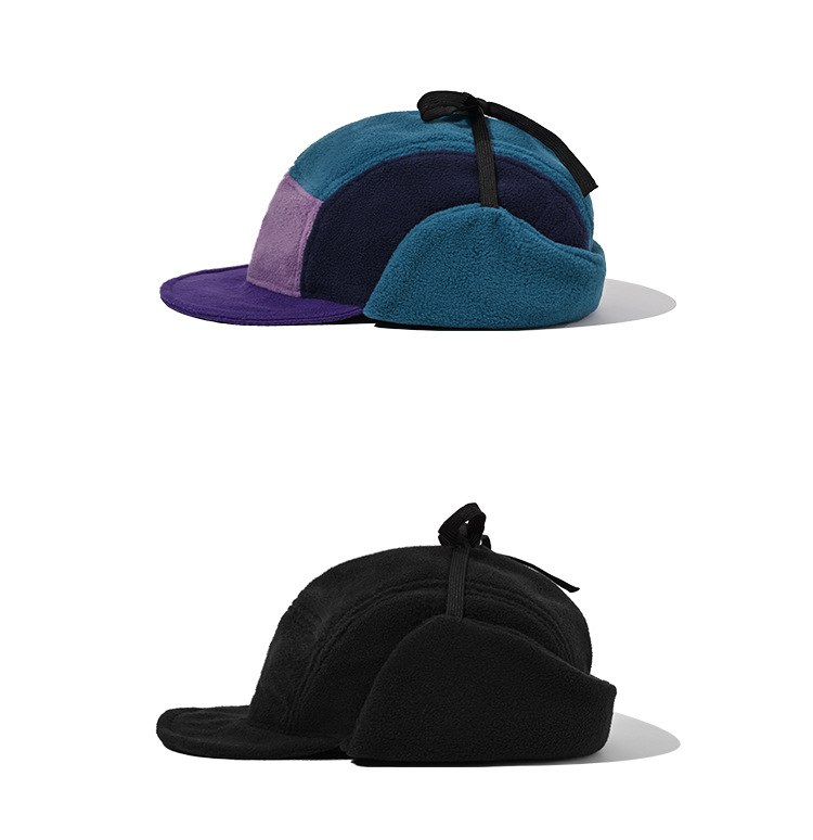 秋冬天棒球帽速干抓绒鸭舌帽护耳男女五页拼色帽子摇粒绒保暖跨境