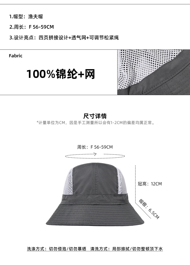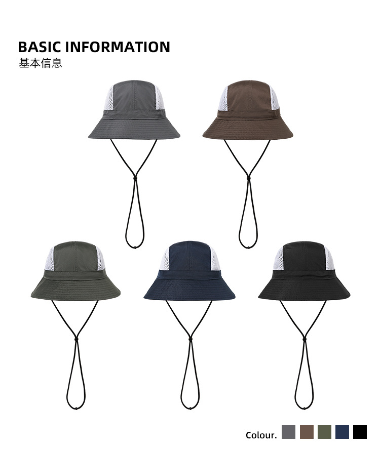 日系速干防风渔夫帽工装五页帽男女户外透气盆帽抽绳松紧调节帽子