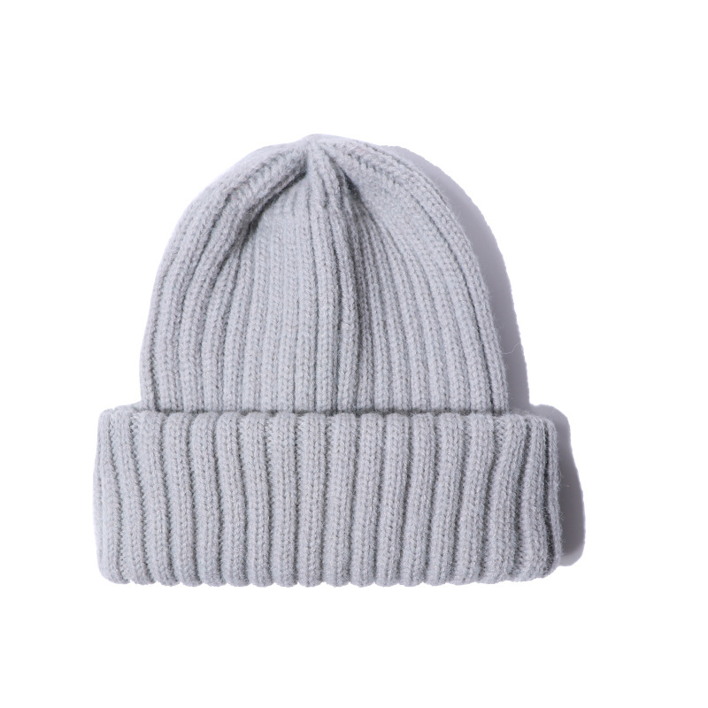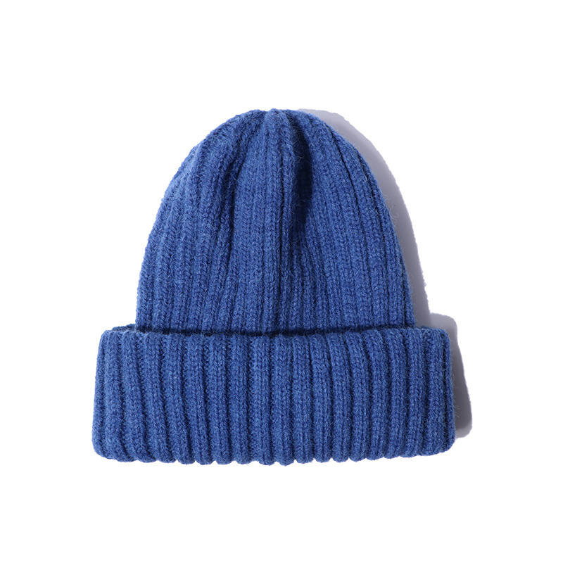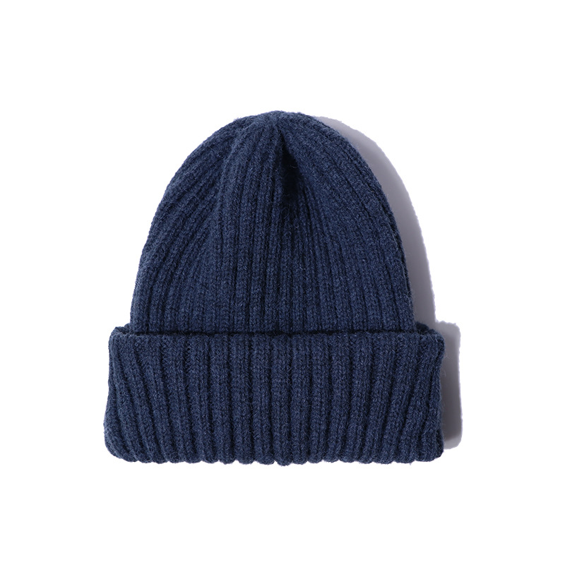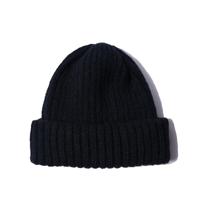 简约针织帽毛线帽纯色复古日系百搭堆堆帽子护耳包头保暖冷帽男女