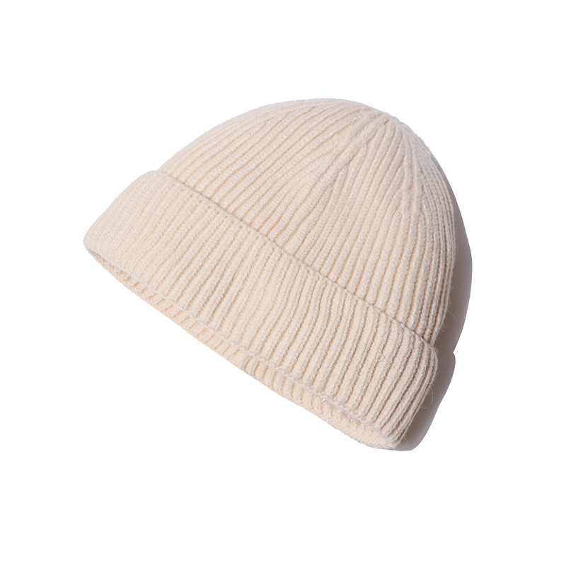 韩系街头瓜皮毛线帽子男女冷帽秋冬雅痞帽日系纯色简约地主针织帽