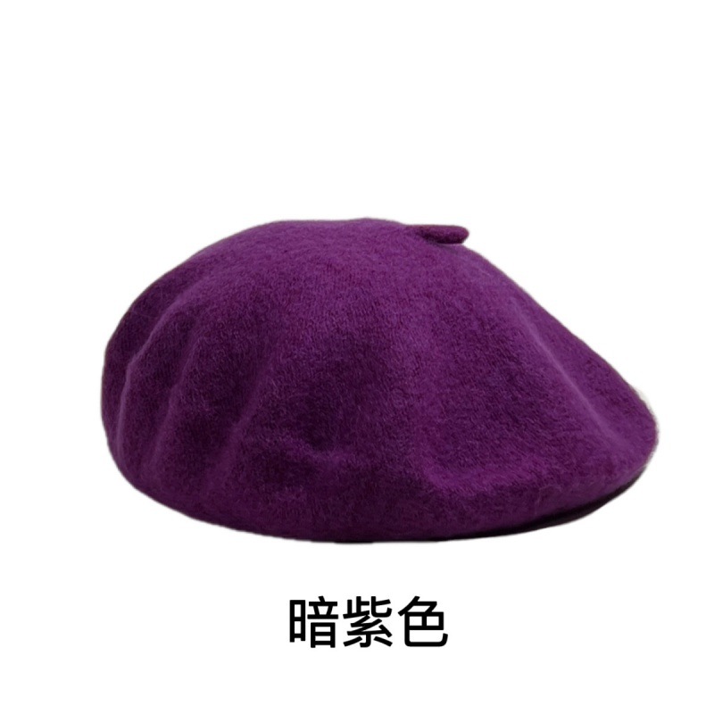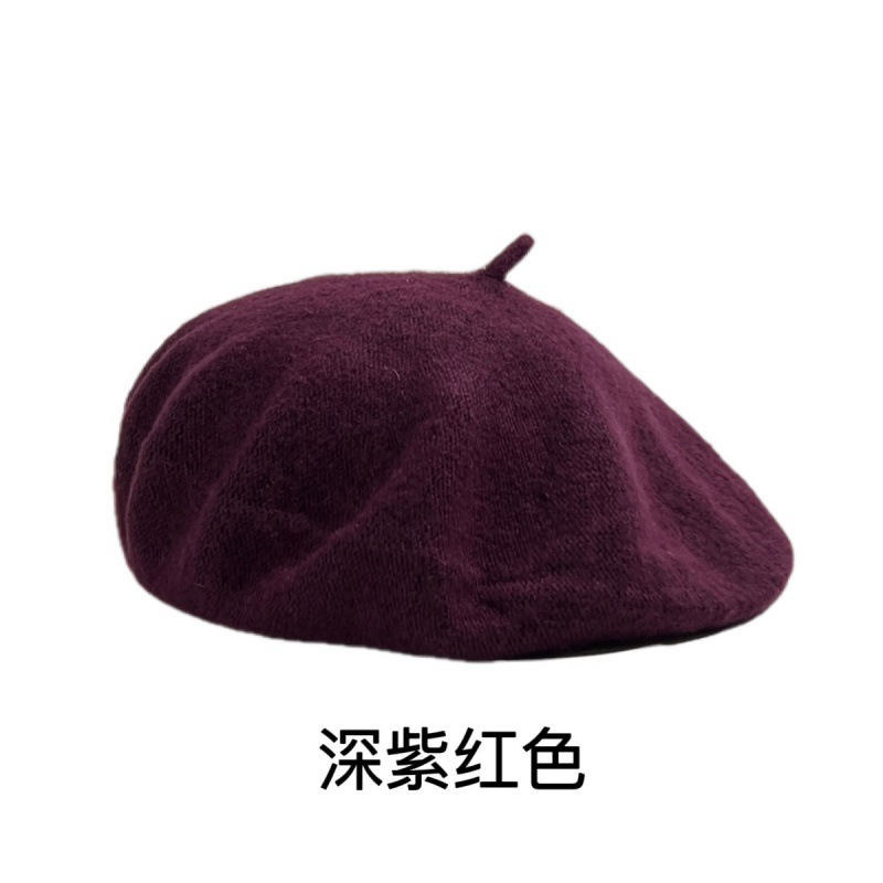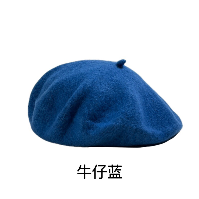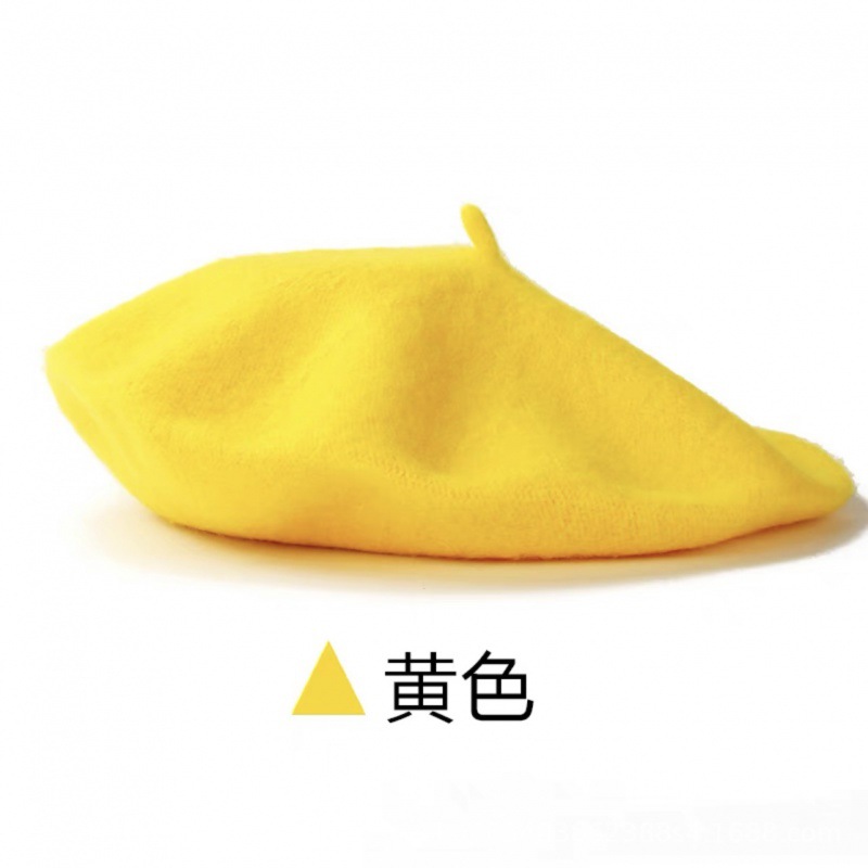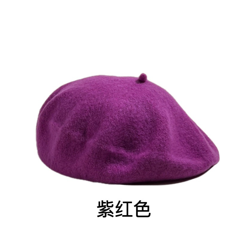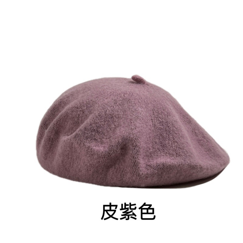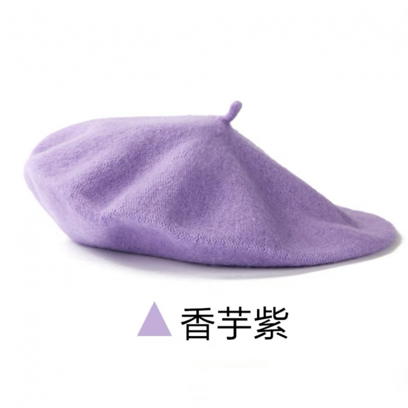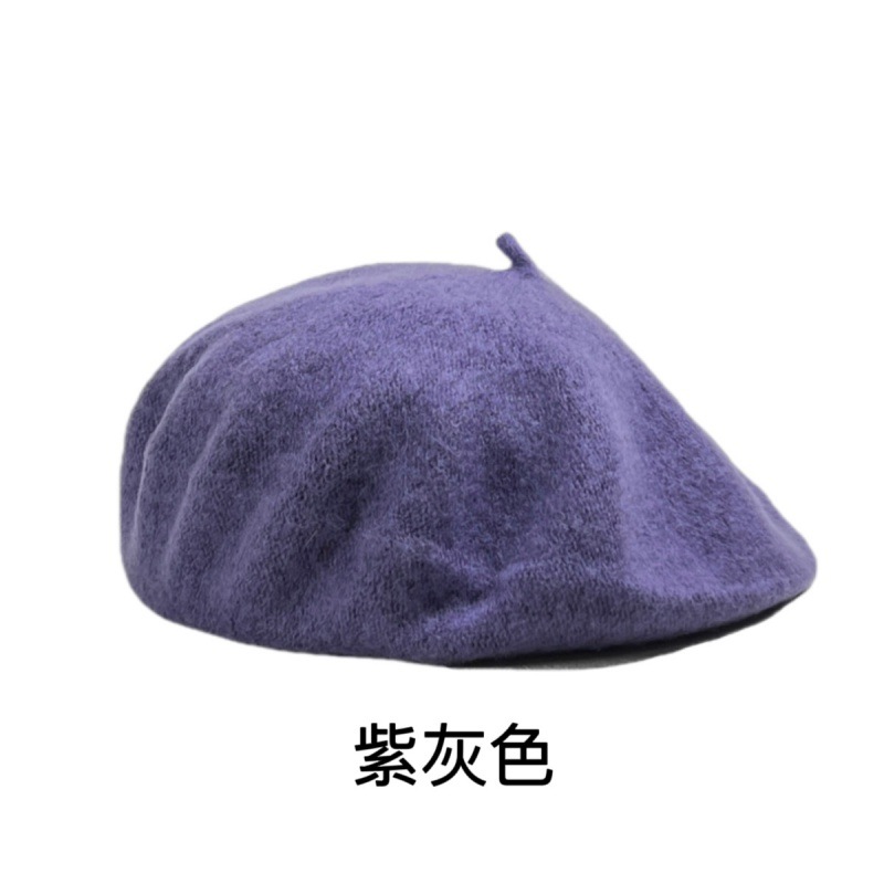 帽子跨境女糖果色秋冬季羊毛针织贝雷帽韩版蓓蕾帽英伦复古画家帽