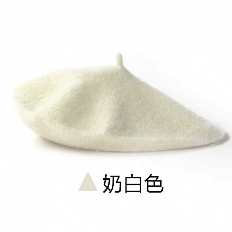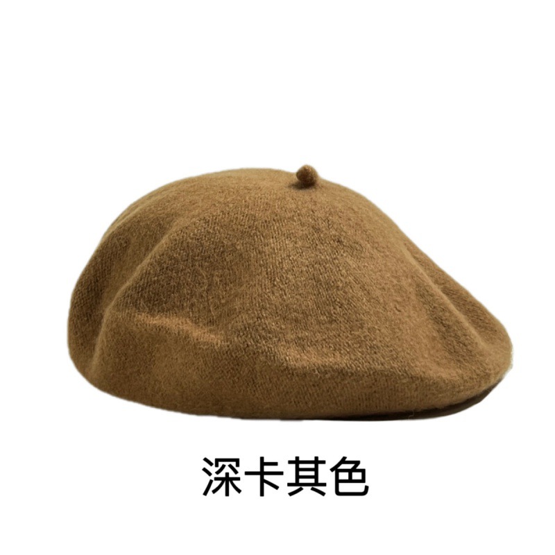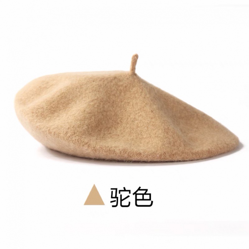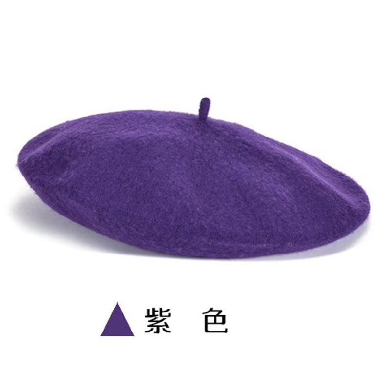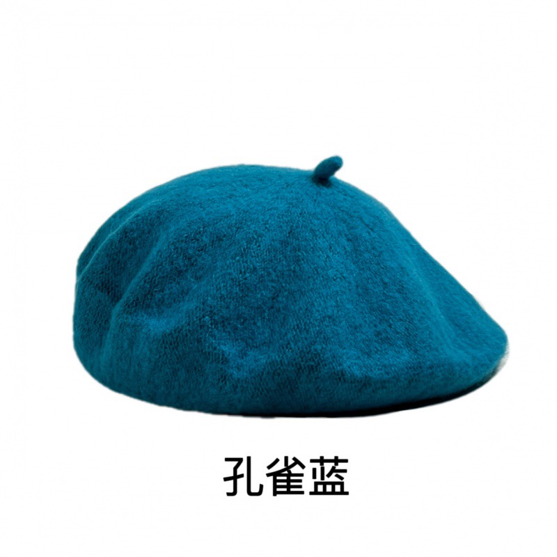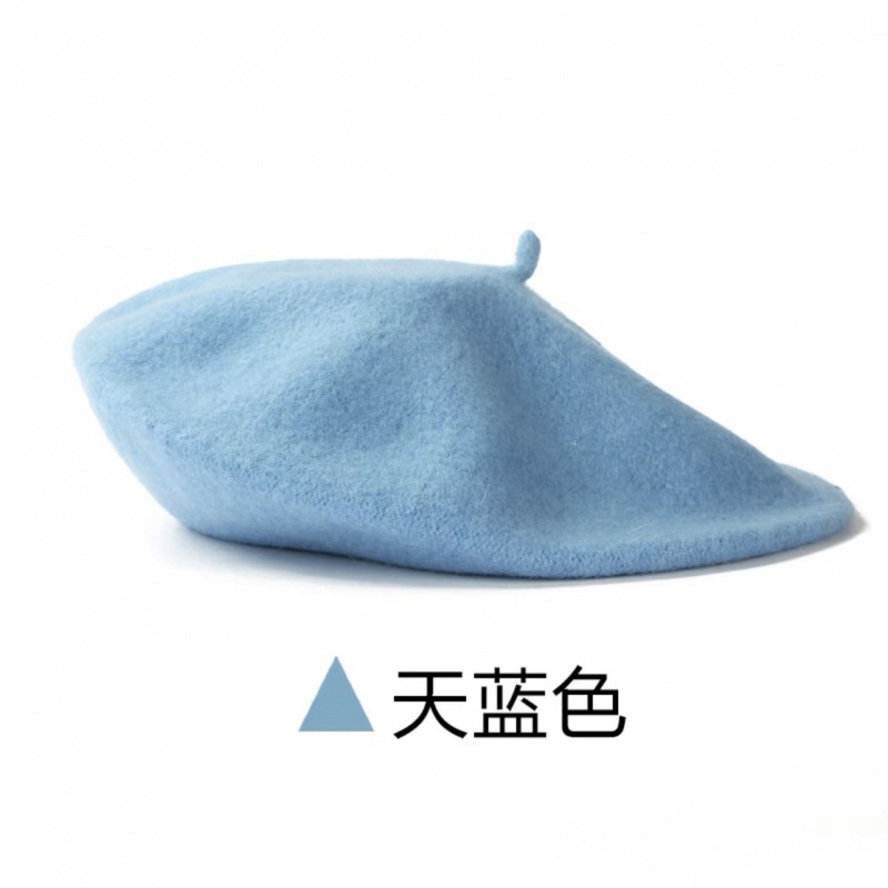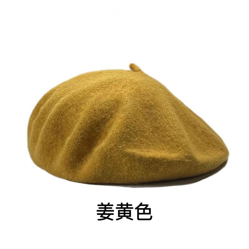 帽子跨境女糖果色秋冬季羊毛针织贝雷帽韩版蓓蕾帽英伦复古画家帽
