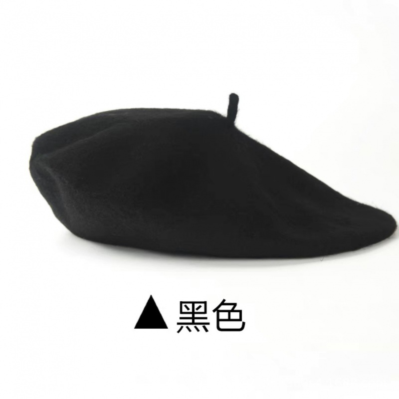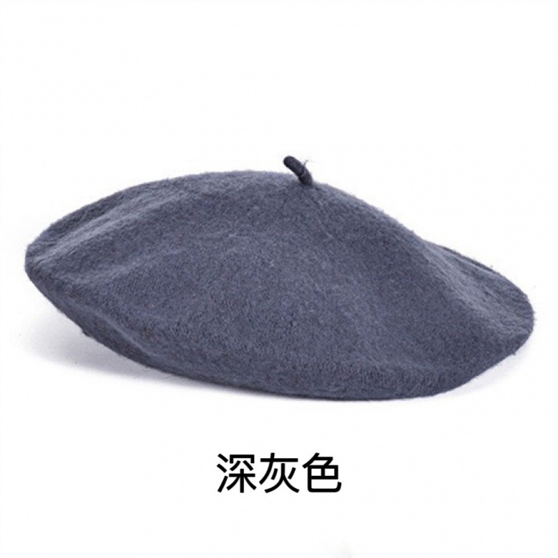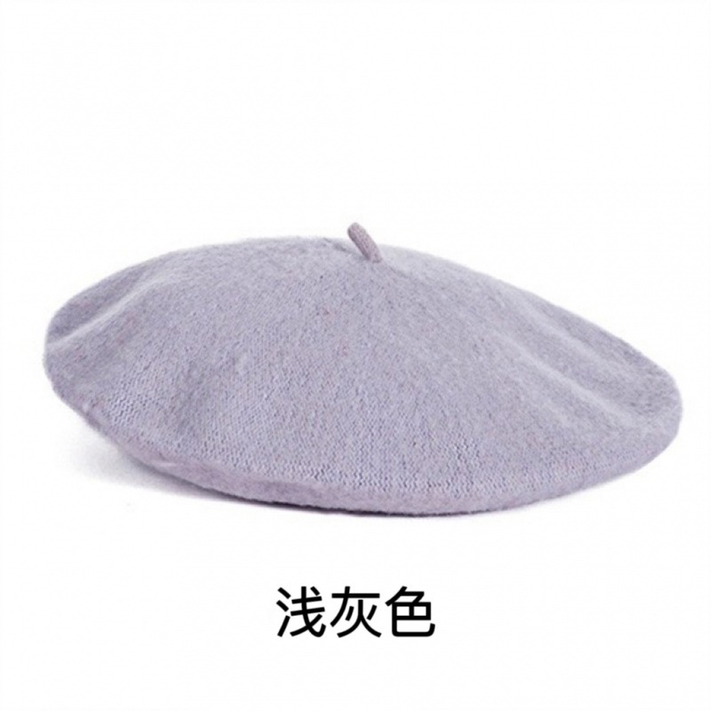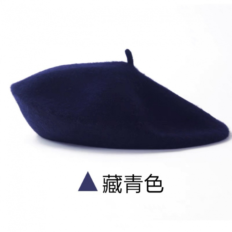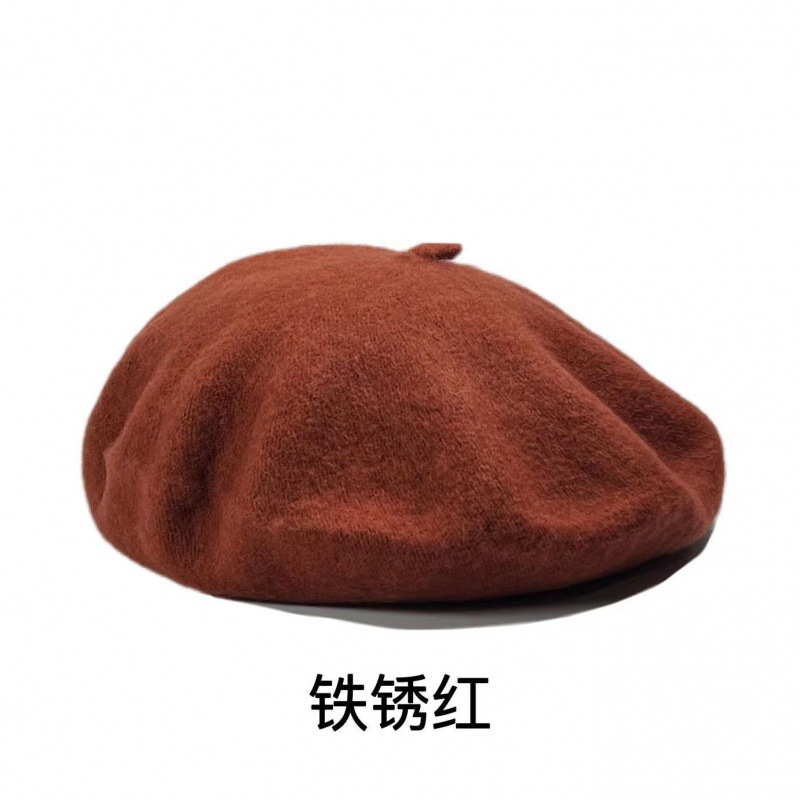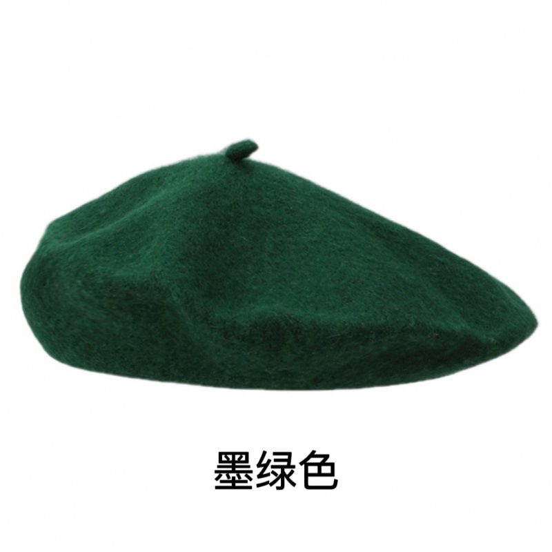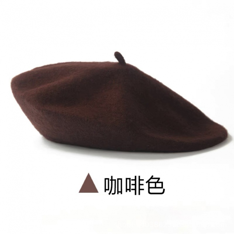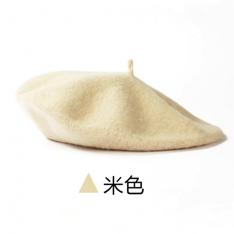 帽子跨境女糖果色秋冬季羊毛针织贝雷帽韩版蓓蕾帽英伦复古画家帽