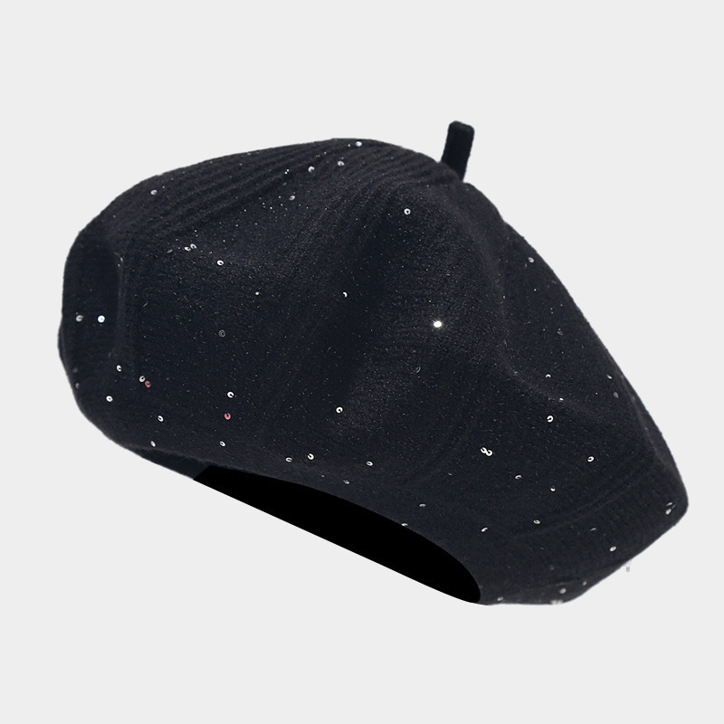 新款秋冬季针织亮片条纹贝雷帽欧美时尚毛线帽女士百搭画家帽子潮