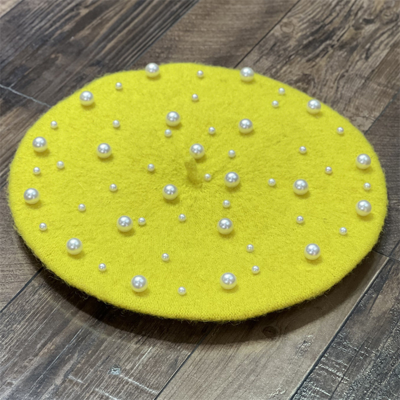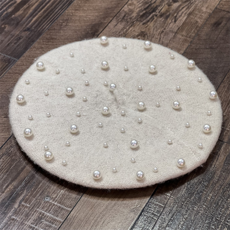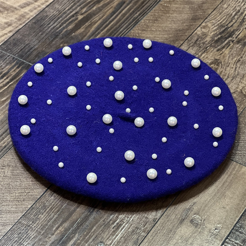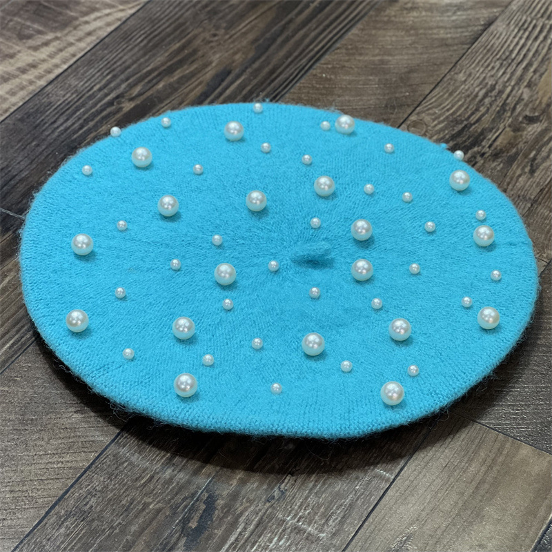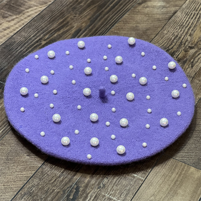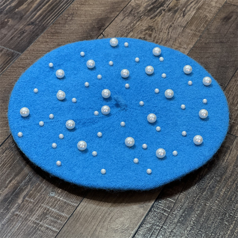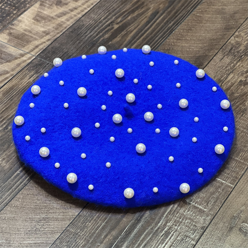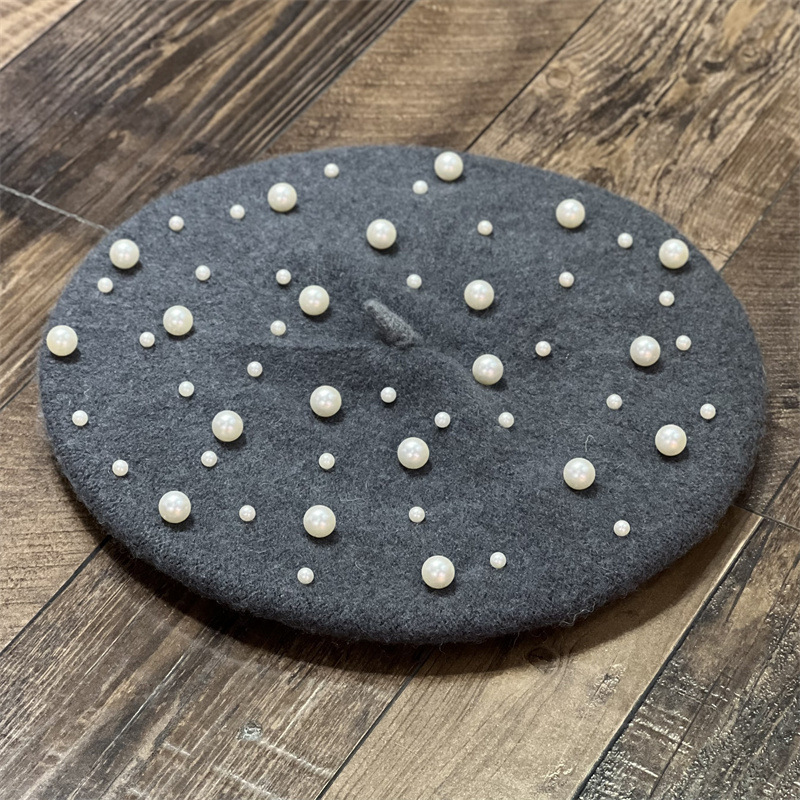 帽子跨境奢华超多珍珠贝雷帽女秋冬羊毛呢画家帽大头围时尚八角帽