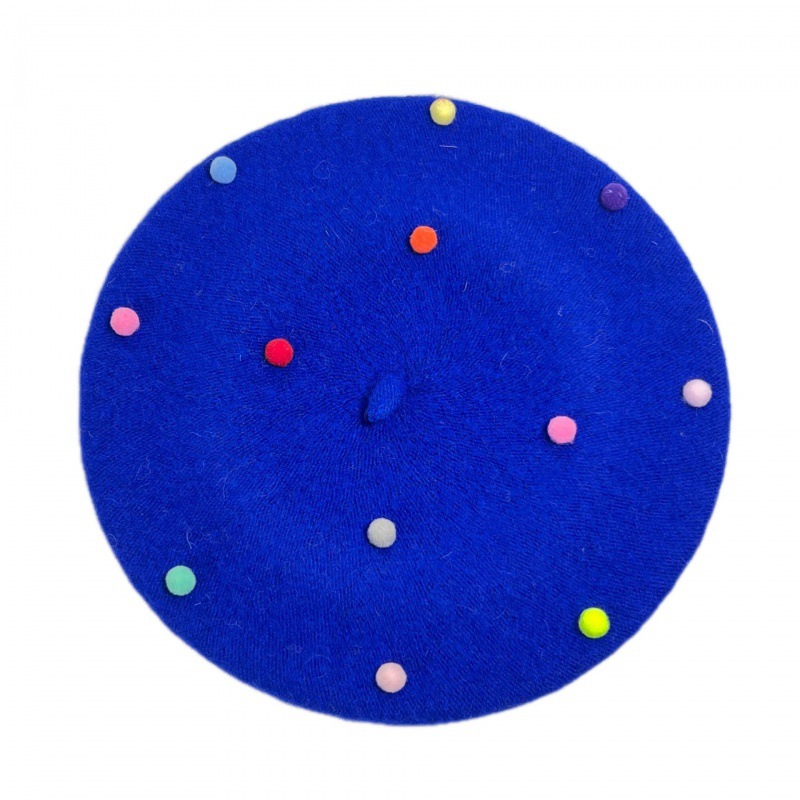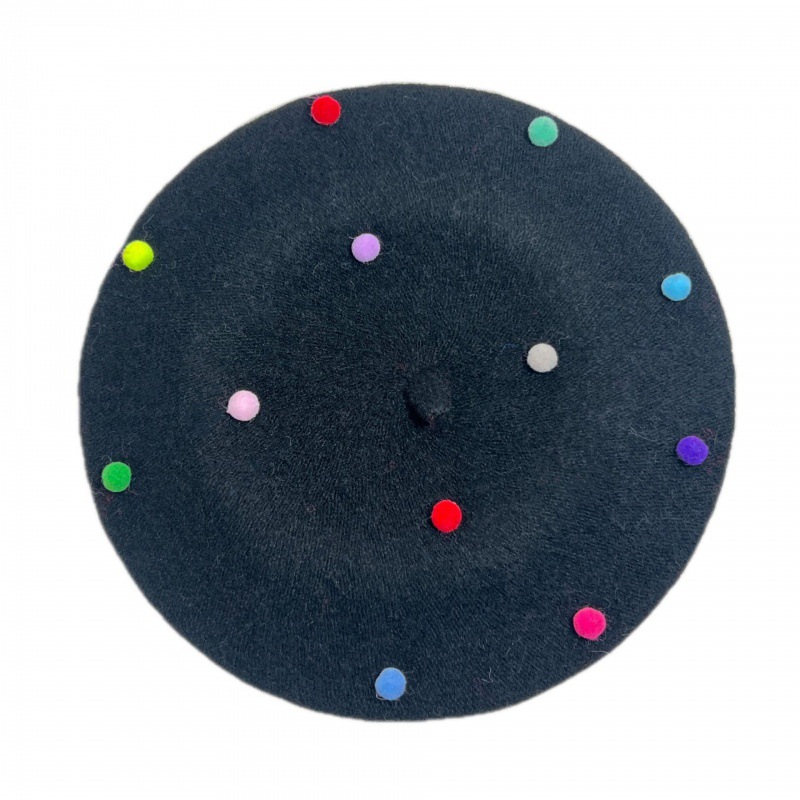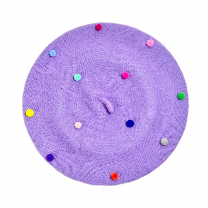 装饰小海绵球儿童贝雷帽秋冬季八角帽男女童宝宝时尚画家针织帽子