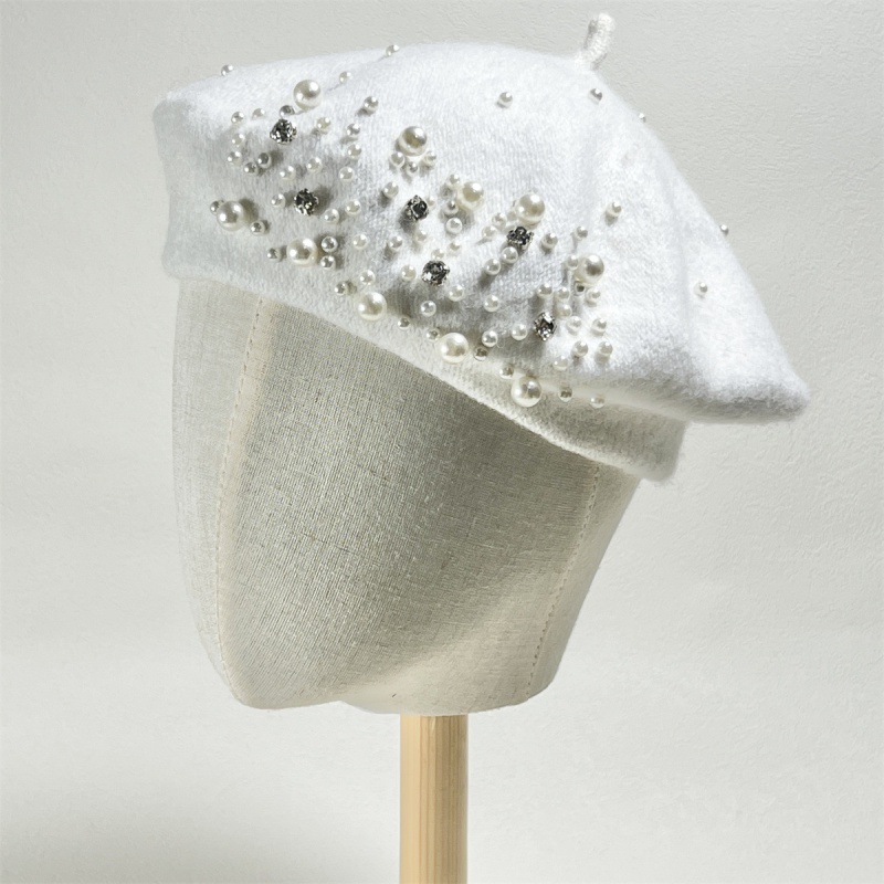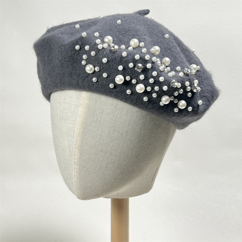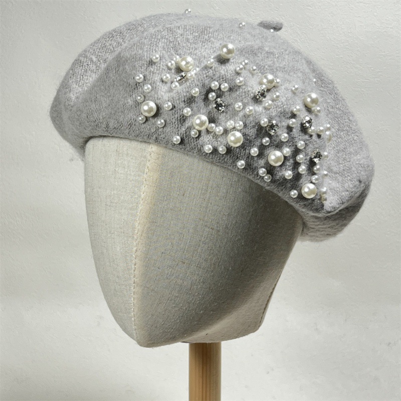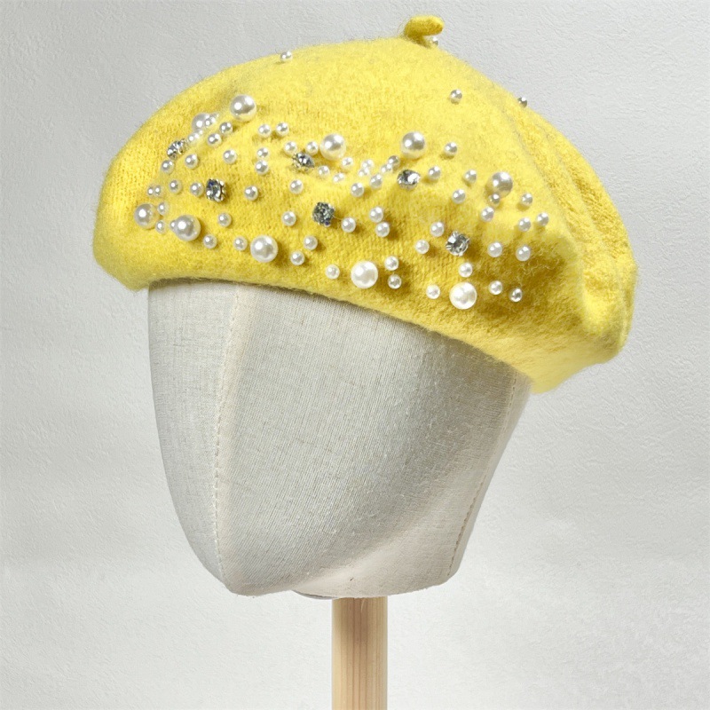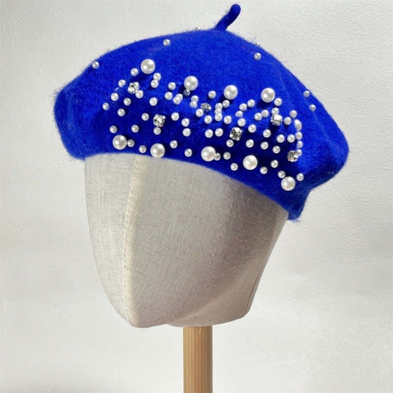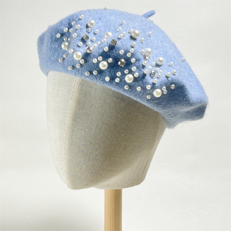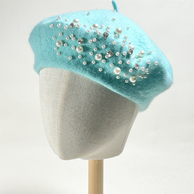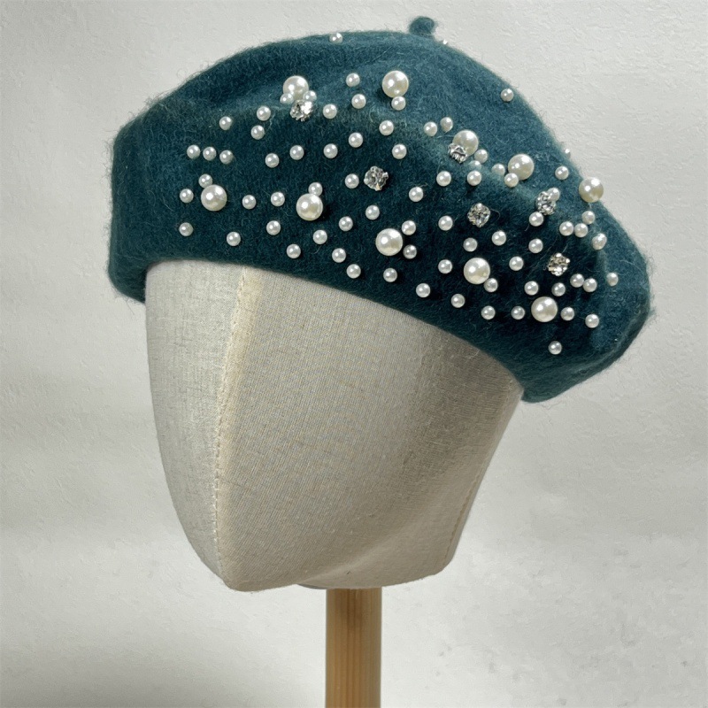 跨境热卖韩版羊毛呢珍珠水钻贝雷帽子女秋冬南瓜帽英伦复古画家帽