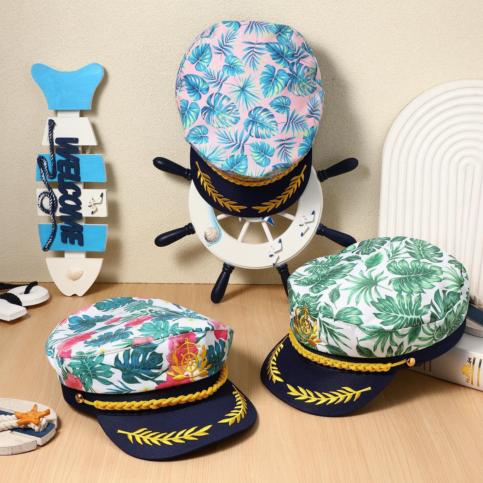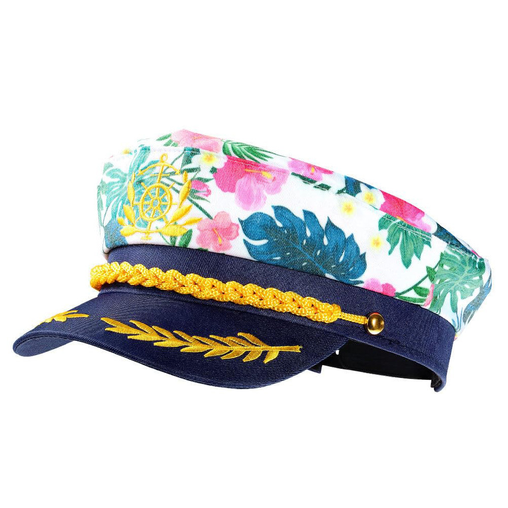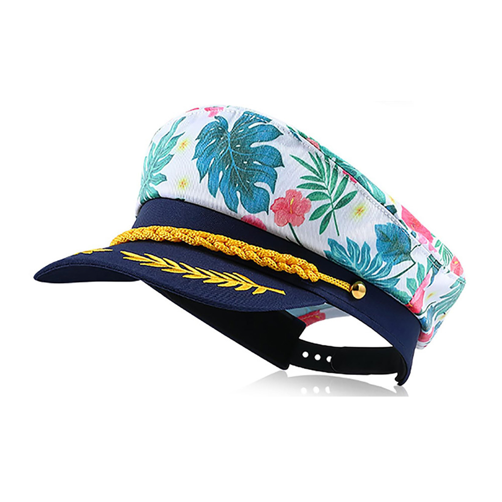 跨境亚马逊可调节绿叶粉色印花刺绣游艇派对狂欢海军水手帽批发