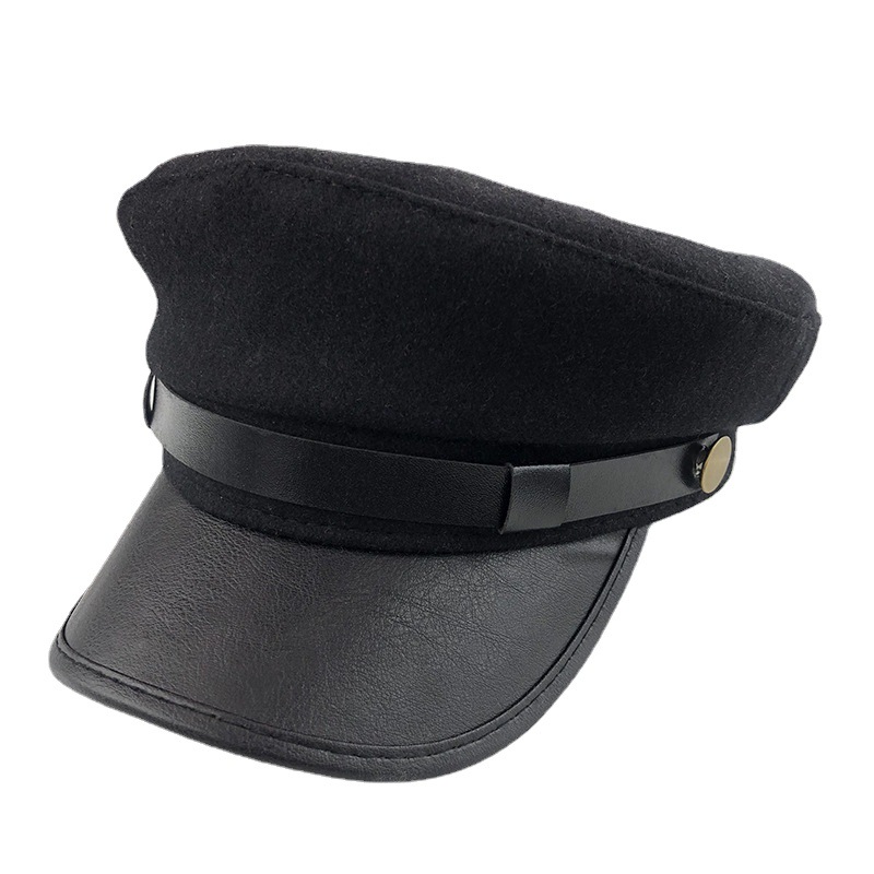 夏季帽子女小香风海军帽黑色中山装平顶帽五四青年中山民国学生帽