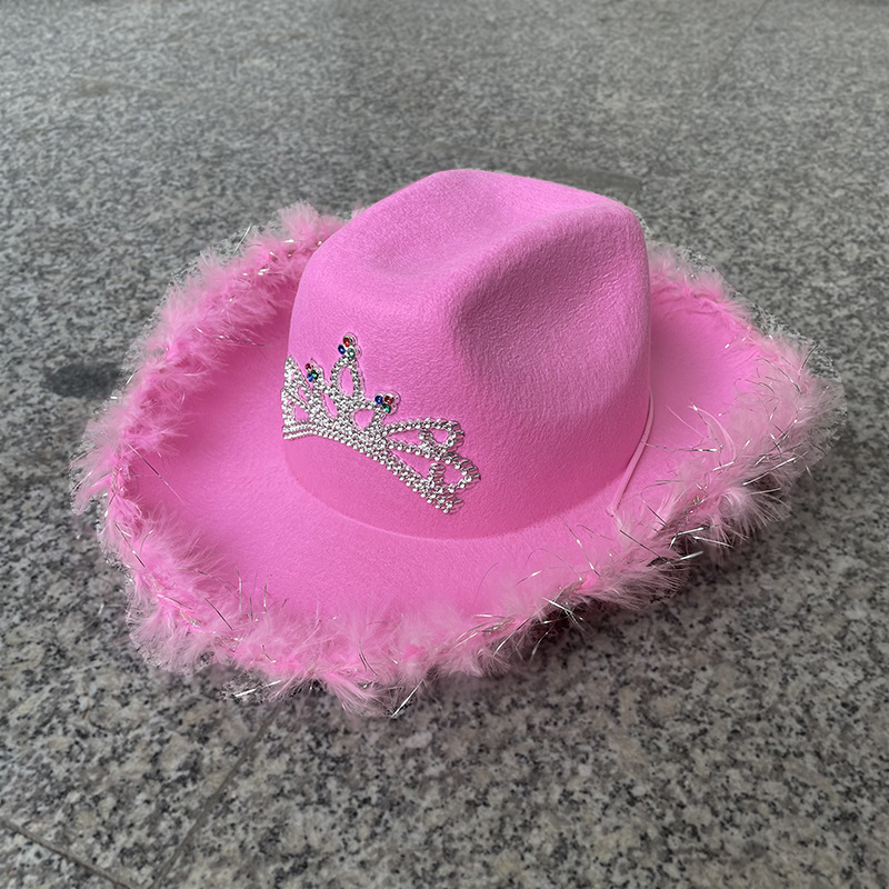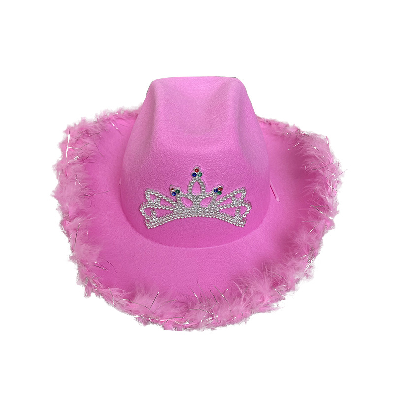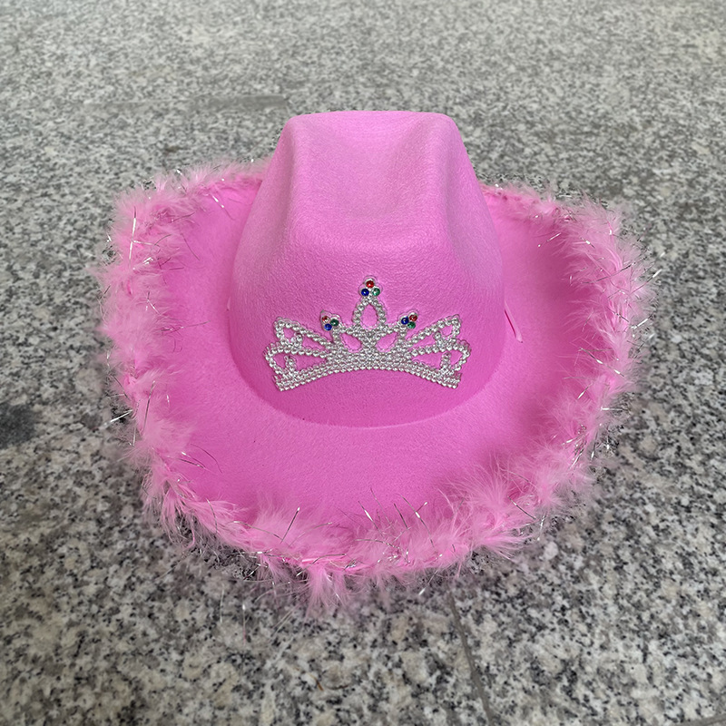 粉色牛仔帽女羽毛大帽檐皇冠西部牛仔帽子夏季女款亚马逊户外遮阳