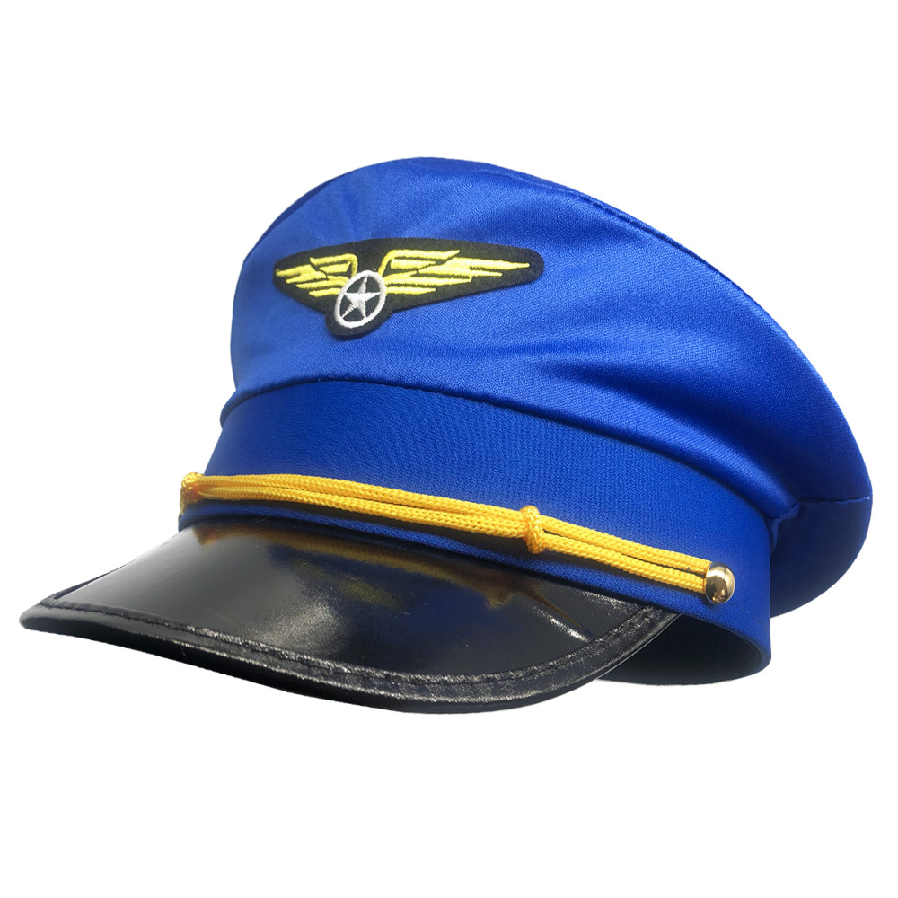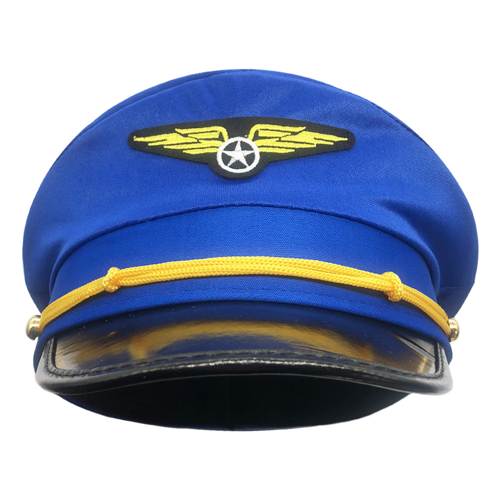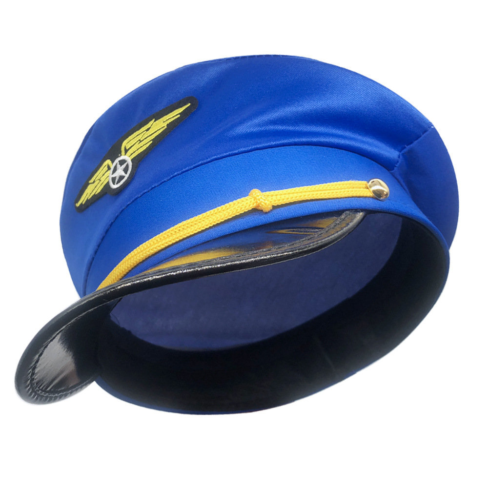 跨境针织飞行帽男服饰配件蓝色航天机长帽舞台道具演出成人航空帽