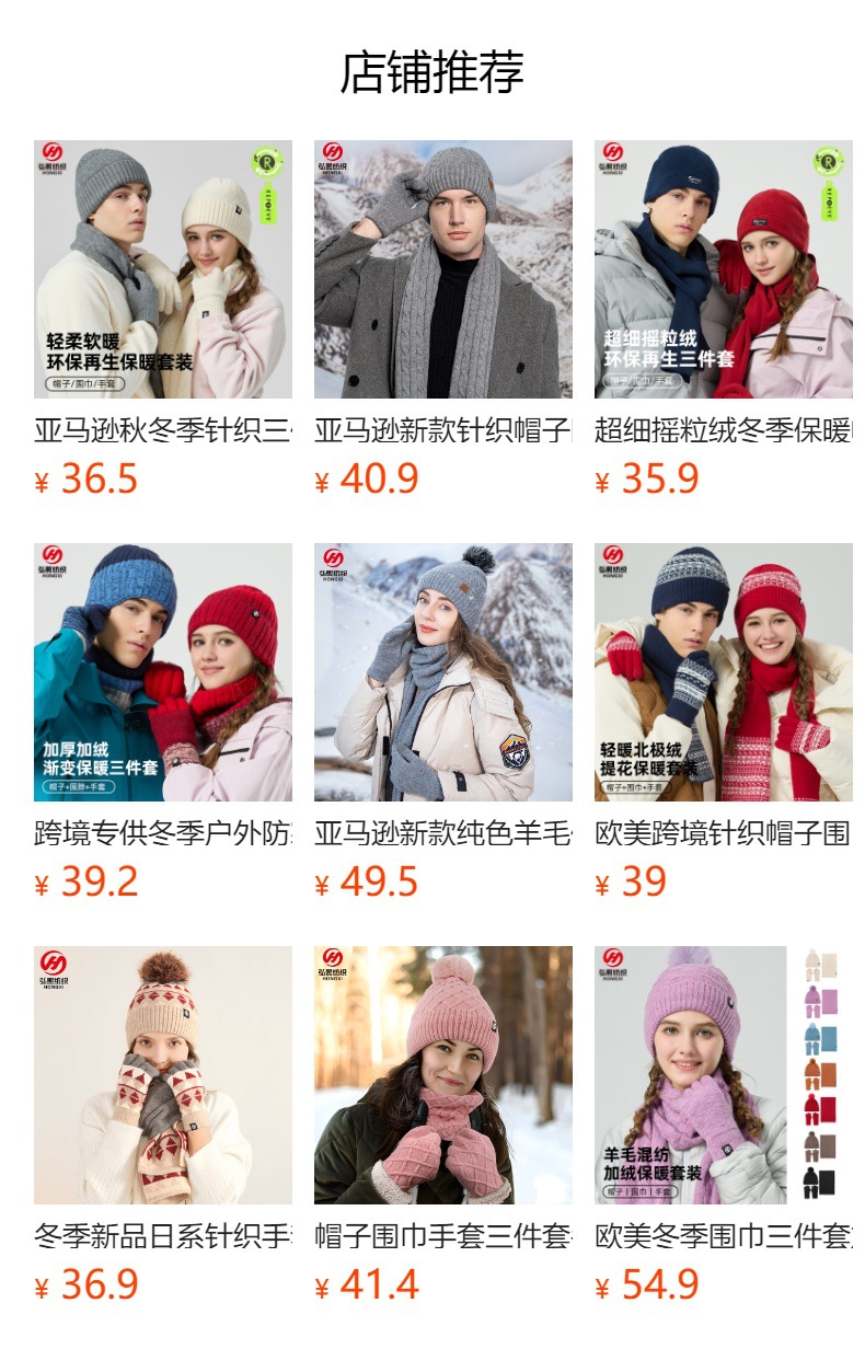亚马逊冬季保暖毛线帽子围巾手套三件套装防风成人针织帽子三件套