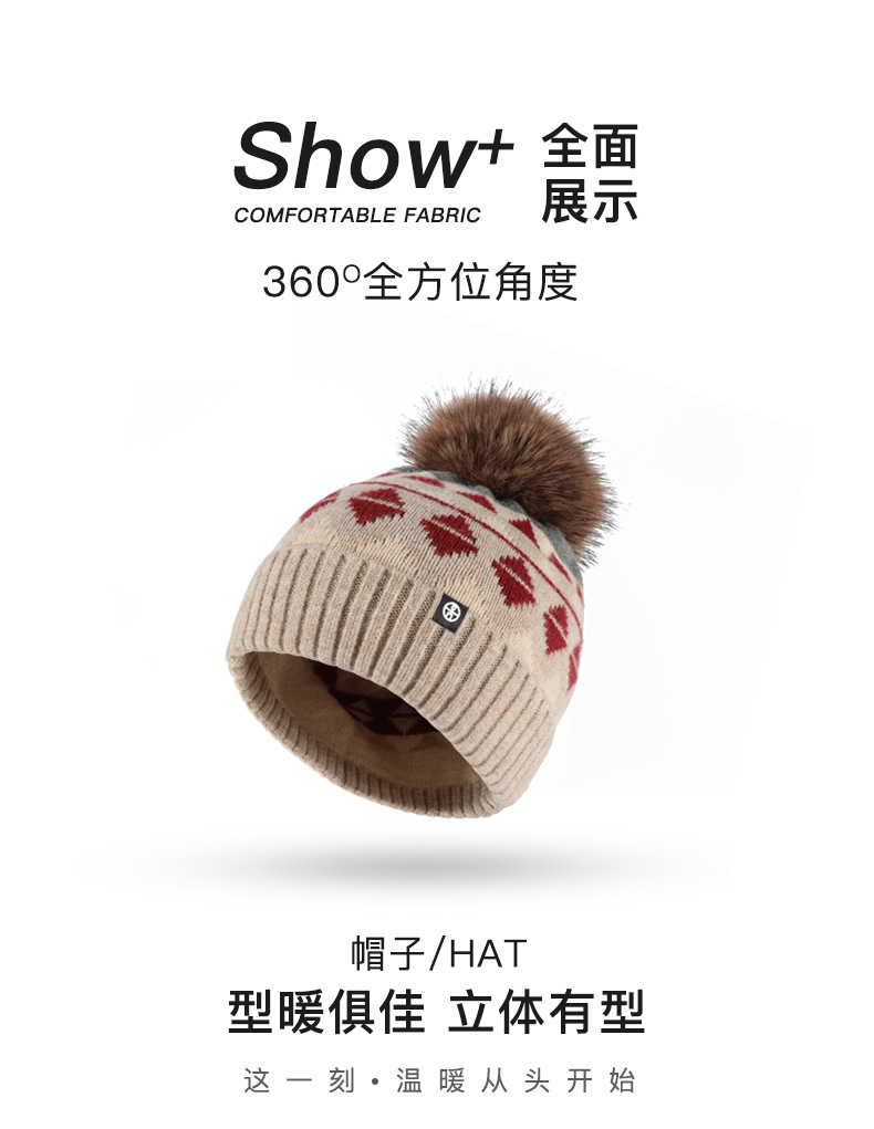 冬季新品日系针织手套围巾帽子三件套羊毛保暖防寒毛球围巾三件套