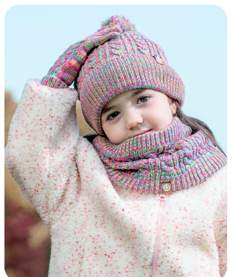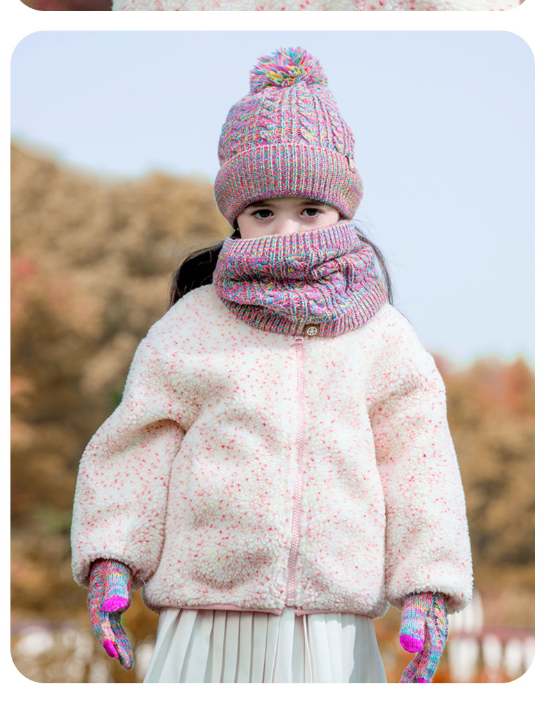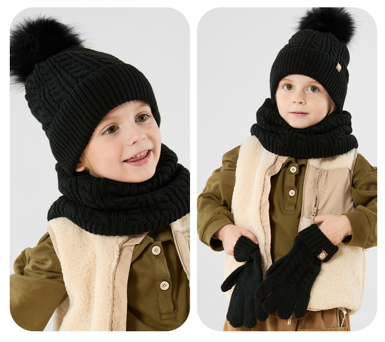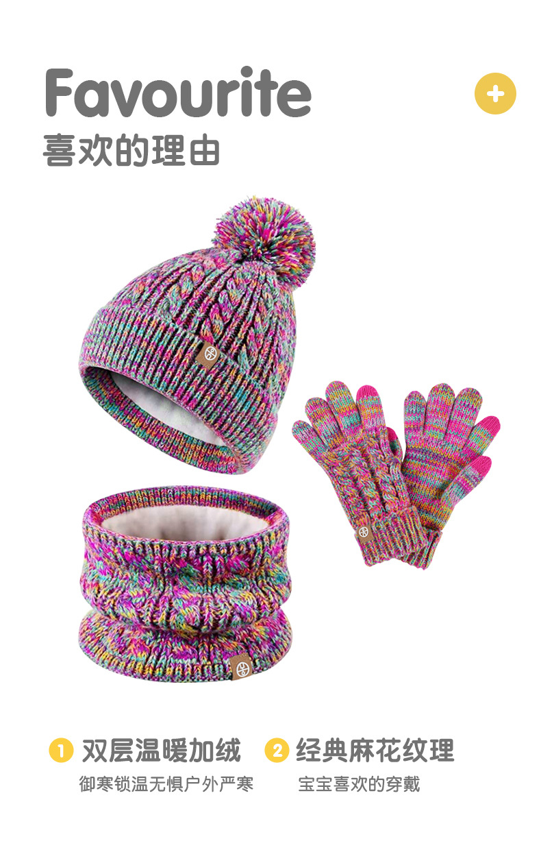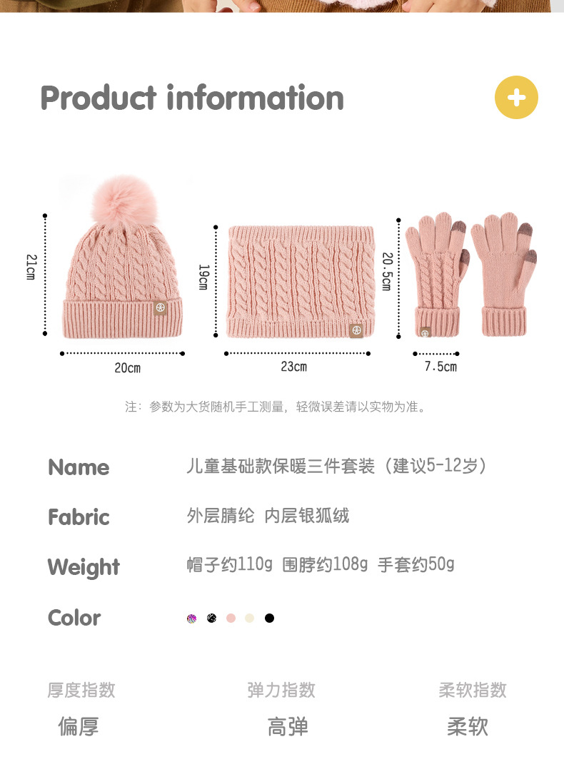亚马逊中大童毛球帽子围巾手套三件套件冬季儿童加绒保暖针织套装