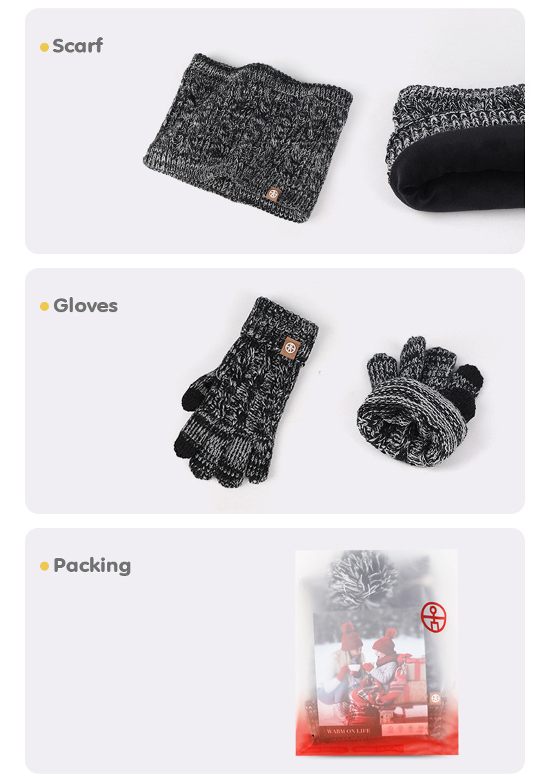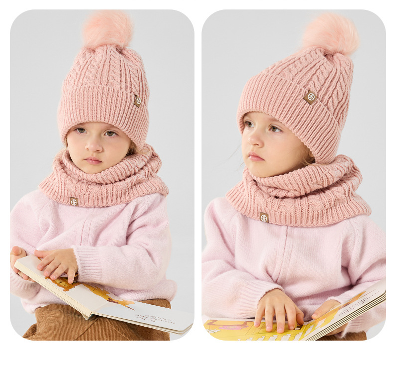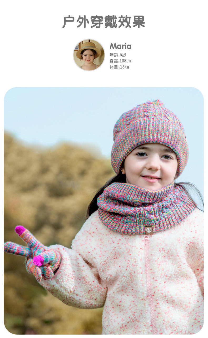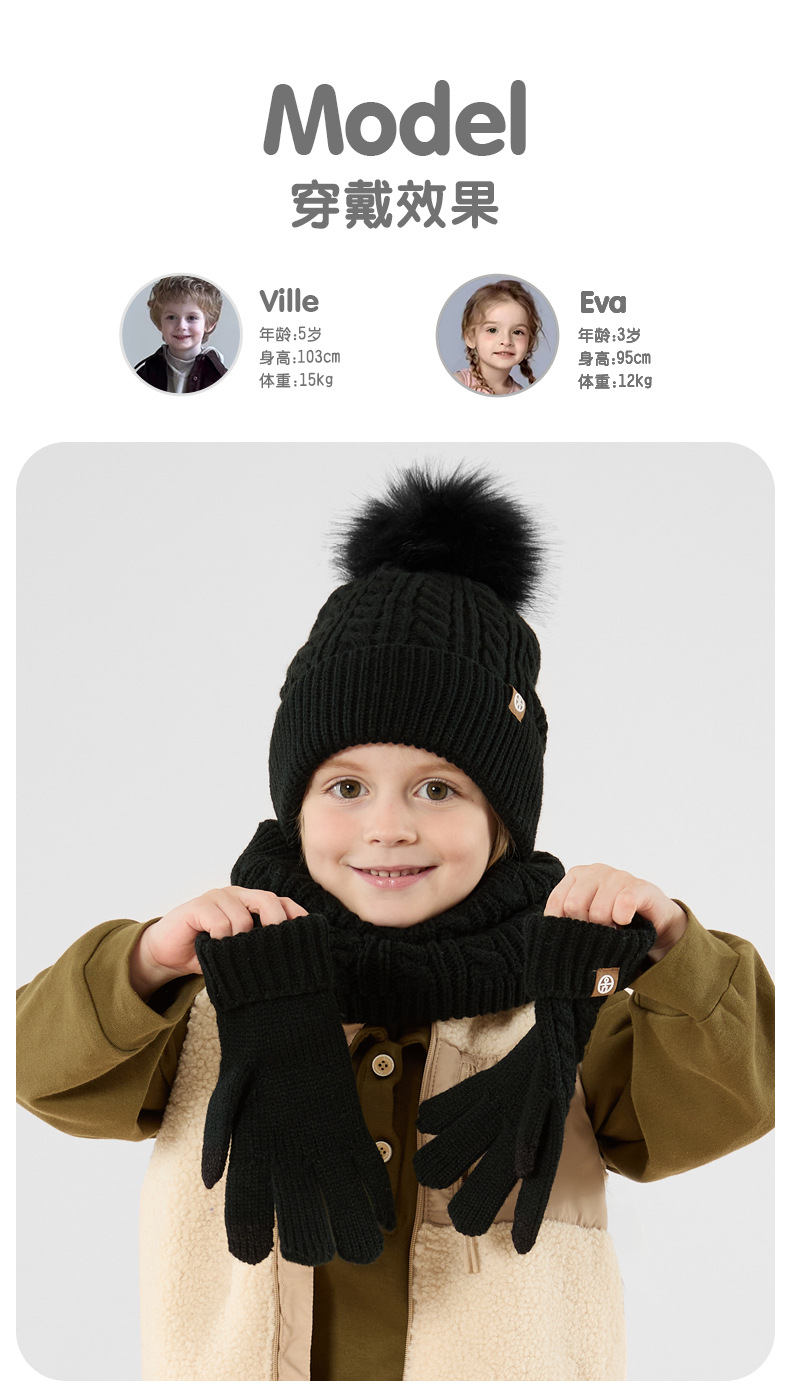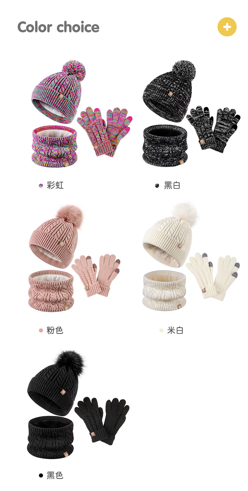 亚马逊中大童毛球帽子围巾手套三件套件冬季儿童加绒保暖针织套装