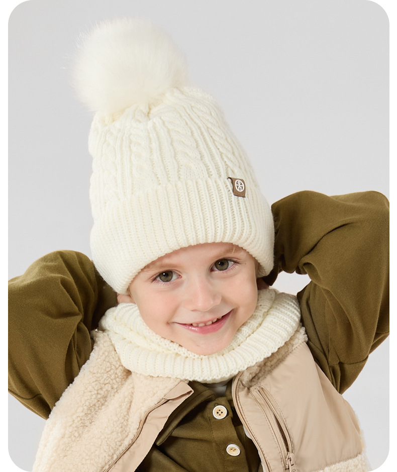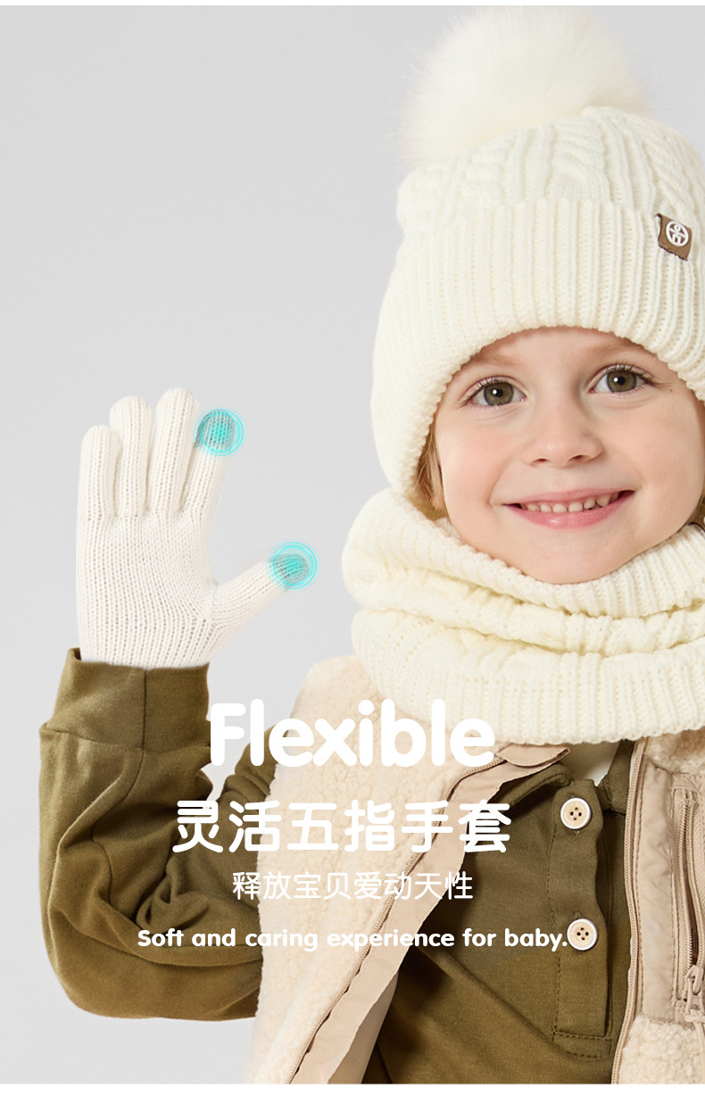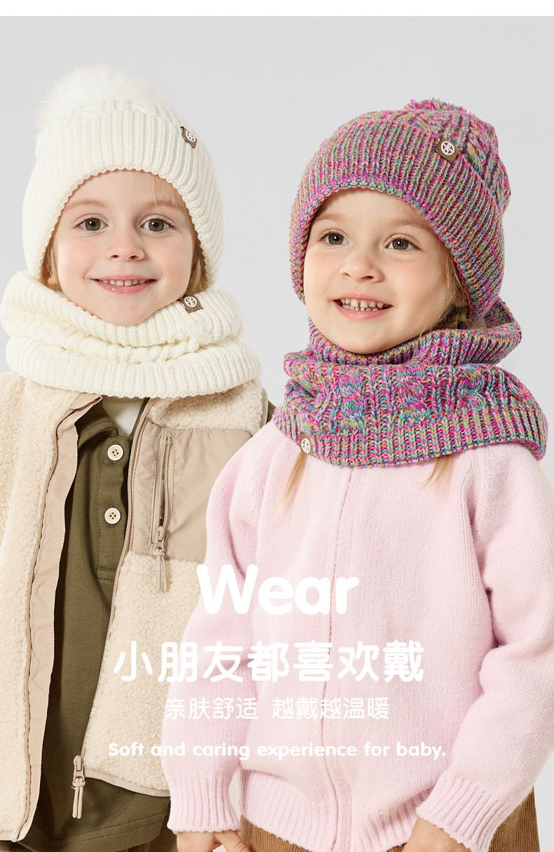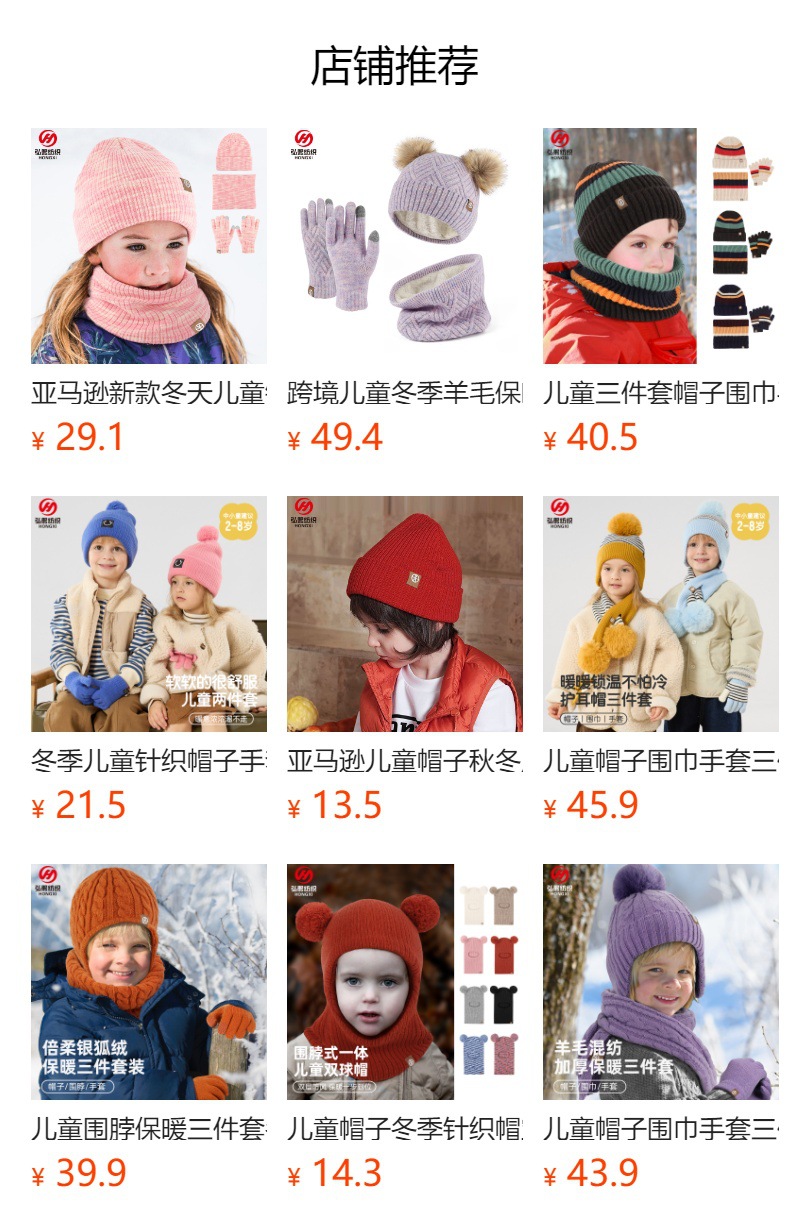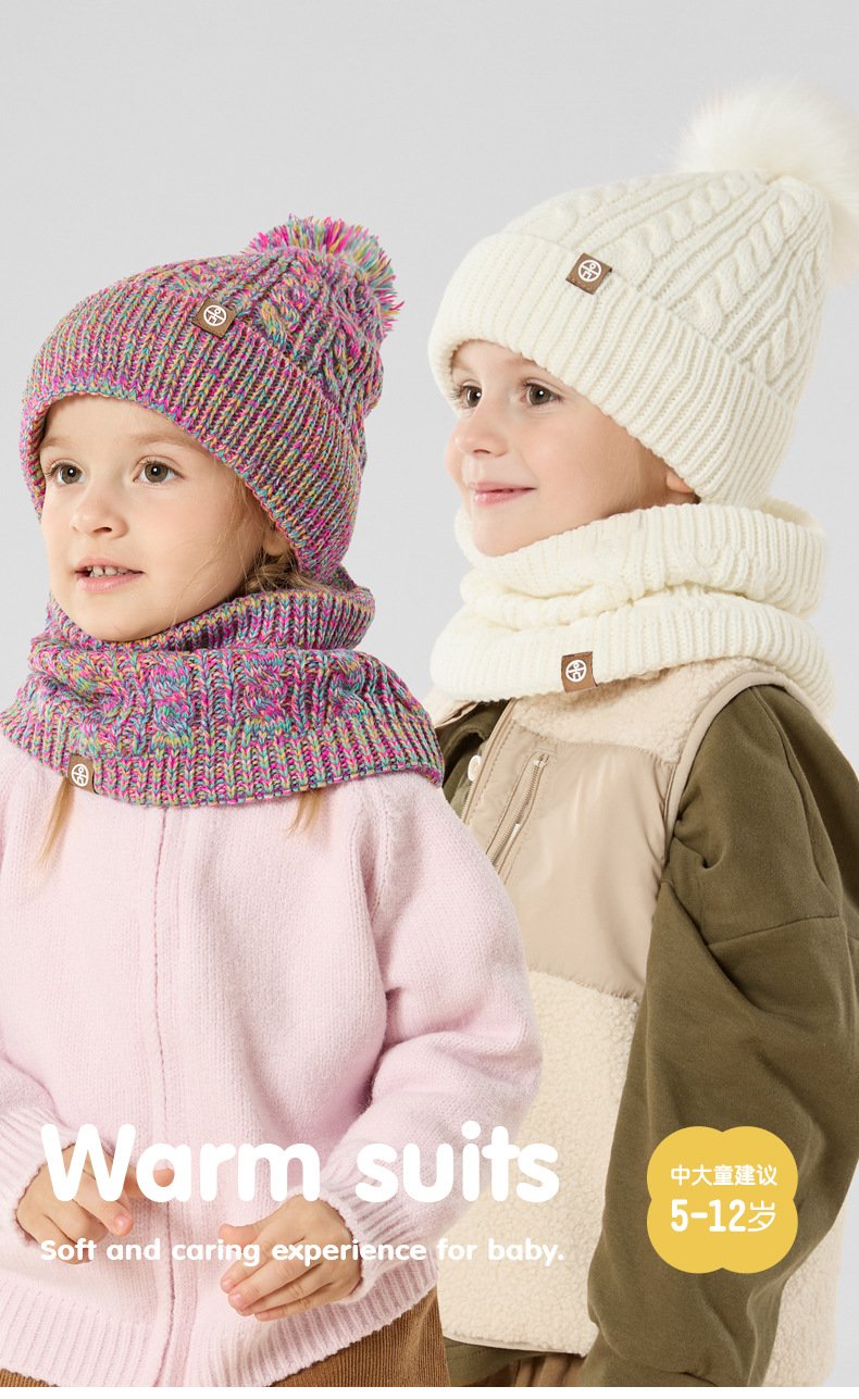 亚马逊中大童毛球帽子围巾手套三件套件冬季儿童加绒保暖针织套装