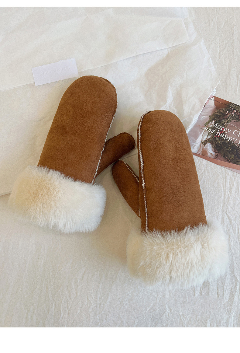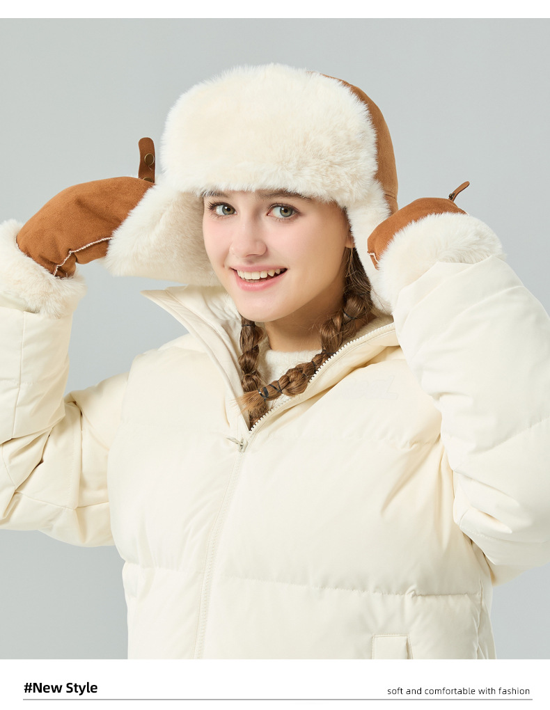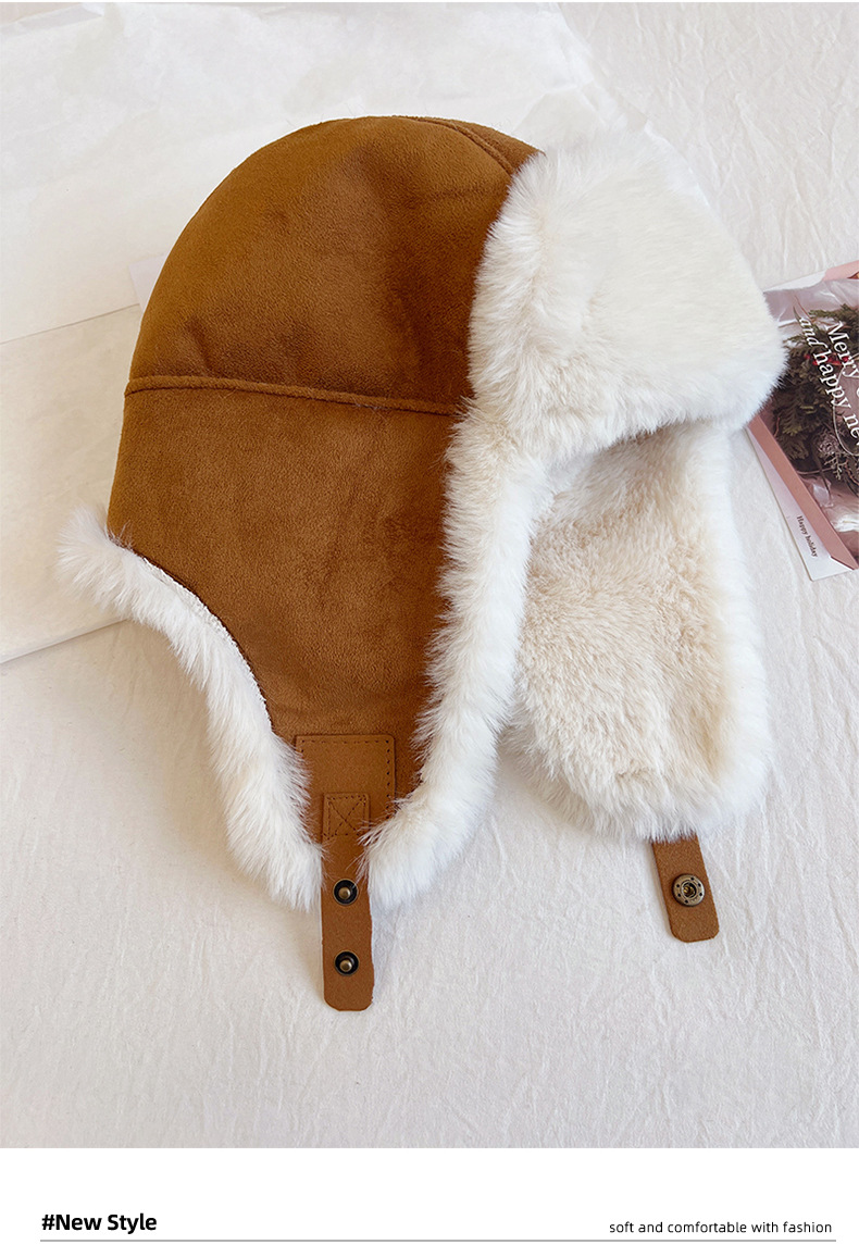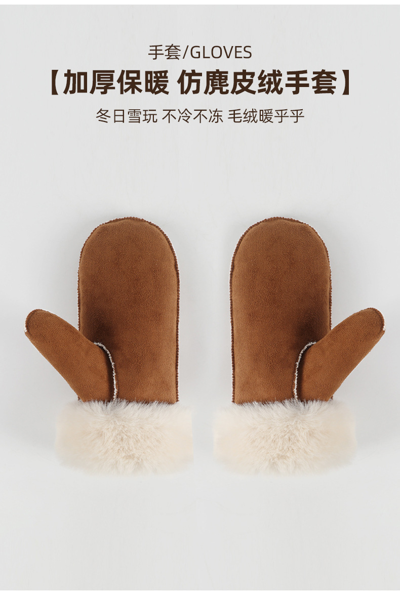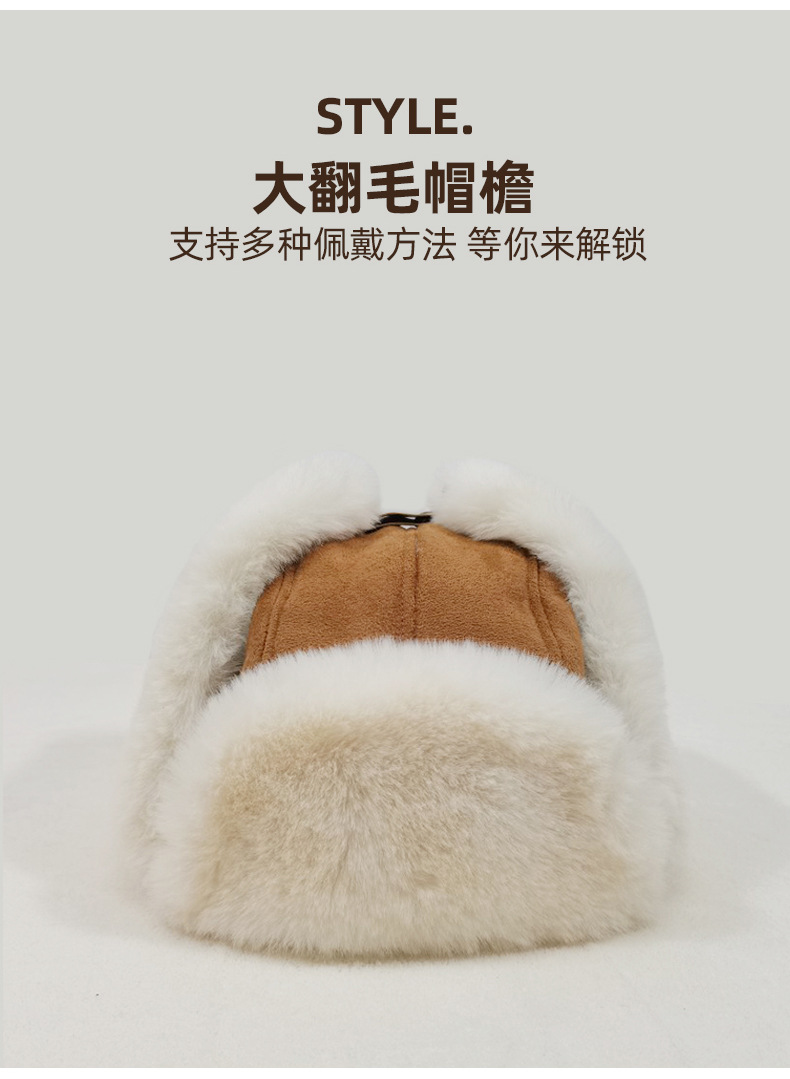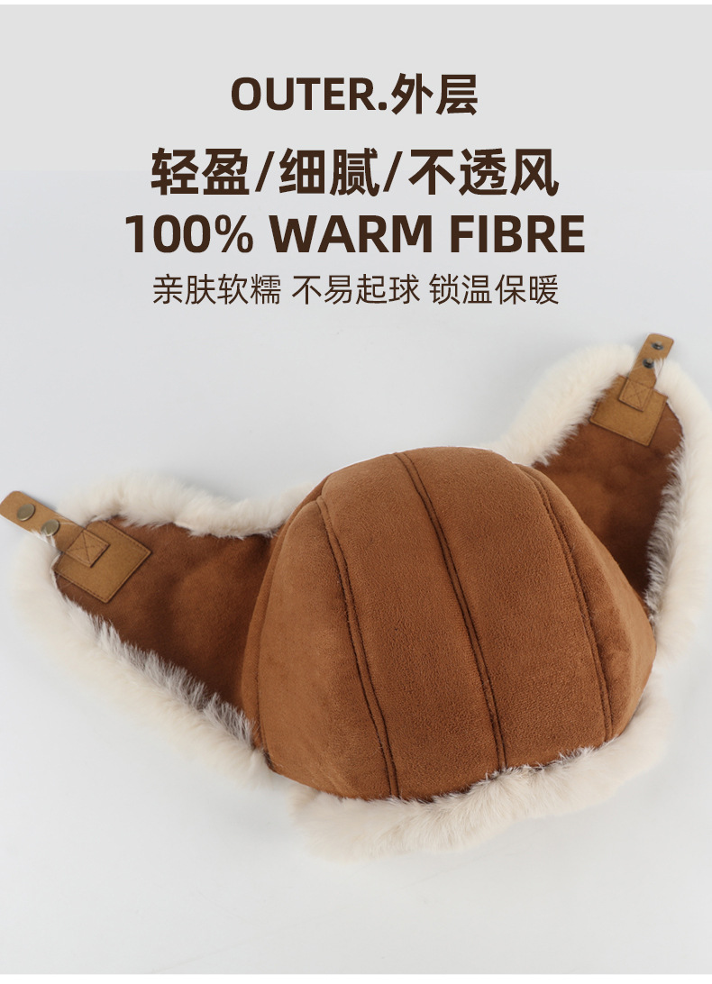 秋冬麂皮绒雷锋帽毛绒加厚护耳帽保暖滑雪帽兔毛手套户外防寒套装