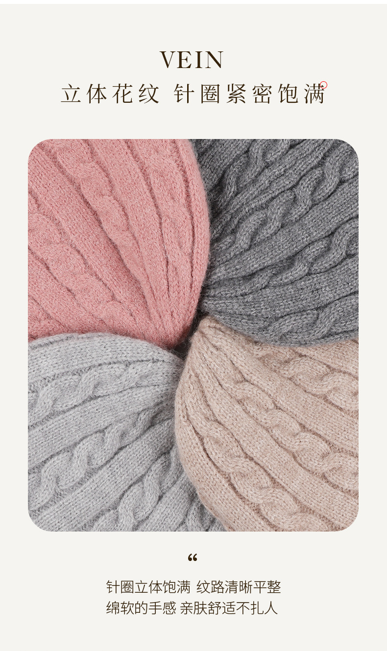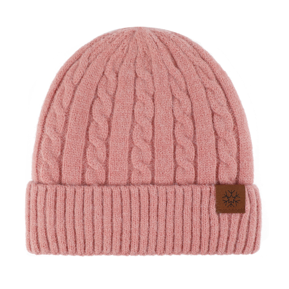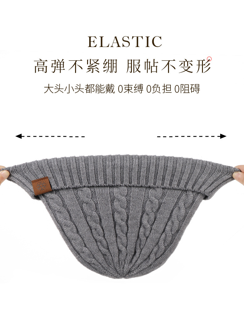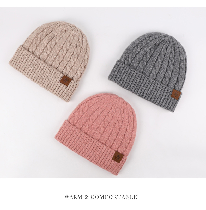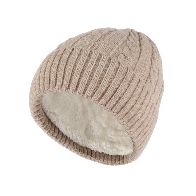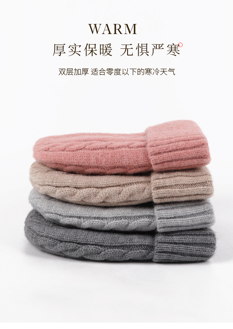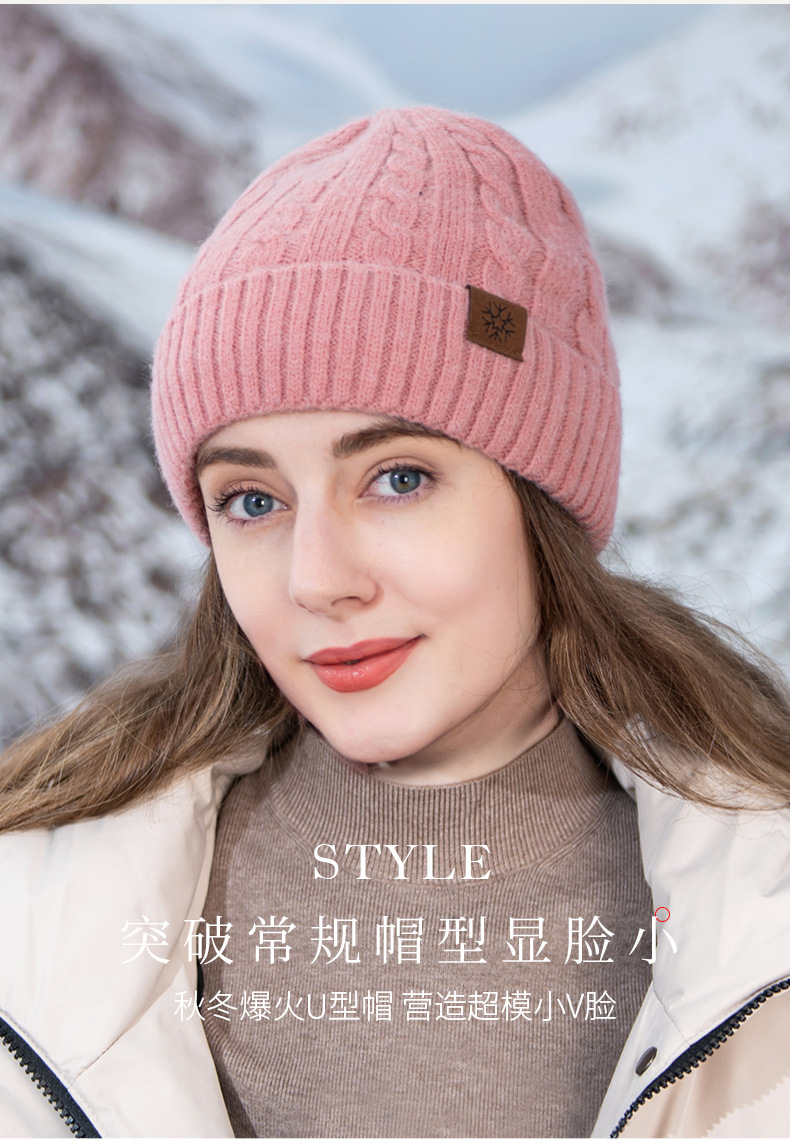 冬季帽子女麻花纹针织帽保暖纯色百搭防寒护耳加绒加厚翻边毛线帽