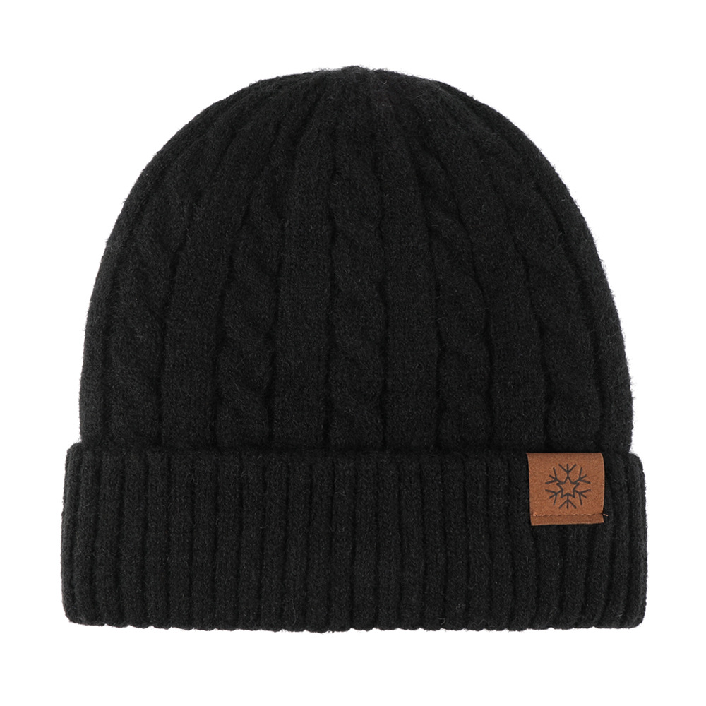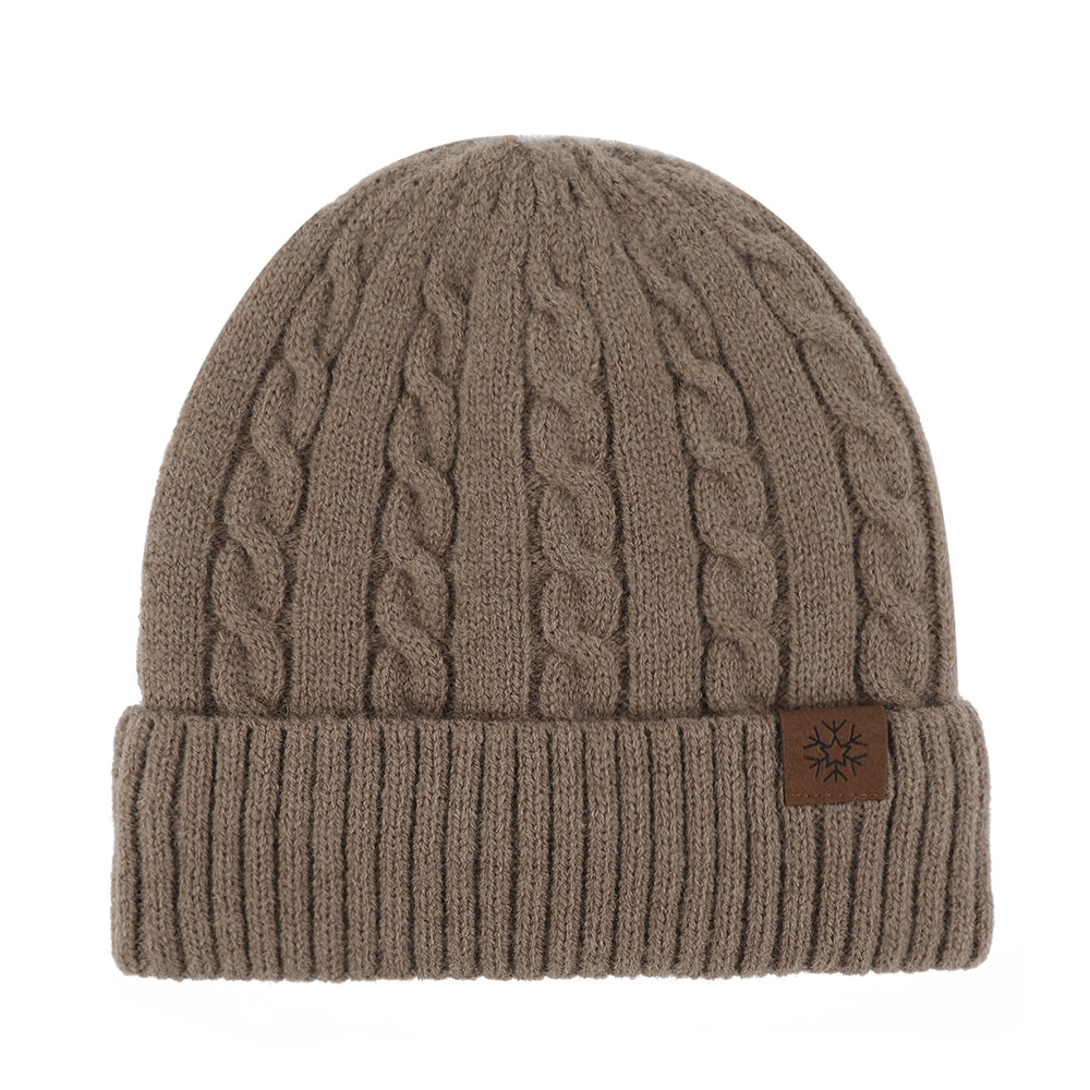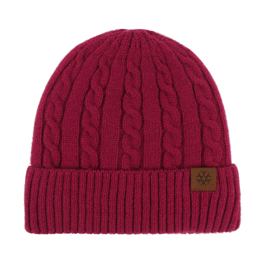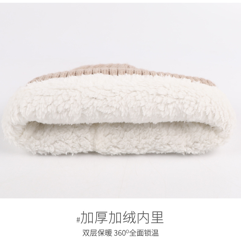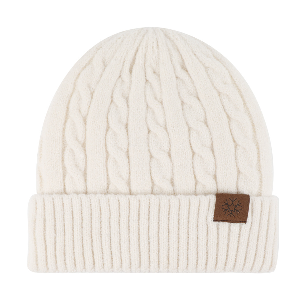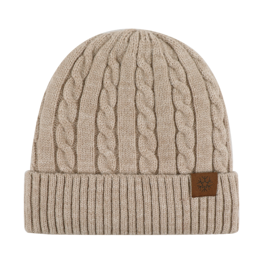 冬季帽子女麻花纹针织帽保暖纯色百搭防寒护耳加绒加厚翻边毛线帽