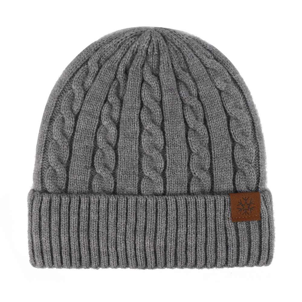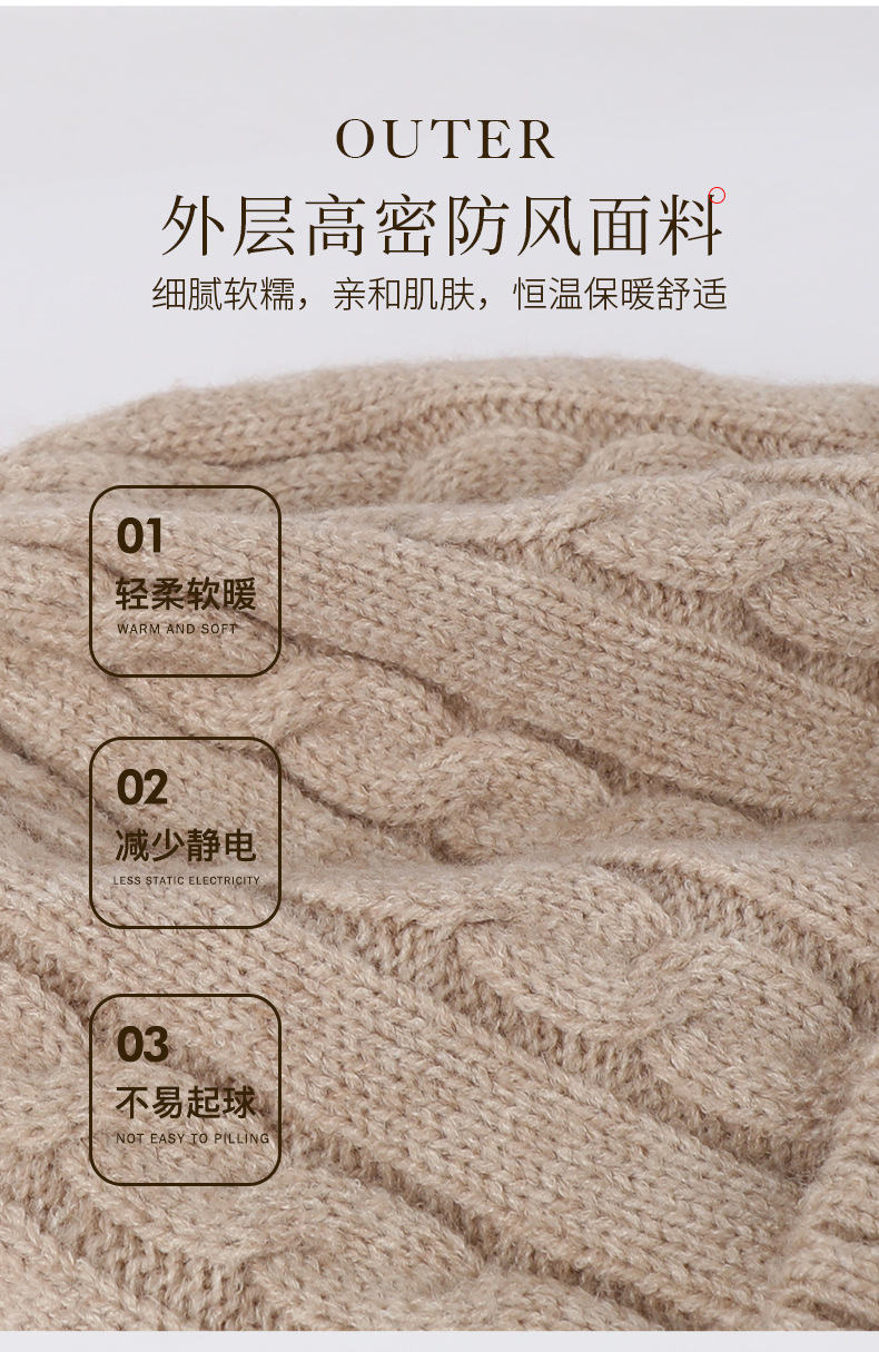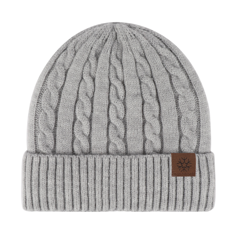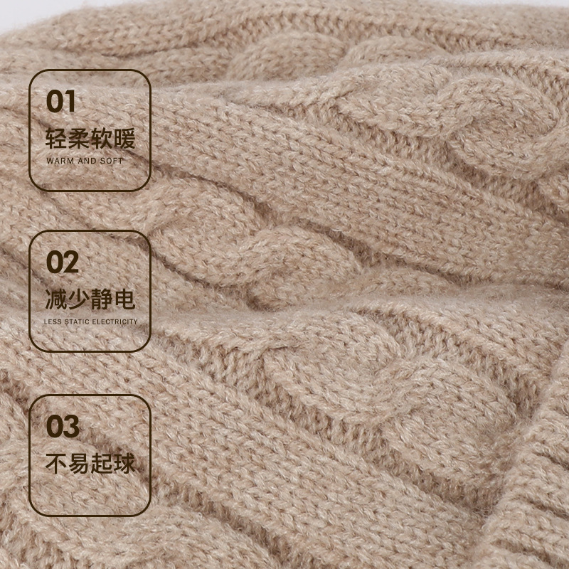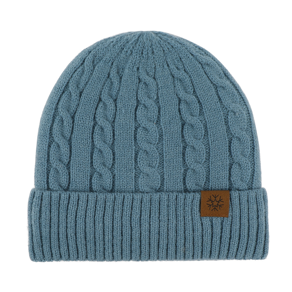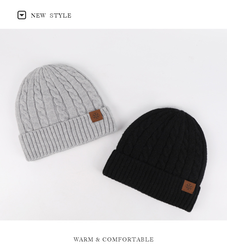 冬季帽子女麻花纹针织帽保暖纯色百搭防寒护耳加绒加厚翻边毛线帽