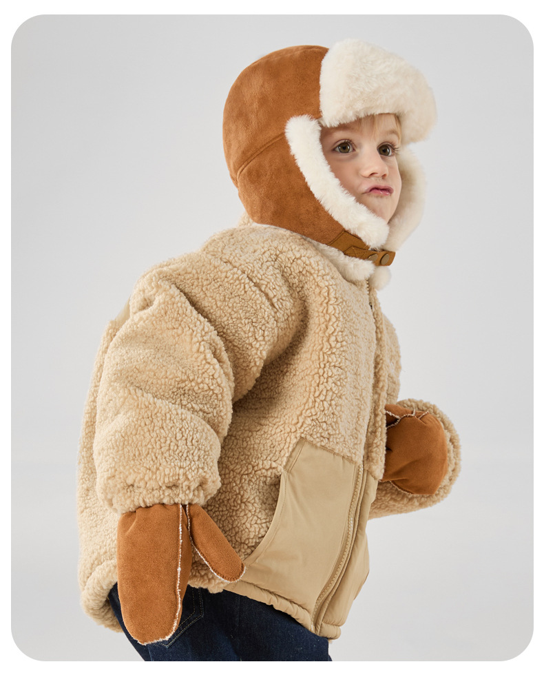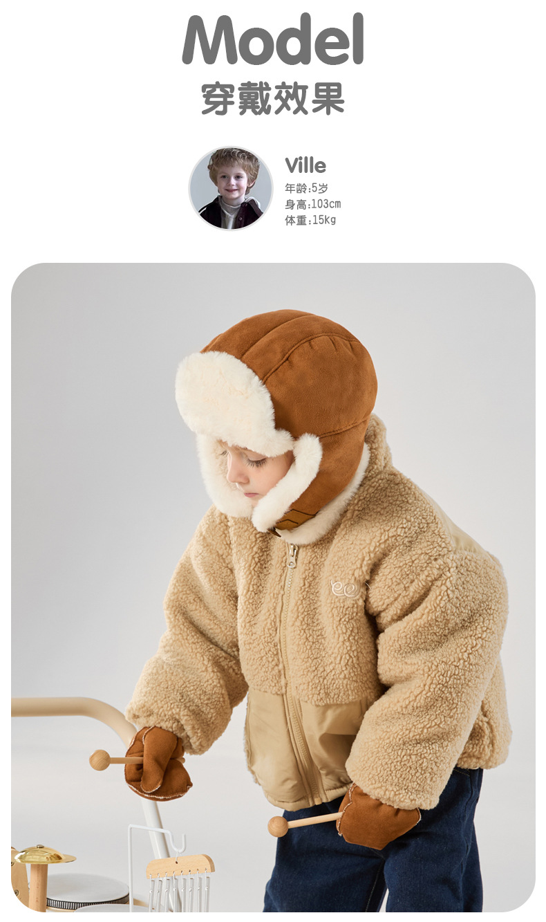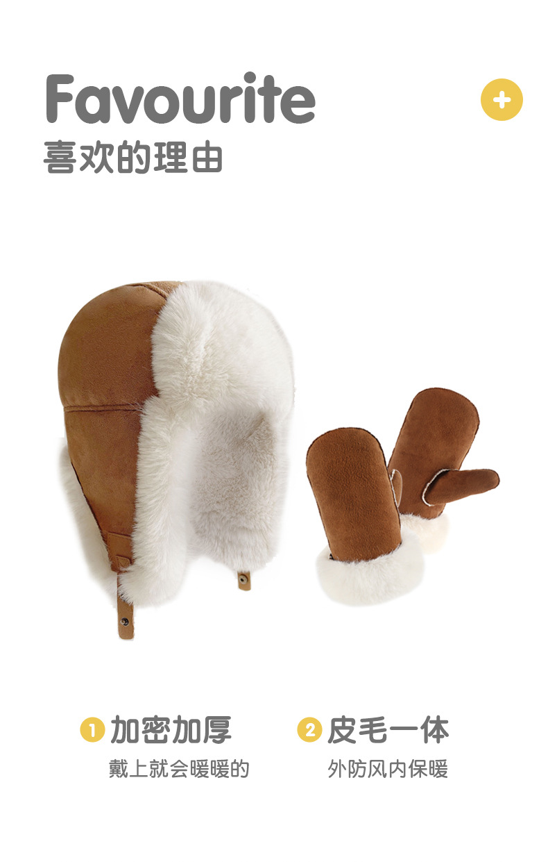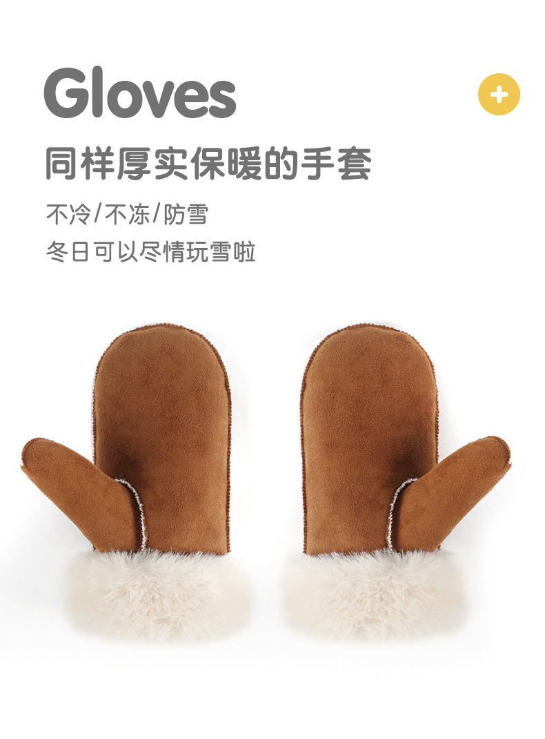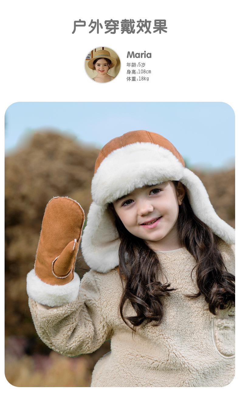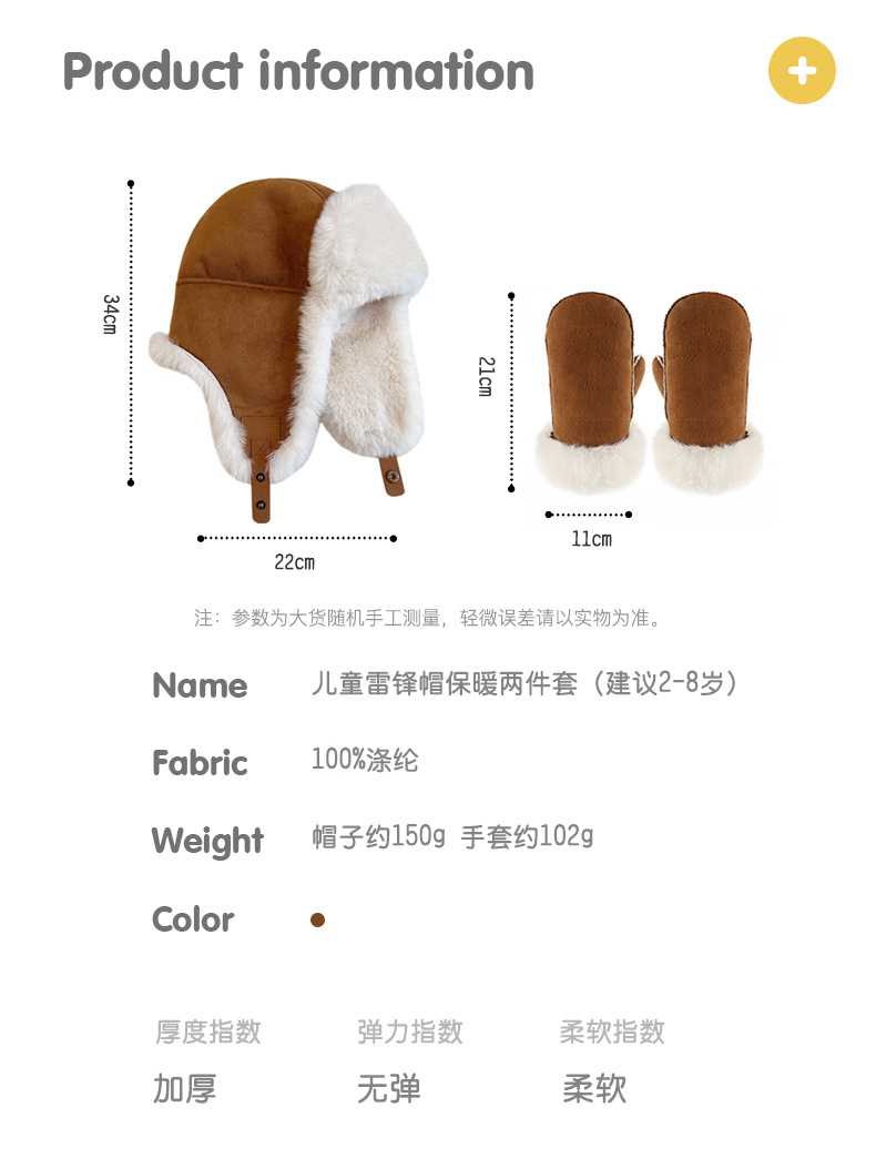 冬季儿童雷锋帽子手套两件套装毛绒加厚防风护耳帽保暖骑行滑雪帽