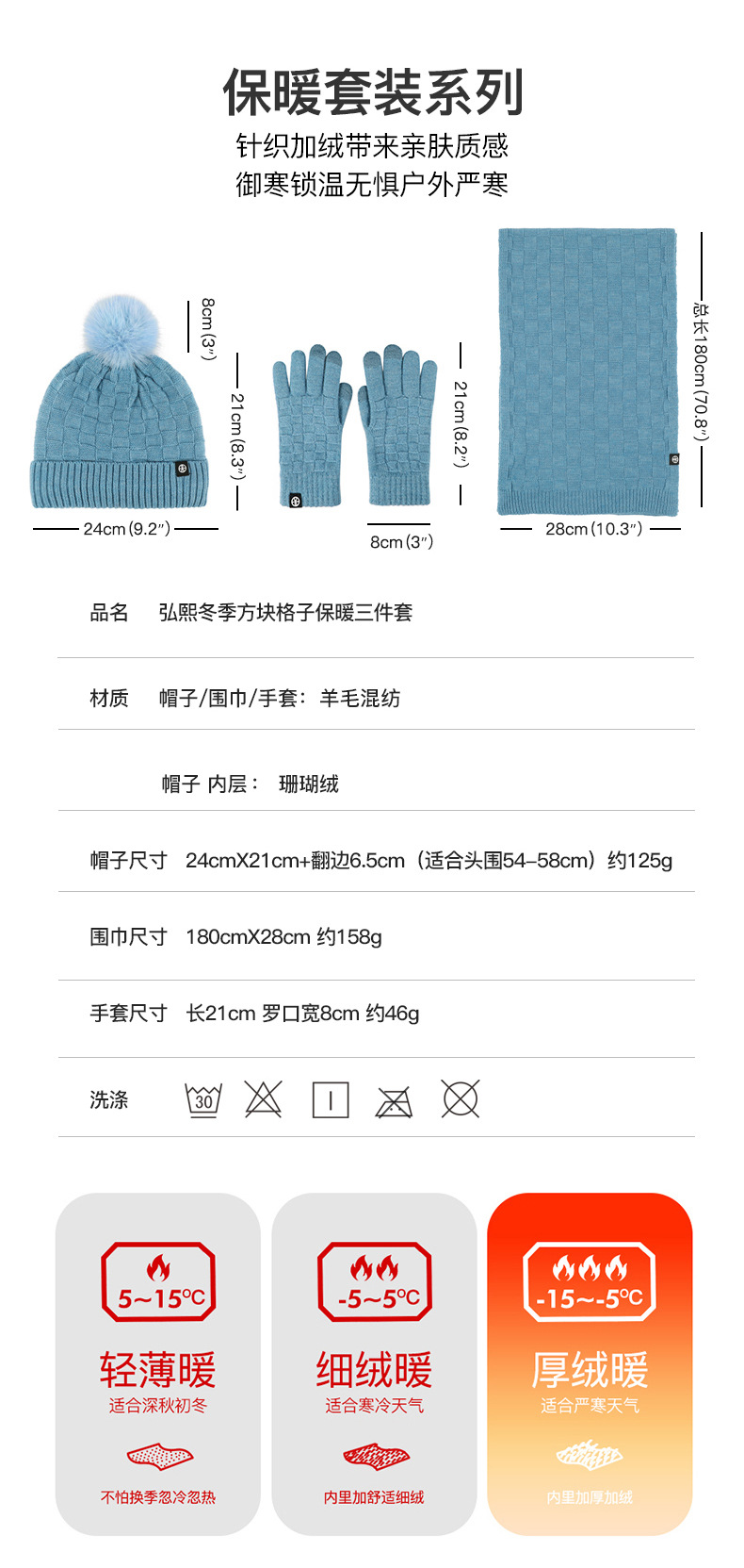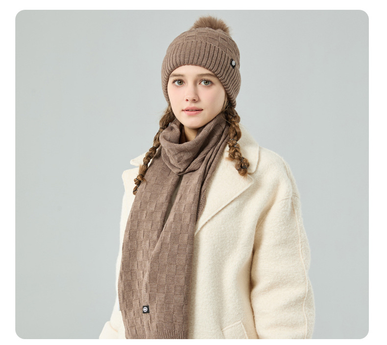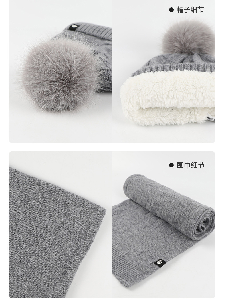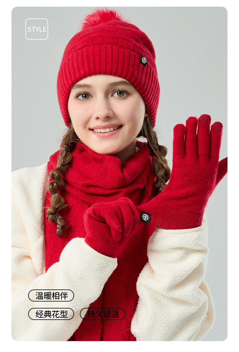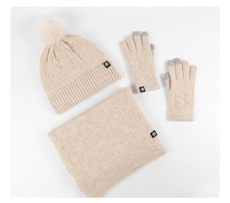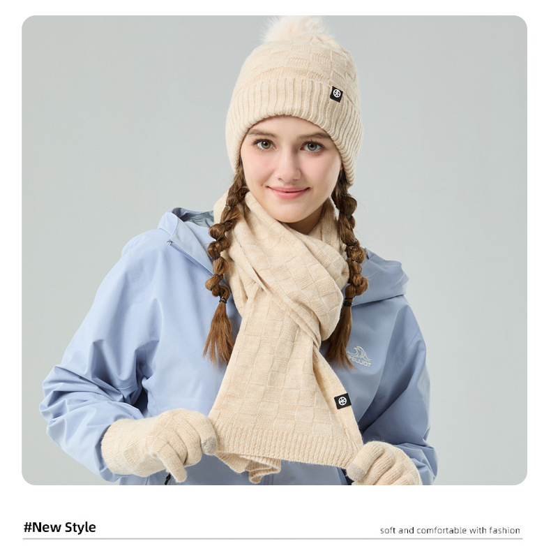 欧美冬季围巾三件套加绒户外保暖毛球针织帽子围巾手套三件套装
