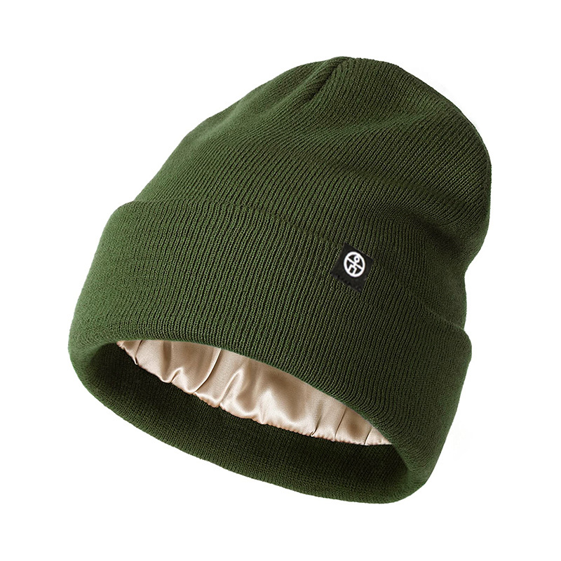 亚马逊爆款针织帽子女冬季户外保暖套头护耳帽男丝绸衬里翻边冷帽