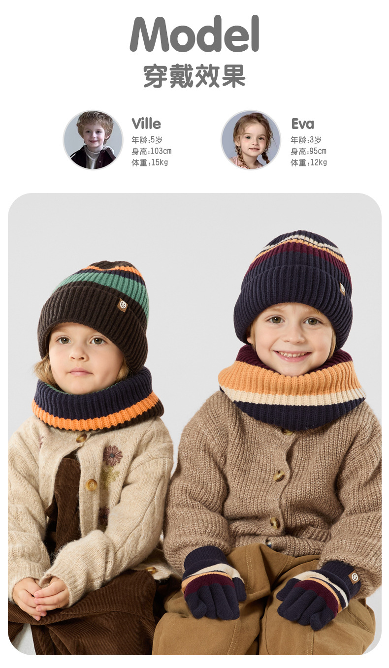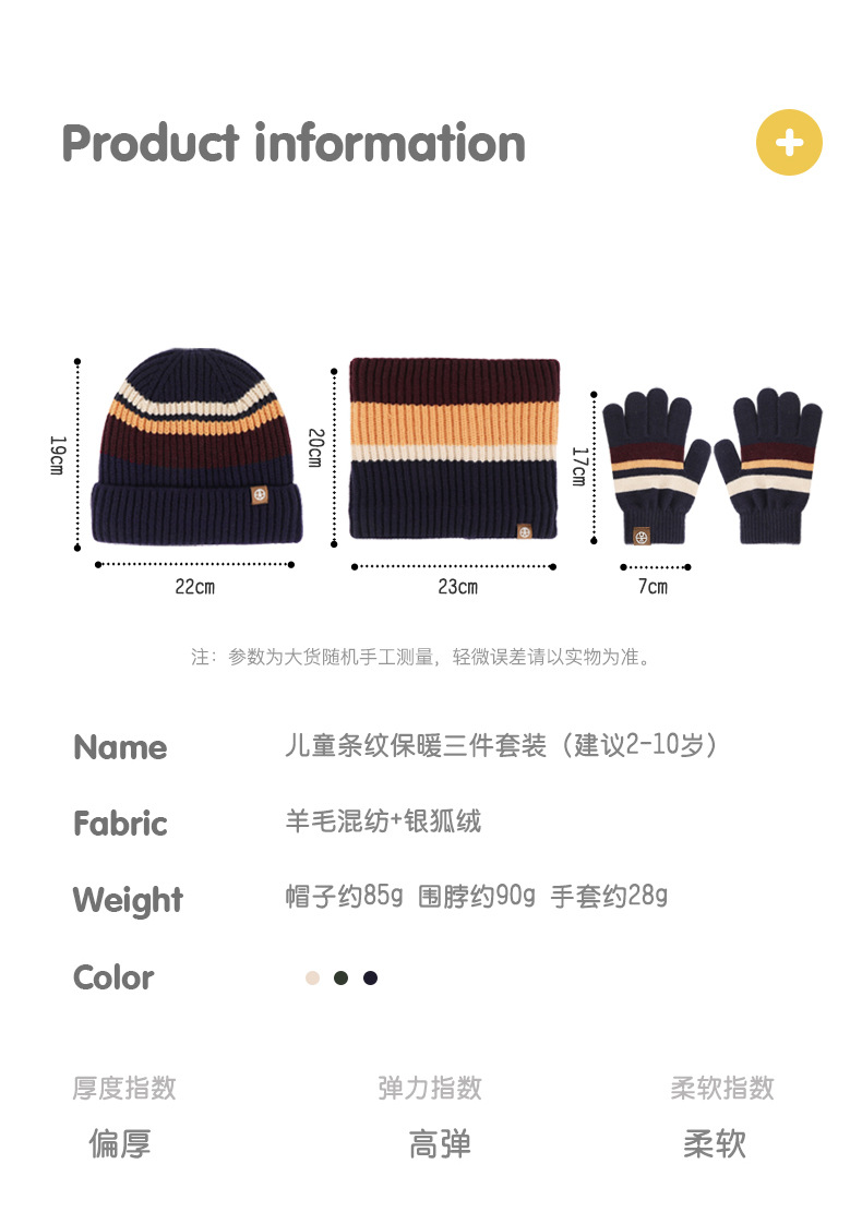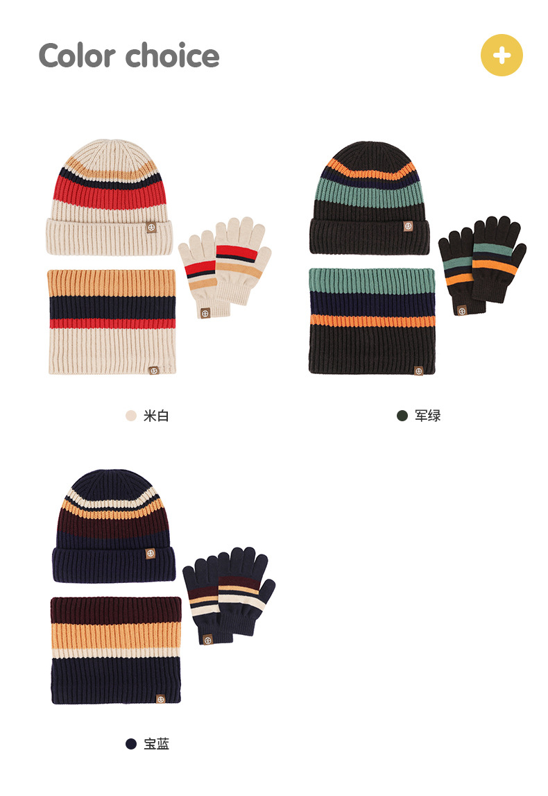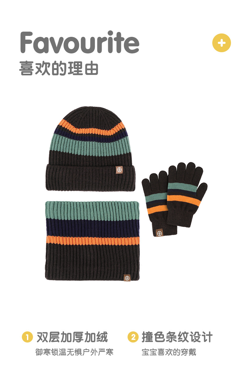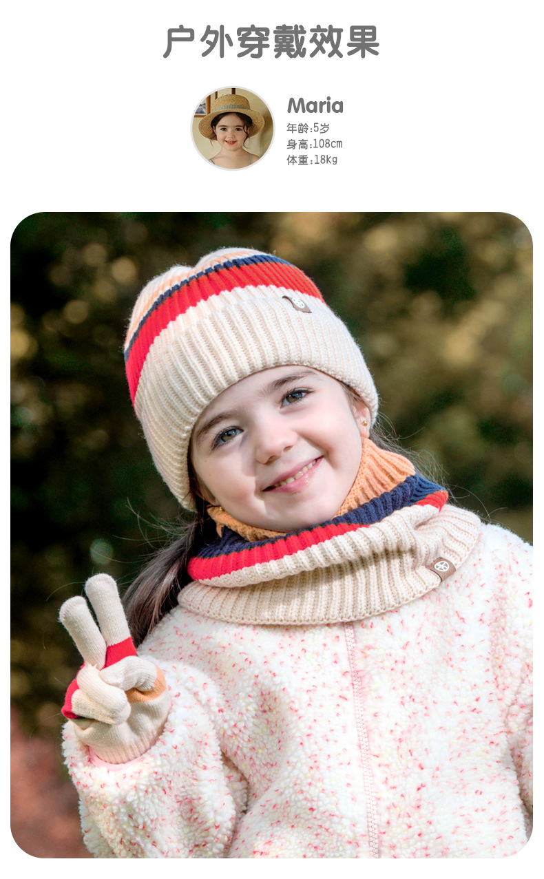 儿童三件套帽子围巾手套秋冬季宝宝亚马逊护耳毛线帽保暖三件套装